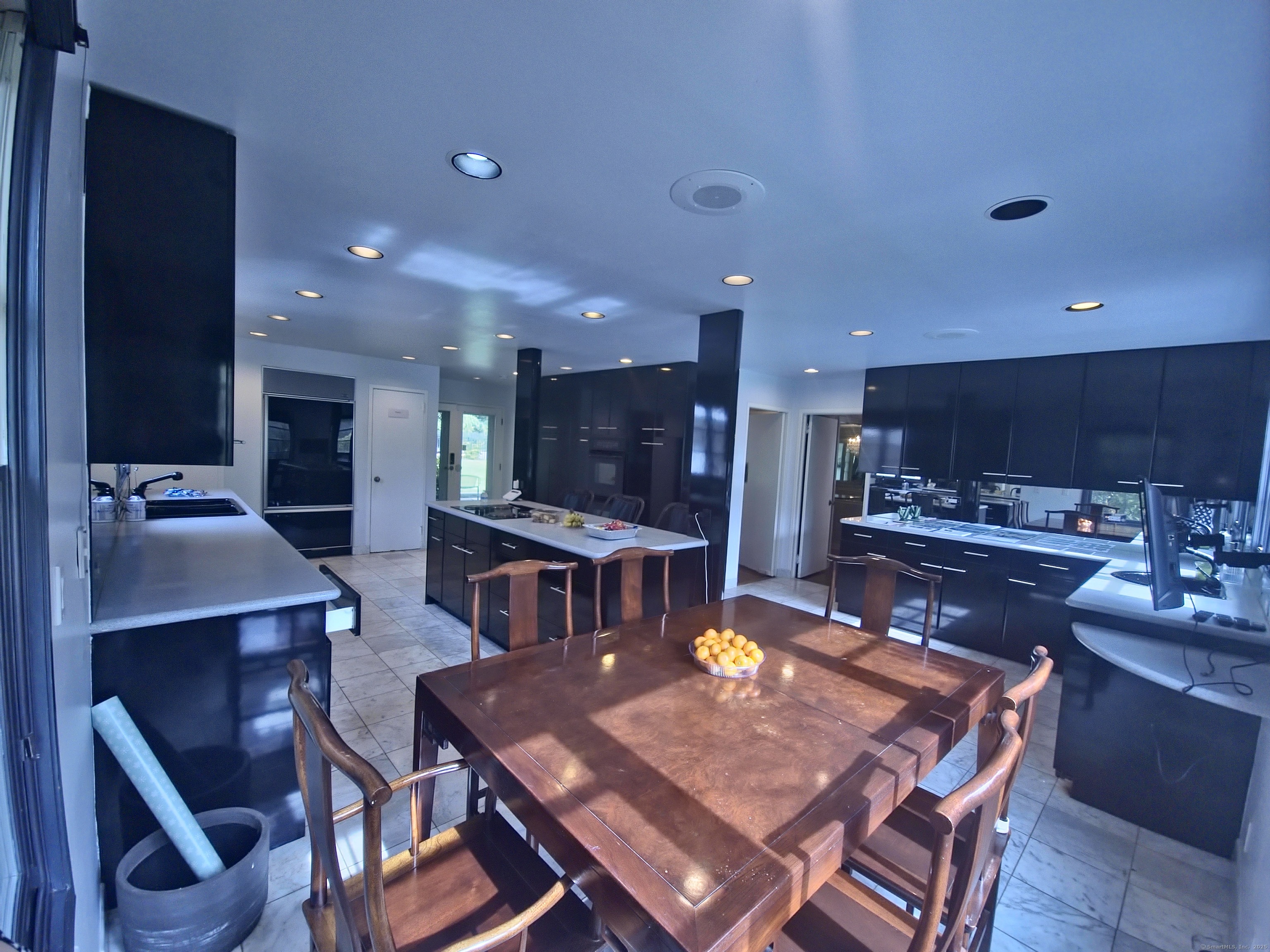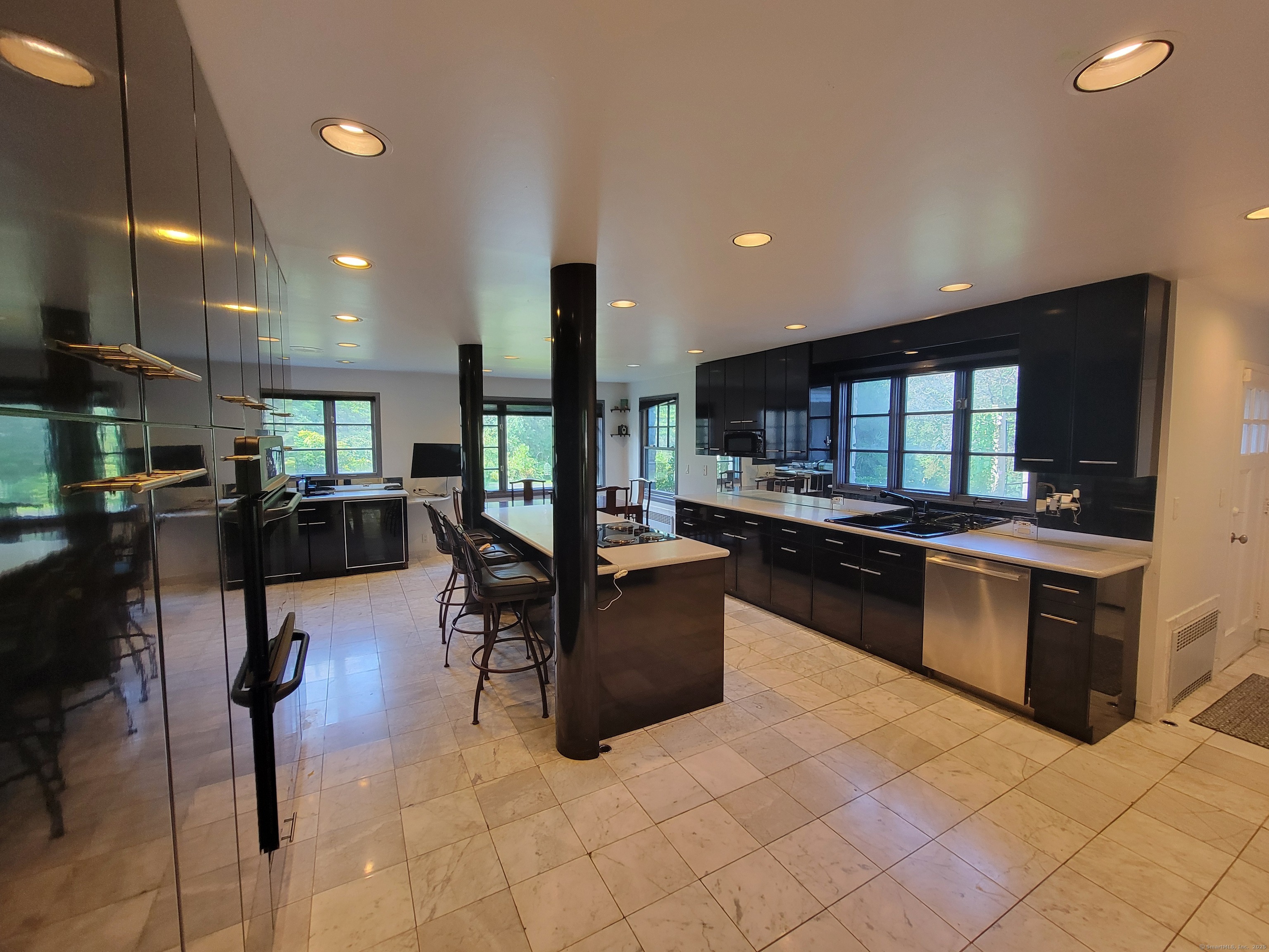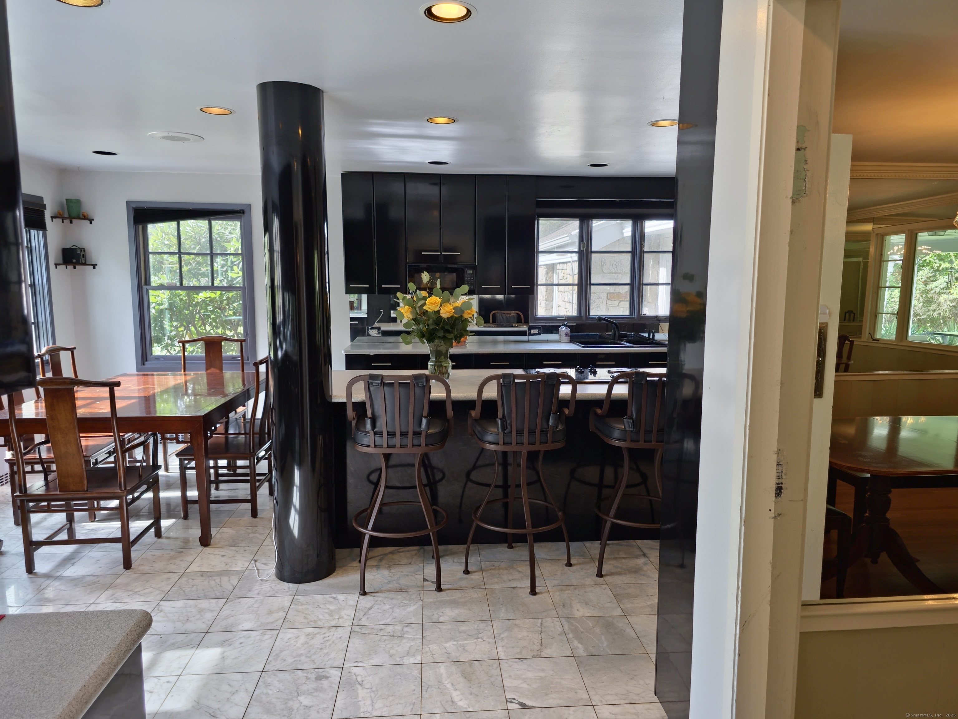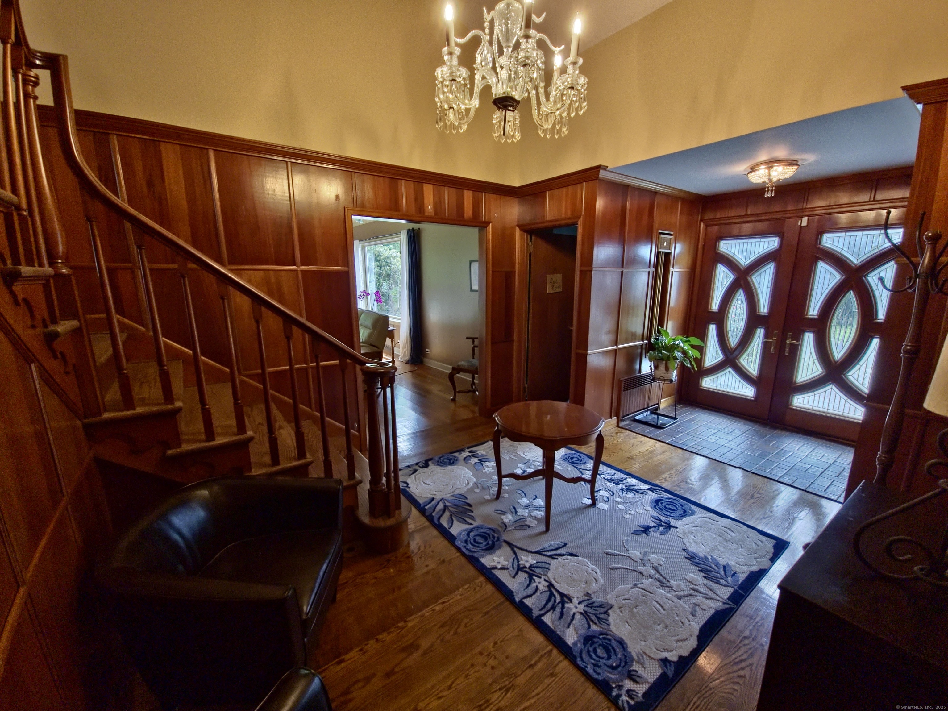 Private oasis on 2.08ac. Mini Estate with matured trees, 3,887sq.ft 11 Rm, 4Br. 3Full Ba. & 2 Half Ba. of living space & 3 car. gar. Minutes to major highways, shops, entertainment and Golf Course. Inground gunite heated pool and guest house 1Br. Kit. 1Ba. Wide stone wall entry leads to the circular driveway and three car garage with parking for over ten cars. Sprinkler system and invisable fence. Hardwood floor through out. Cathedrial ceiling Autrum invites to spacious living rm. with fireplace and direct access to the back yard. Hallway leads to sun filled Play Rm. wrapped with windows, Dining Rm. with mirrored side walls, den with fireplace and to the generous size Chefs kitchen approx. 430sq.ft with marbled floor, pantry, Corian island, two separate sinks, sub zero frig & double wall ovens. Off the kitchen direct entry to up stairs-possible Au pair quarters, entry to front of the house, huge slate covered patio with sky lights, garage & half bath. Possible land subdivision buyer must do their own research in that regard. Vaulted ceiling Master Bedroom Suite, Granite Master Bath with make-up area, bidet and jacuzzi. Two other Bd. Rm on their own wing of the house sharing full bath. Pathway behind the pool leads to Coachmens Ct. cul-de-sac. City side walk and bike lane at the end of the driveway leads to Conn. Ave. Solar pannel contract. 400amp service, genarator ready. If you seek privacy this is it. As is condition. Located between Darien and New Cannan.