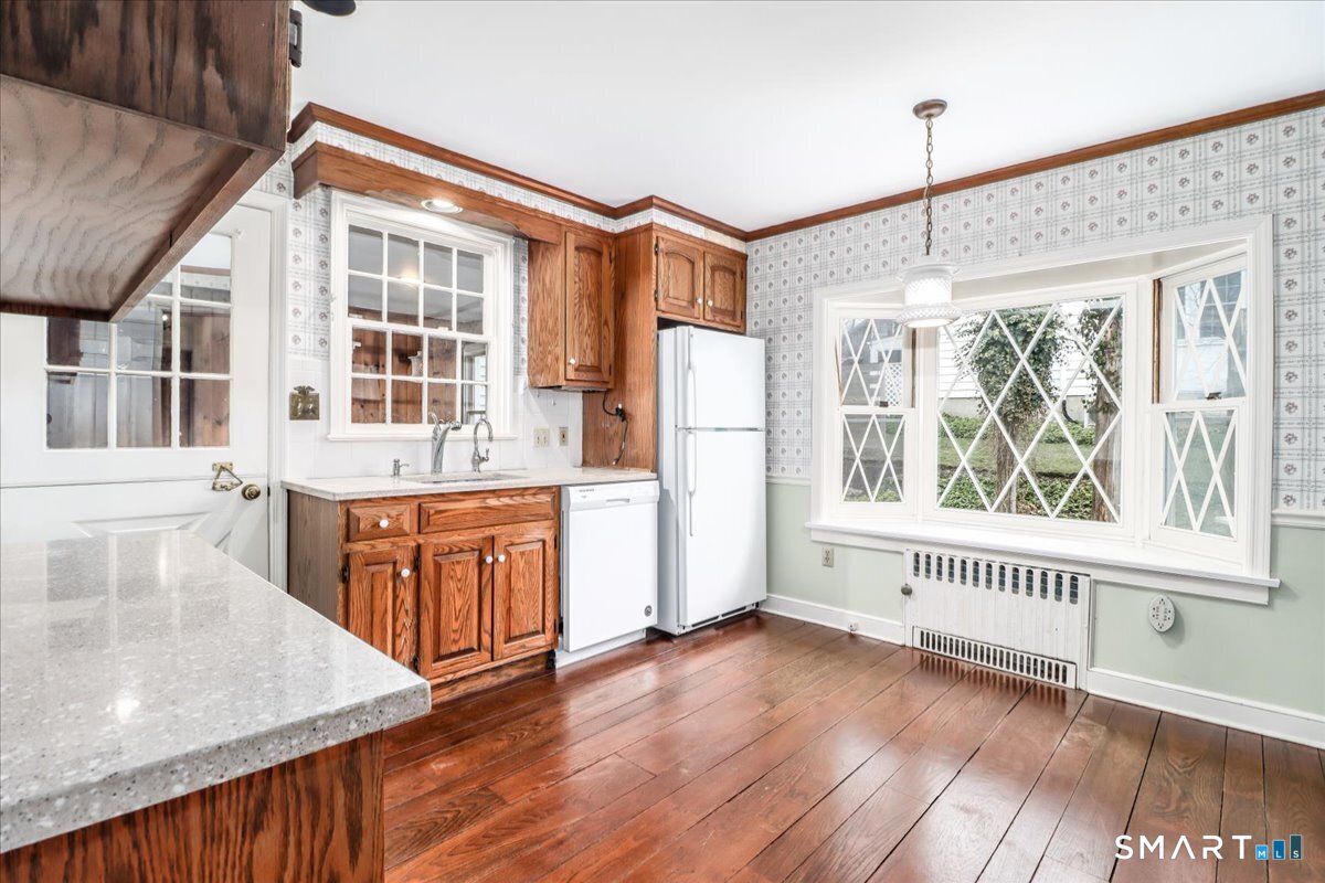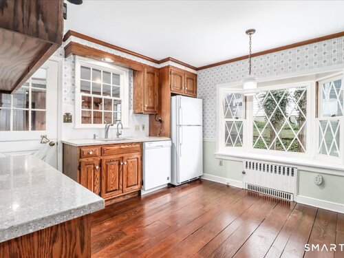 First time on the market in 75 years! Well maintained, well loved Cape Cod home in Norwalk. 2 bedroom 2 full bath with potential for a 3rd bedroom on the first floor, currently a den with built-ins and a wood burning fireplace. Main floor bathtub was modified for easy walk in access. Eat in kitchen with bay window and walk in pantry. (Don't miss the DIY laundry lift in the pantry!)Hardwood floors throughout. Side entrance brings you to what was used as an office however leads to the kitchen as well as the one car garage giving way for expansion if desired. Upstairs, the 2 bedrooms have built in dressers to keep you organized! Potential for extra living space in the basement. Attached shed off the back of the garage adds storage space for lawn toys to maintain your established landscape. Bluestone patio to the left of the garage adds to outdoor entertaining space. Hop skip and a jump to the Merritt Parkway for an easy commute. This home exudes warmth and charm. Live as is or make it your own, the solid foundation is awaiting your personal touch