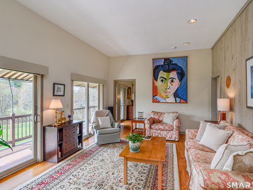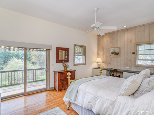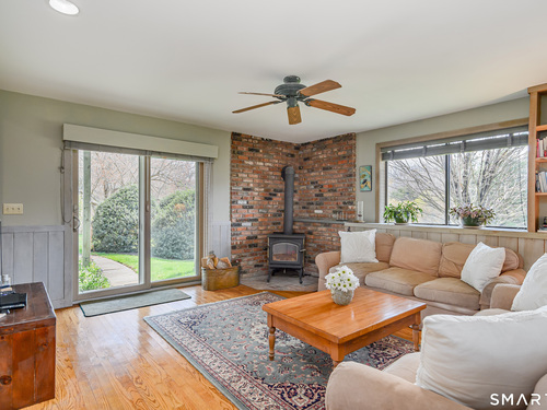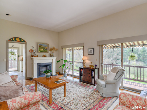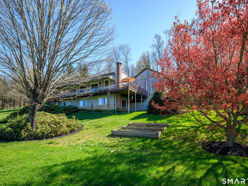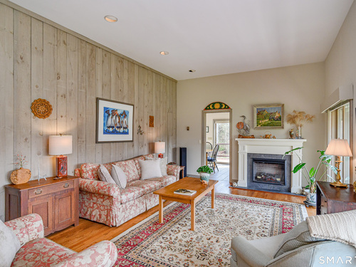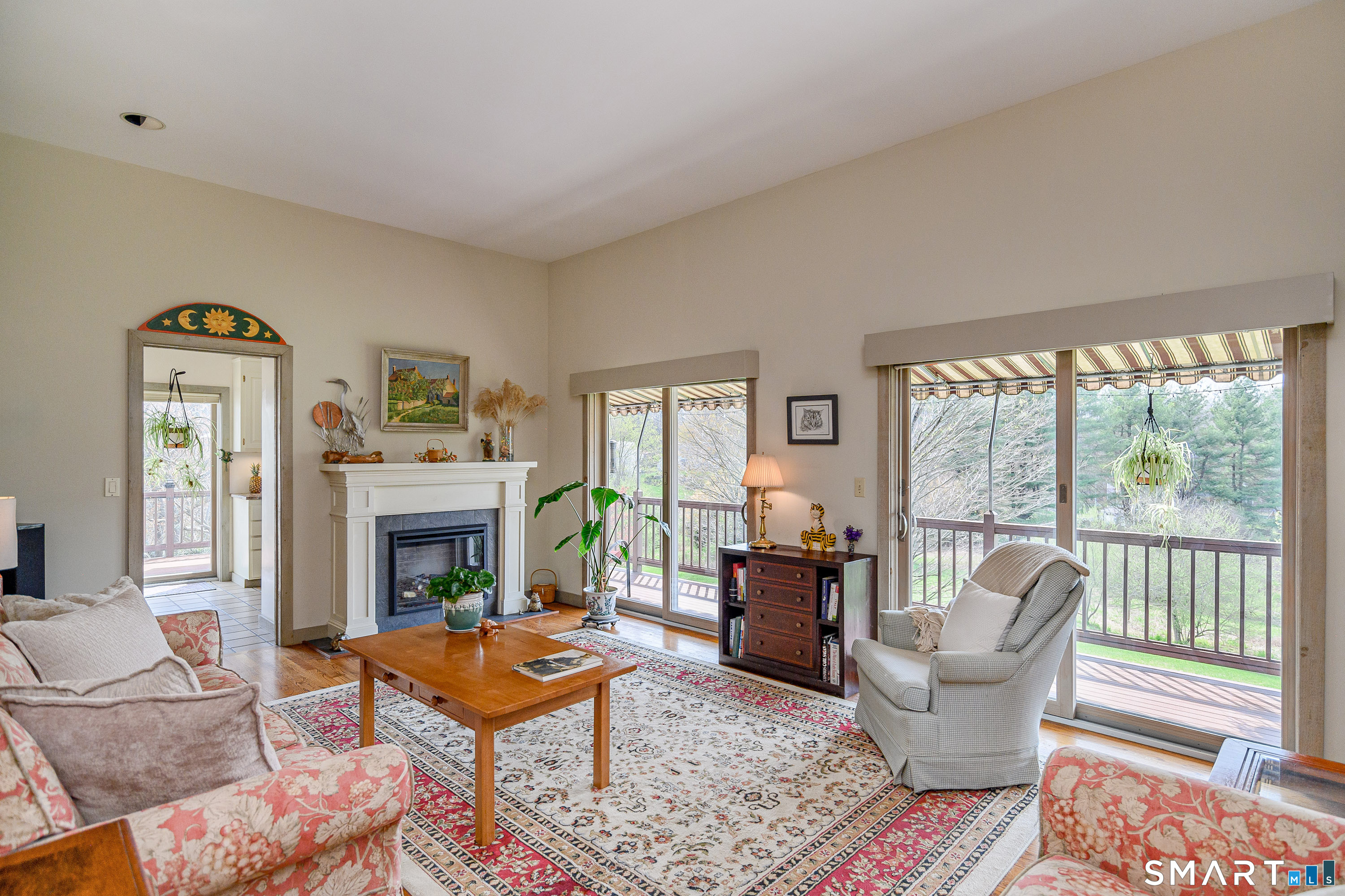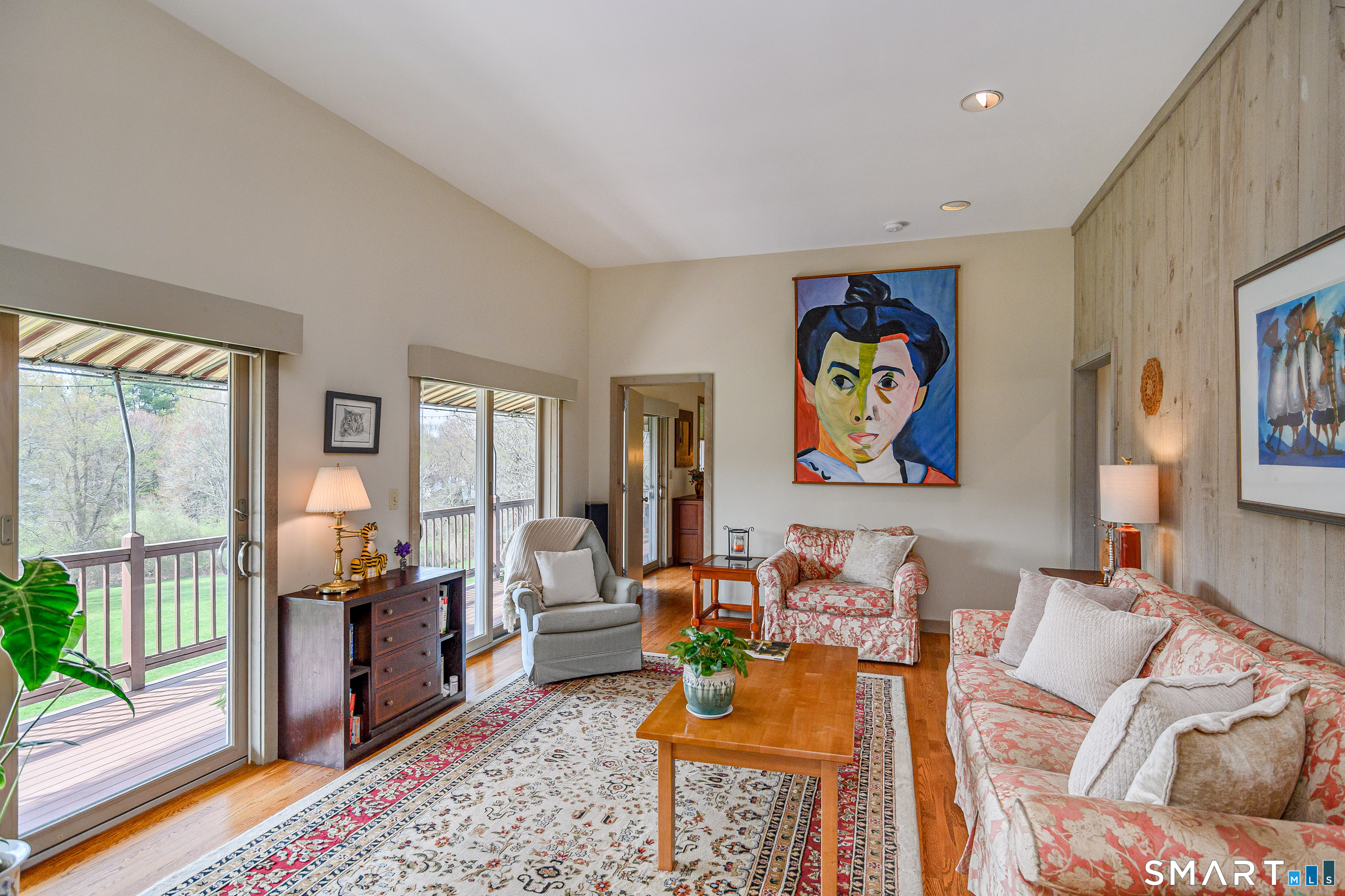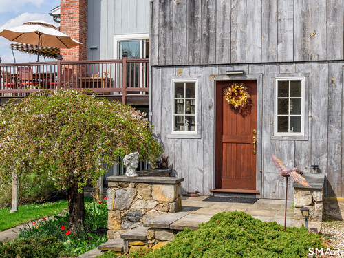 Welcome to 28 Poverty Hollow Road, a private ranch style home with barn set on 5.36 beautiful acres with western exposure, flowering trees, fruit trees, raised bed gardens, and sweeping sunset views. The main level offers 10 foot ceilings, an open airy layout, and a primary bedroom suite for comfortable one level living. The great room is filled with character, featuring rough sawn paneling, an electric fireplace, and two sliders that open to the wraparound deck with awning for easy indoor outdoor living. The updated eat in kitchen also connects directly to the deck, making entertaining simple and natural. The walk out lower level includes two additional bedrooms, flexible living space, a wood burning stove, and access to stone walkways leading to the expansive yard. Improvements include roof approximately 15 years ago, main level windows and all sliders replaced in 2020, updated kitchen and bathrooms, hardwood floors installed upstairs in 2020, 200 amp electric, newer stainless steel GE appliances, stone walkways, and a freshly stained deck with awning. The barn with 2 car garage offers excellent space for hobbies, workshop use, storage, or small scale farming. Close to town, highways, hiking trails, dining, a vibrant local arts and music scene, and a professional horseback riding facility with riding trails nearby, this special property offers privacy, land, and a true country lifestyle. With open acreage, the property may also be ideal for equestrian use.