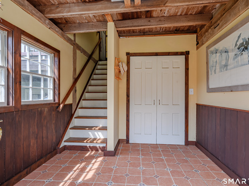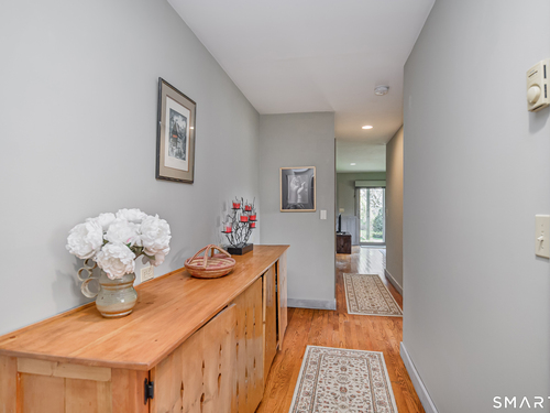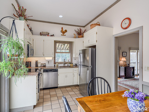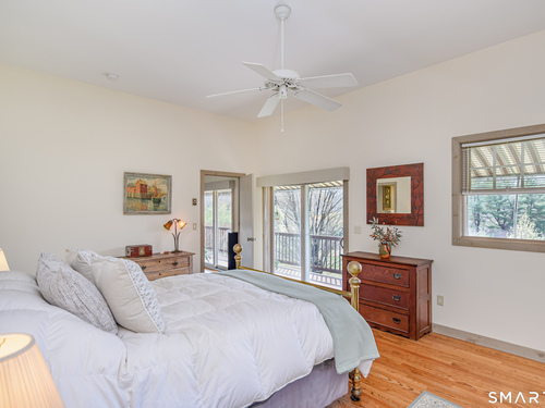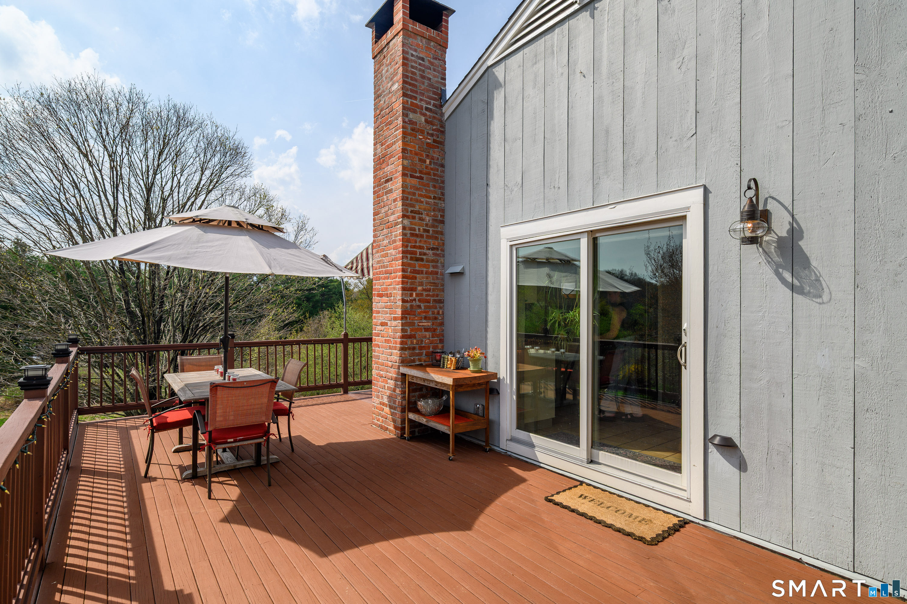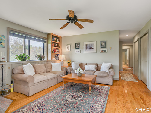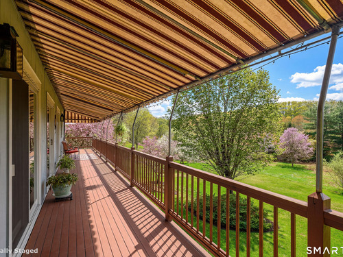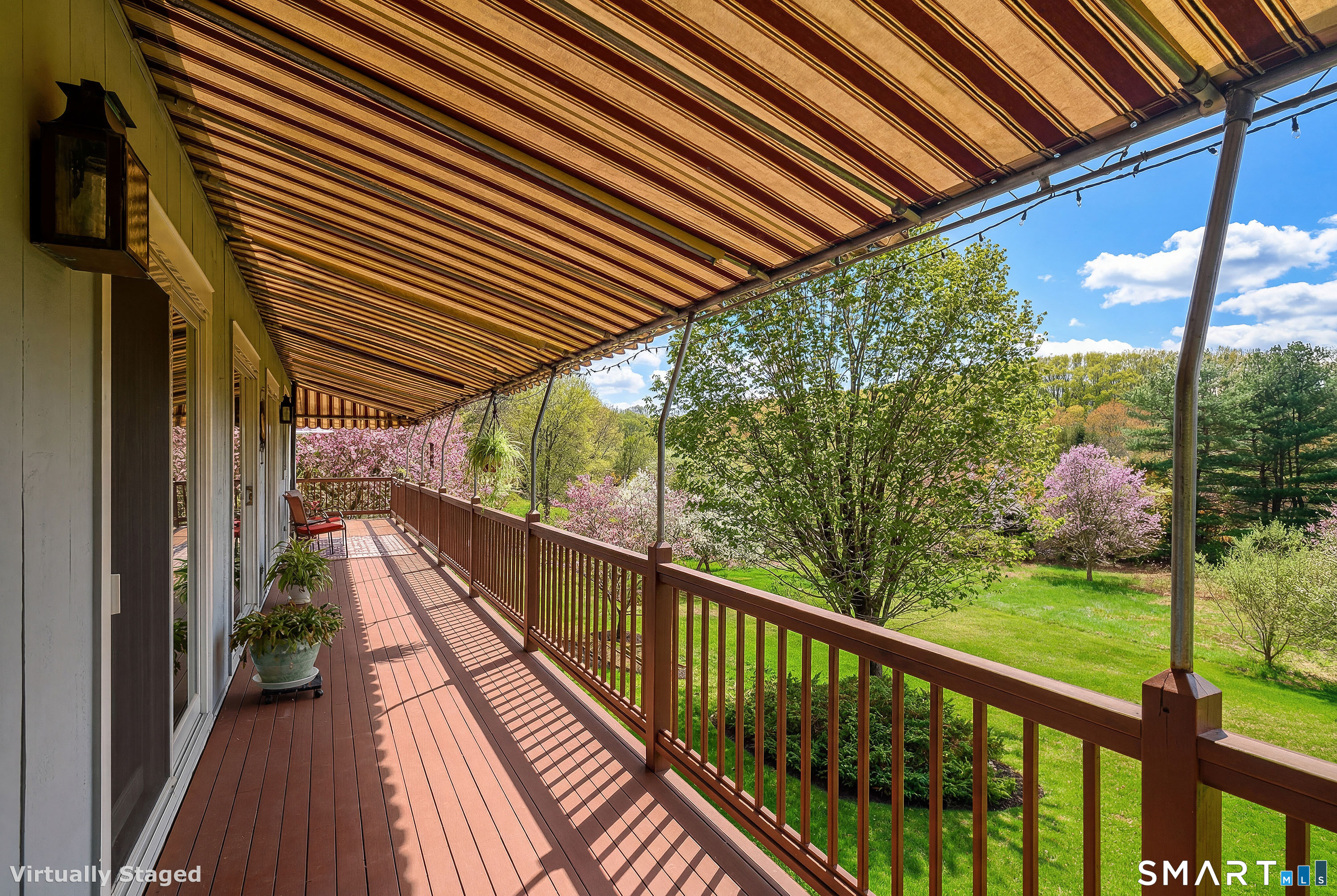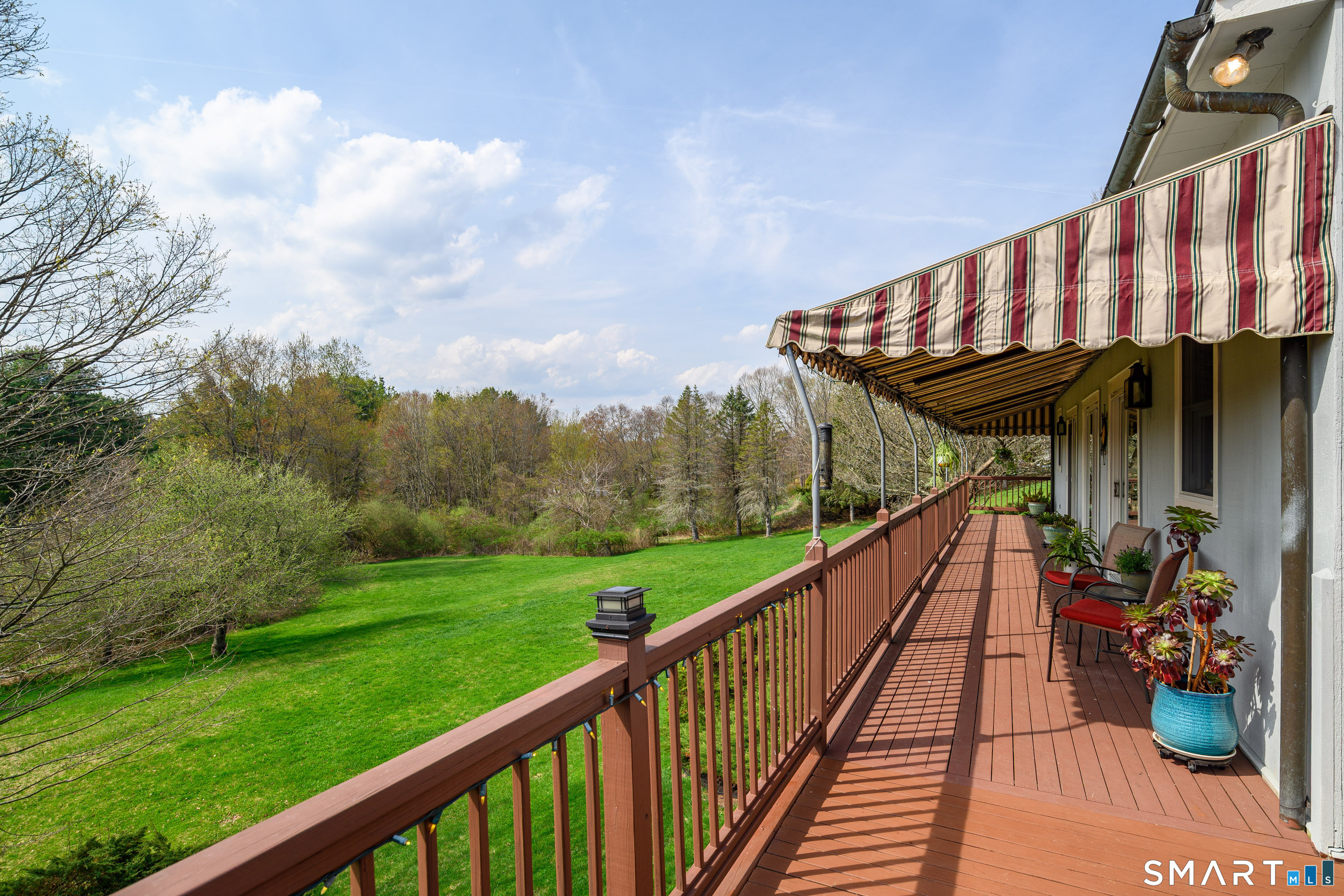 Welcome to 28 Poverty Hollow Road, a private ranch style home with barn set on 5.36 beautiful acres with western exposure, flowering trees, fruit trees, raised bed gardens, and sweeping sunset views. The main level offers 10 foot ceilings, an open airy layout, and a primary bedroom suite for comfortable one level living. The great room is filled with character, featuring rough sawn paneling, an electric fireplace, and two sliders that open to the wraparound deck with awning for easy indoor outdoor living. The updated eat in kitchen also connects directly to the deck, making entertaining simple and natural. The walk out lower level includes two additional bedrooms, flexible living space, a wood burning stove, and access to stone walkways leading to the expansive yard. Improvements include roof approximately 15 years ago, main level windows and all sliders replaced in 2020, updated kitchen and bathrooms, hardwood floors installed upstairs in 2020, 200 amp electric, newer stainless steel GE appliances, stone walkways, and a freshly stained deck with awning. The barn with 2 car garage offers excellent space for hobbies, workshop use, storage, or small scale farming. Close to town, highways, hiking trails, dining, a vibrant local arts and music scene, and a professional horseback riding facility with riding trails nearby, this special property offers privacy, land, and a true country lifestyle. With open acreage, the property may also be ideal for equestrian use.