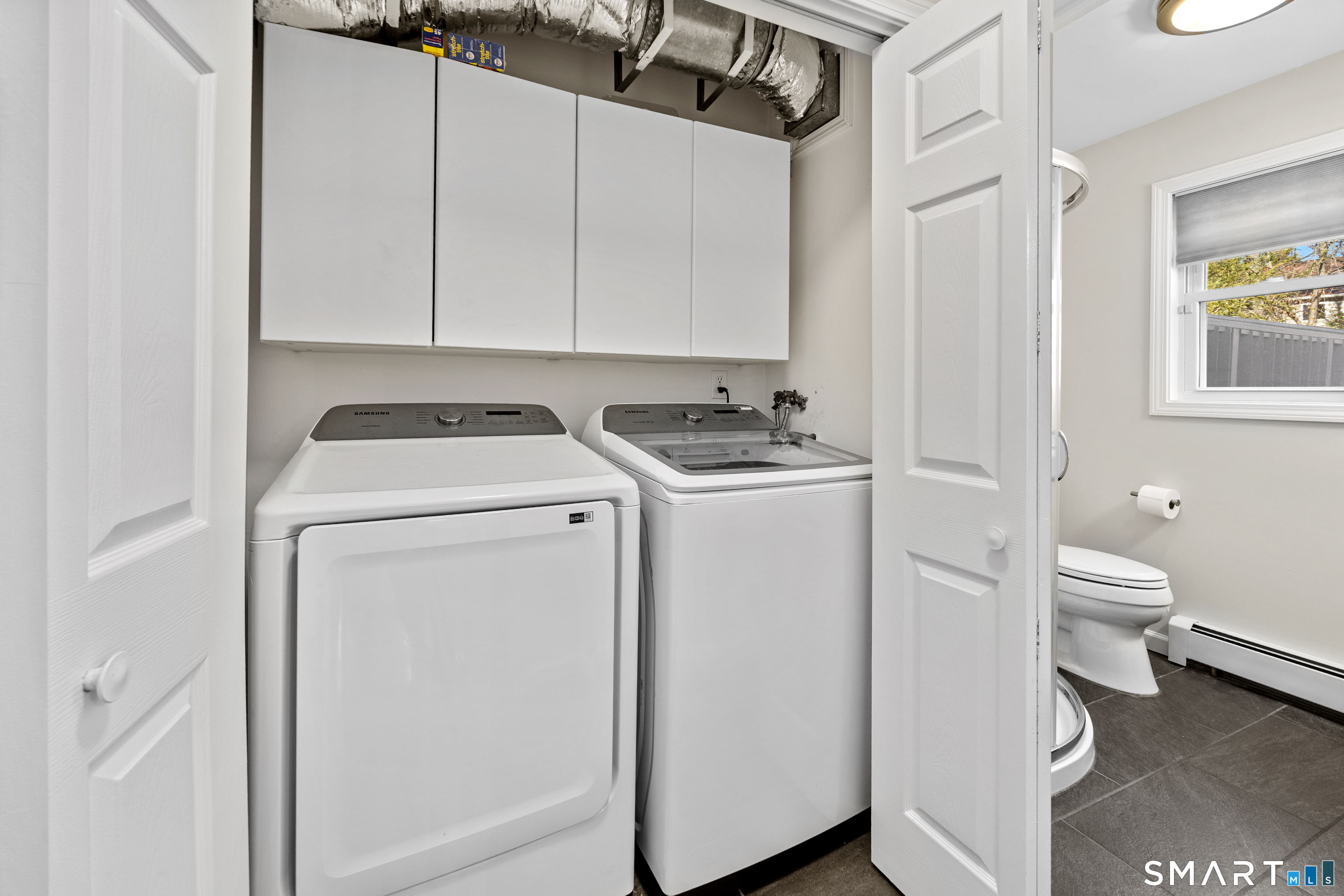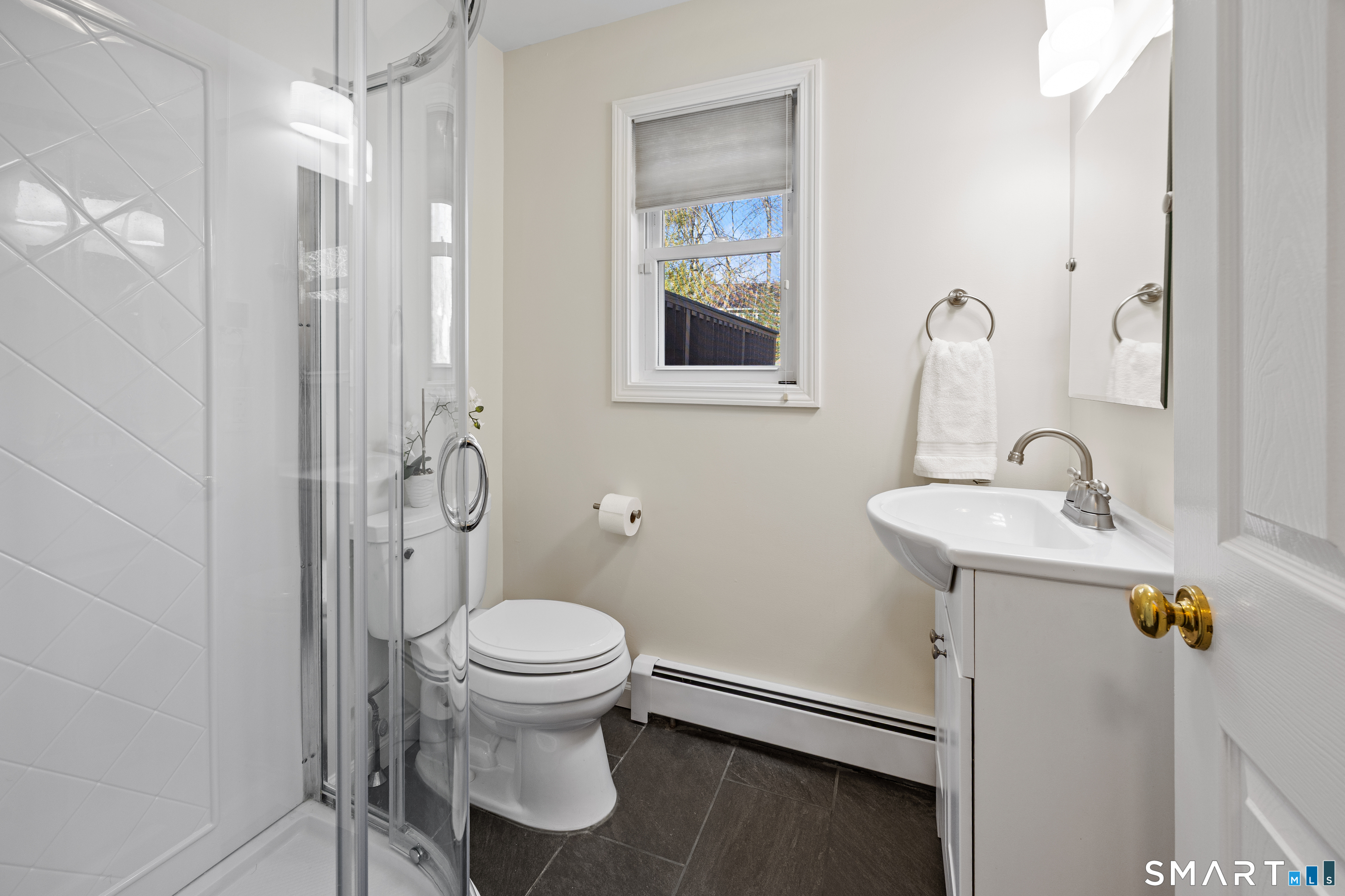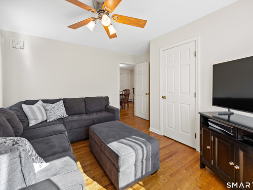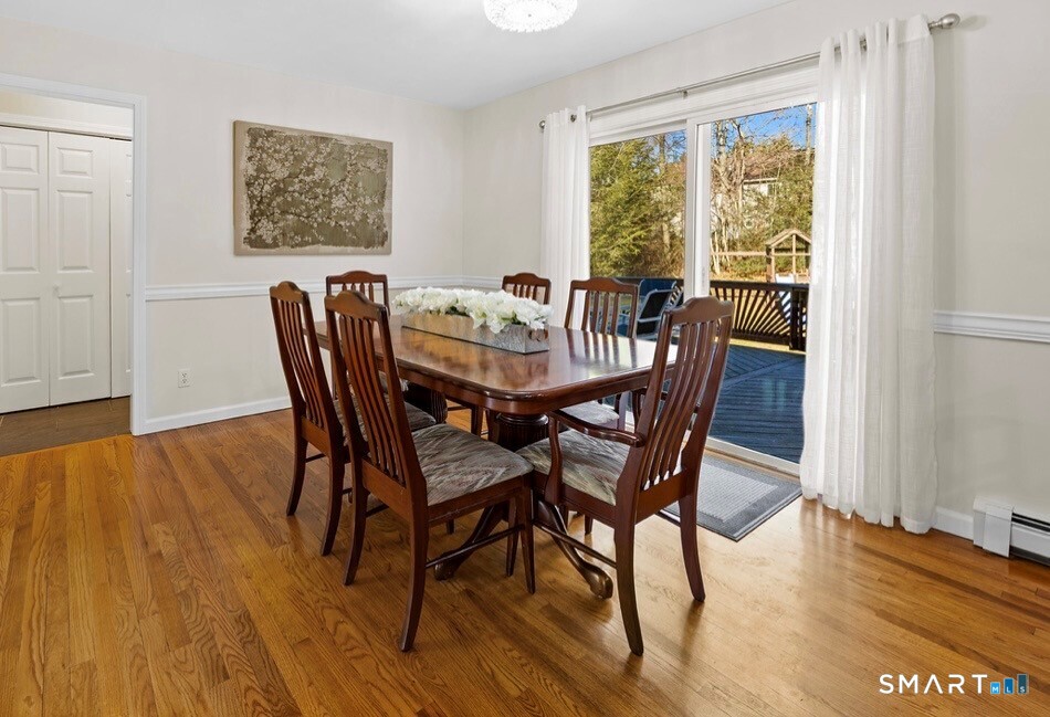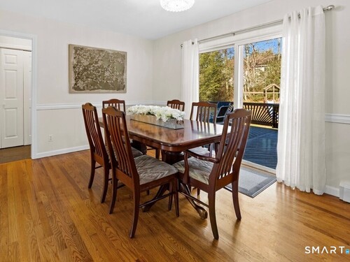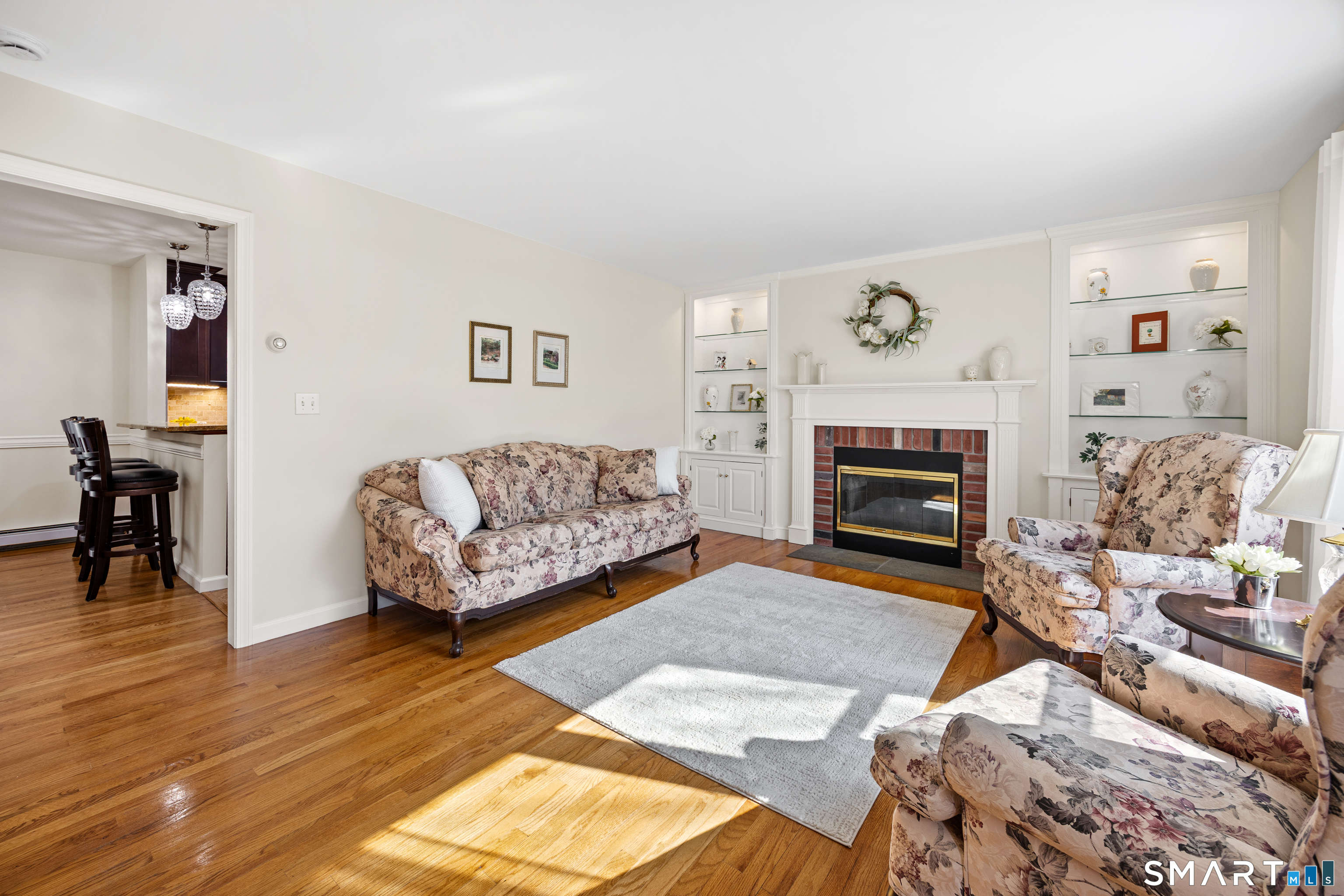 This beautiful Colonial with great curb appeal and striking stonework is perfectly situated in a highly sought-after cul-de-sac neighborhood. The home features a wonderful open floor plan with an elegant living room highlighted by a fireplace and attractive built-ins. The living space flows seamlessly into a beautifully remodeled kitchen with a breakfast bar and a spacious dining area with sliding doors to a large, comfortable deck-perfect for relaxing outdoors. Just off the main living area is a versatile den with a large closet, ideal as a home office or potential fourth bedroom, along with a full bath and convenient first-floor laundry. Upstairs you will find a spacious primary bedroom with a large walk-in closet, two additional generously sized bedrooms, and a full bath. A finished lower level with good storage adds valuable additional living space. List of improvements include: freshly painted interior (2026), roof (2020), driveway (2022), oil tank (2024), front porch (2022), remodeled kitchen, replacement windows, whole-house generator, and invisible dog fence. This well-maintained home offers a convenient location close to highways, shopping, schools, and parks.