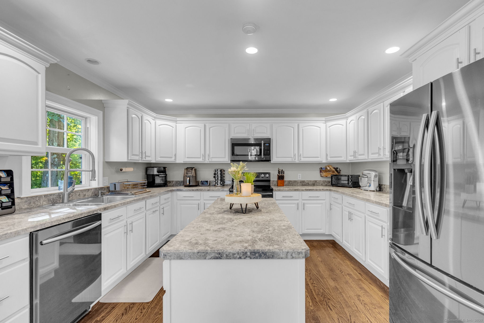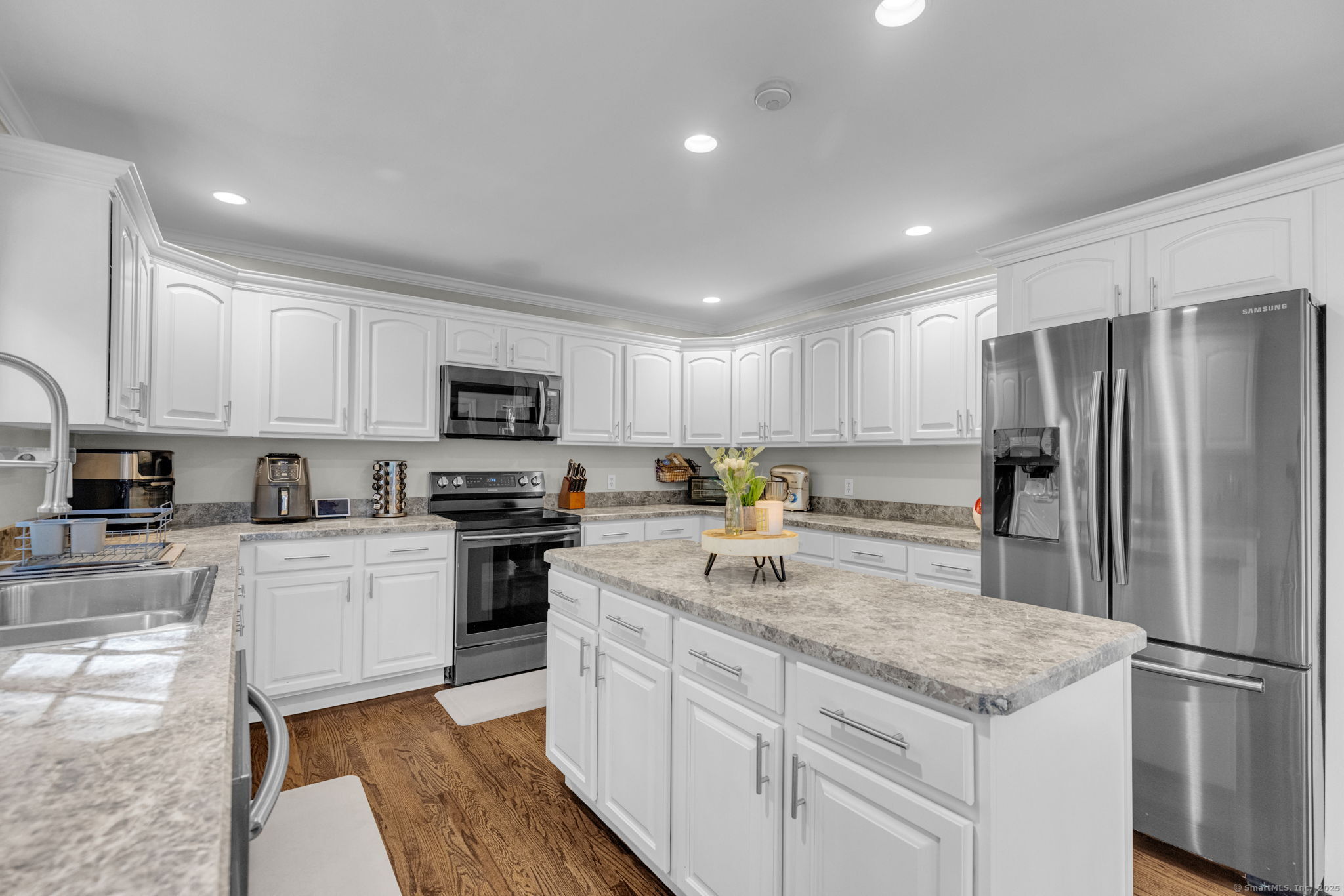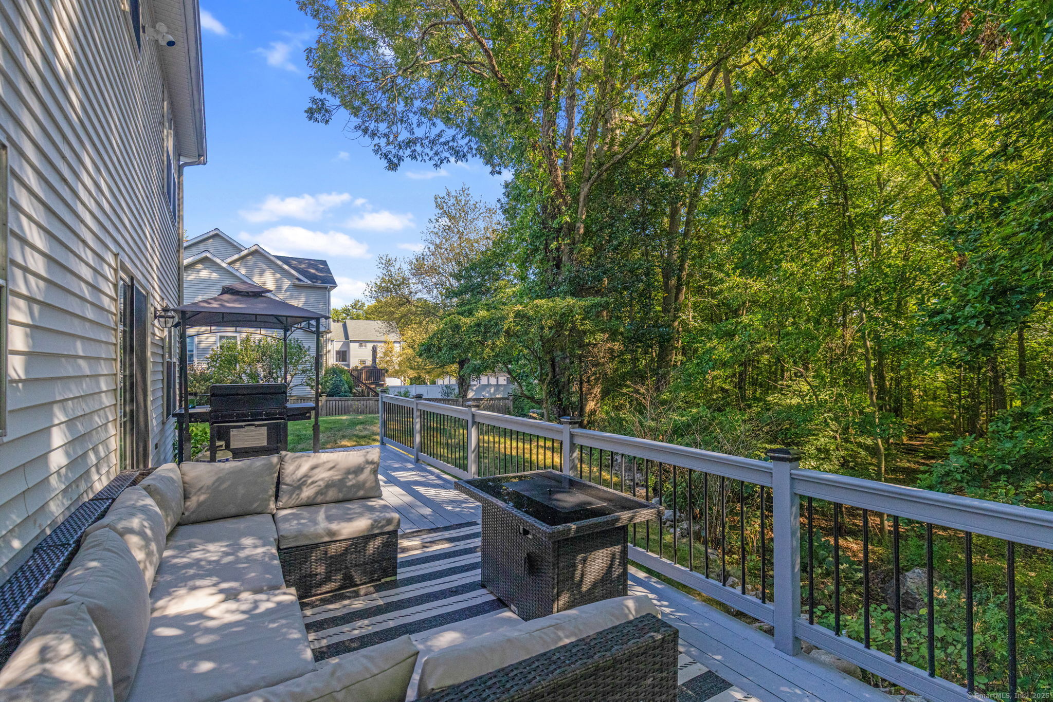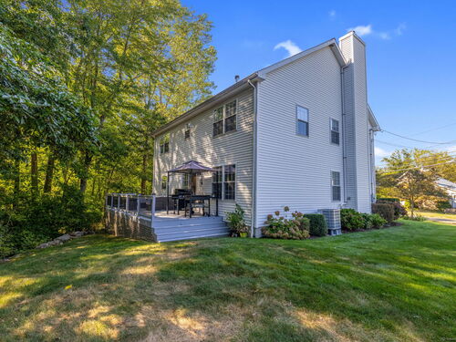 Welcome to 281 W Cedar St! This spacious and well-maintained 4-bedroom colonial built in 2000 is located in the desirable West Norwalk neighborhood. The main level offers an open and inviting layout, with the kitchen, dining, and living areas seamlessly flowing together. Beautifully refinished hardwood floors, a stunning fireplace, and sliding glass doors to the newly expanded deck create a warm and functional space, perfect for both everyday living and entertaining. The level lot is partly cleared and landscaped, with light woods for year-round privacy. Upstairs, the primary suite feels like a true retreat, featuring a tray ceiling, generous custom closet space, and a large bathroom with both a whirlpool tub and separate shower. Three additional bedrooms, a hall bath, and a convenient second-floor laundry complete the level. No trips up and down the stairs with your laundry basket. Recent updates add peace of mind, including a new hot water heater, a replaced AC unit, and a rewired HVAC system designed to support a heat pump for greater efficiency and reduced costs. Additional features include central air with humidifier, public water and sewer, an attached two-car garage, and abundant storage with a shed, floored attic, and full unfinished basement. Currently being used as a home gym, the basement provides a potential value-add opportunity to the home should you decide to finish it.