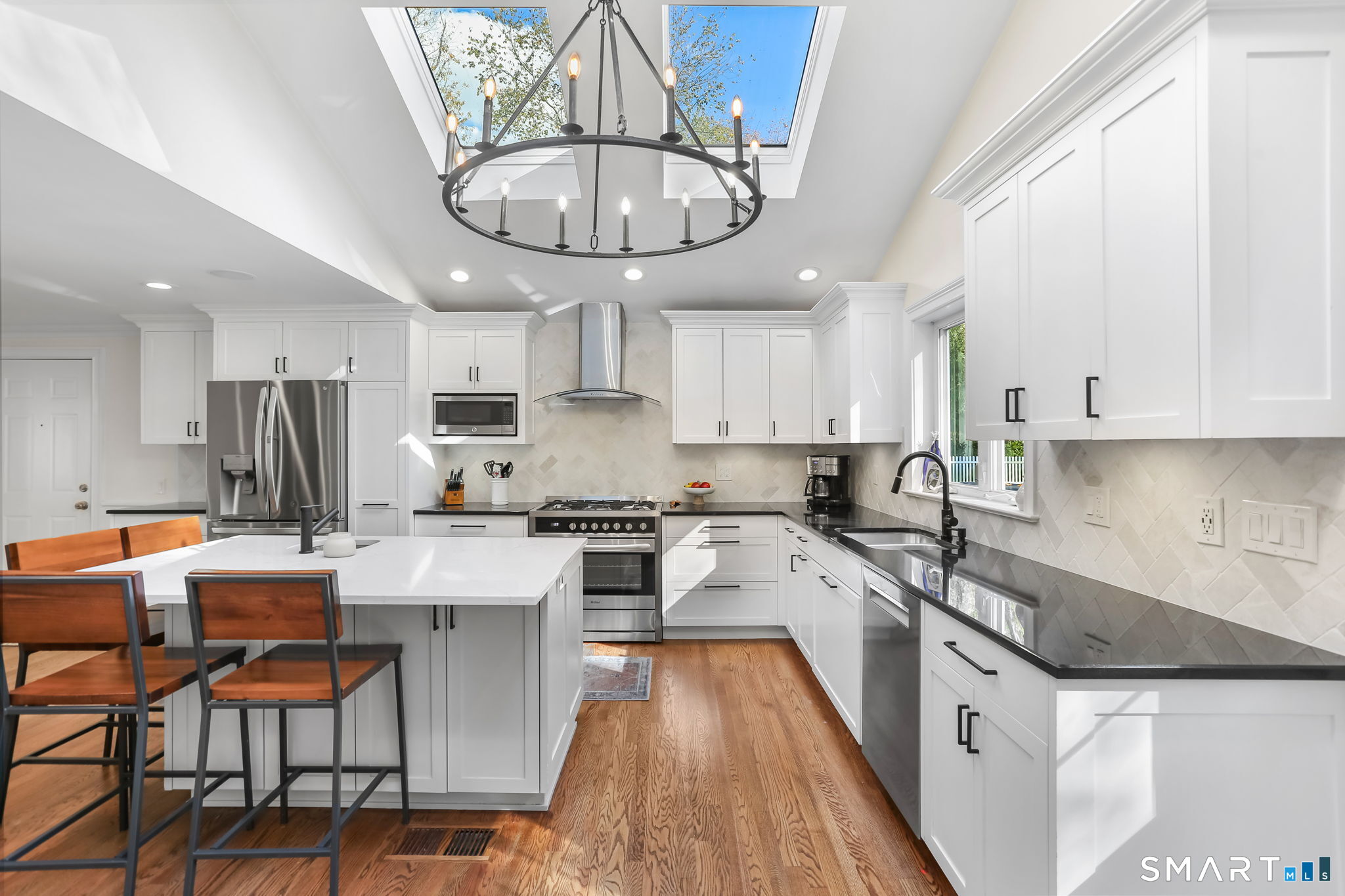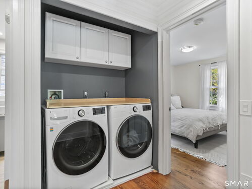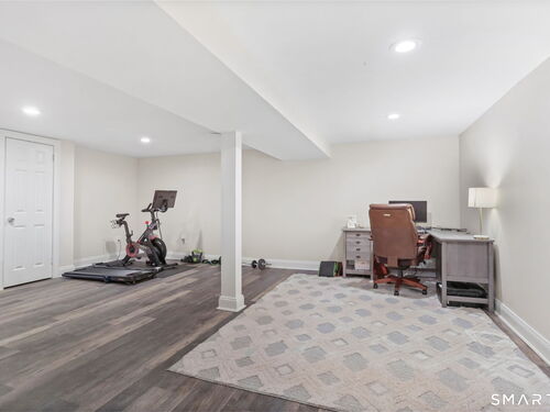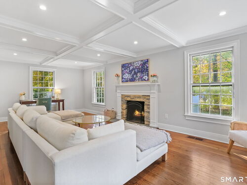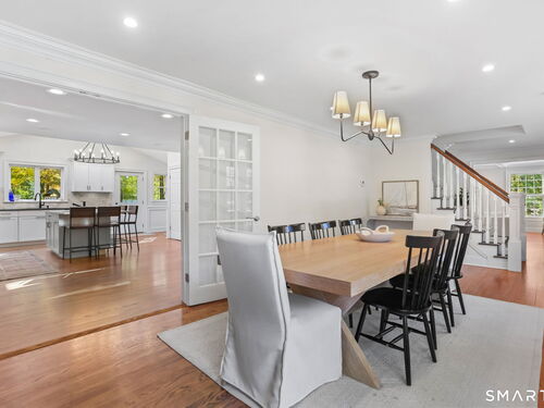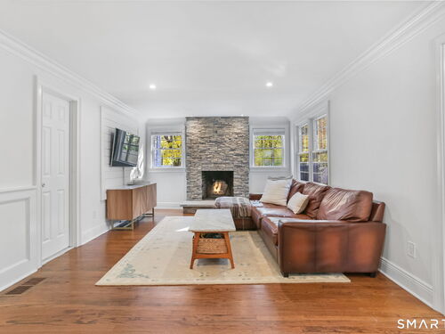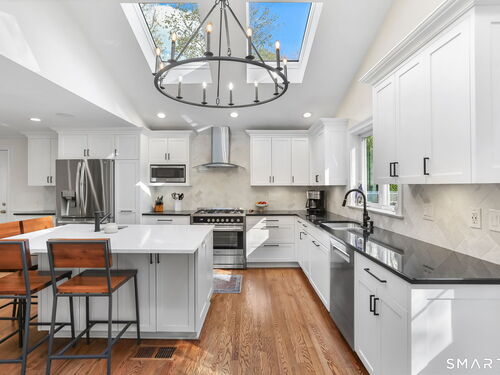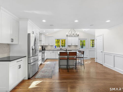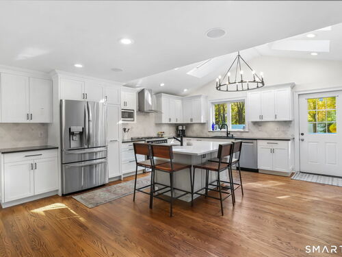 Located at 281 Wood House Rd in Fairfield, CT, this beautifully updated home seamlessly blends modern comfort with timeless charm. Offering four spacious bedrooms, including a primary en-suite with a walk-in closet, it provides plenty of flexibility for family, guests, or a home office. The bright and inviting living spaces include a sunlit living room and a cozy family room conveniently situated off the kitchen. The kitchen is a chef's delight, featuring new hardwood floors, a tasteful new backsplash, updated island countertops, and brand-new appliances-refrigerator, dishwasher, washer, and dryer. Hosting is effortless with a generously sized dining room adjacent to the kitchen. The finished basement offers incredible versatility-ideal as a home office, gym, playroom, or extra storage. Step outside to a large, newly fenced backyard, perfect for barbecues, playtime, or relaxing evenings. A two-car garage completes this exceptional property. Situated in a highly desirable Fairfield neighborhood on a quiet dead-end road, this home delivers the perfect blend of style, comfort, and functionality-ready to meet your every need!