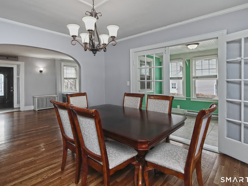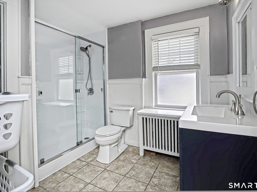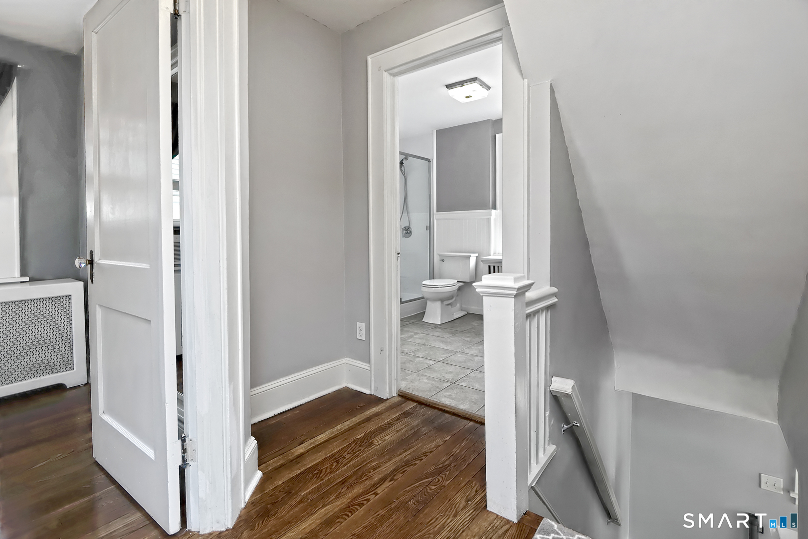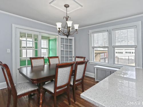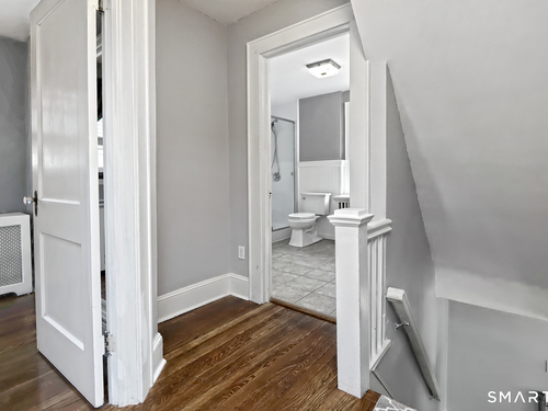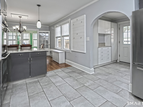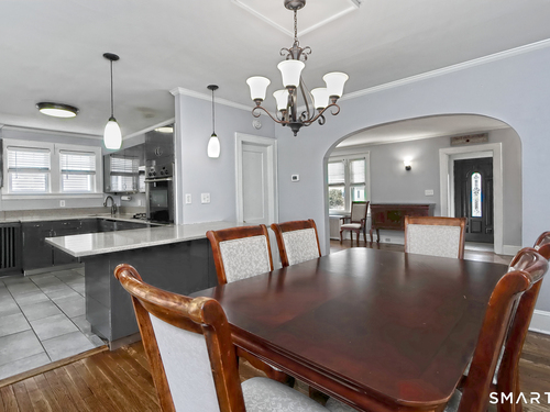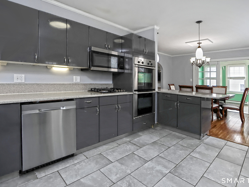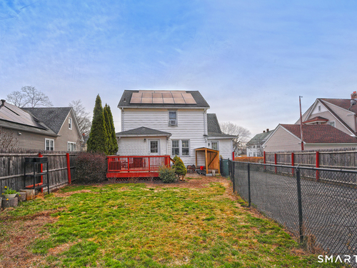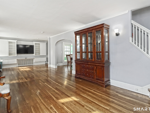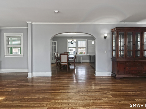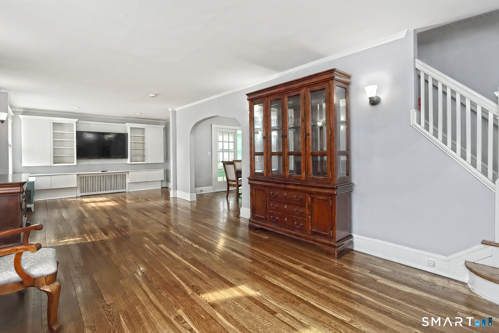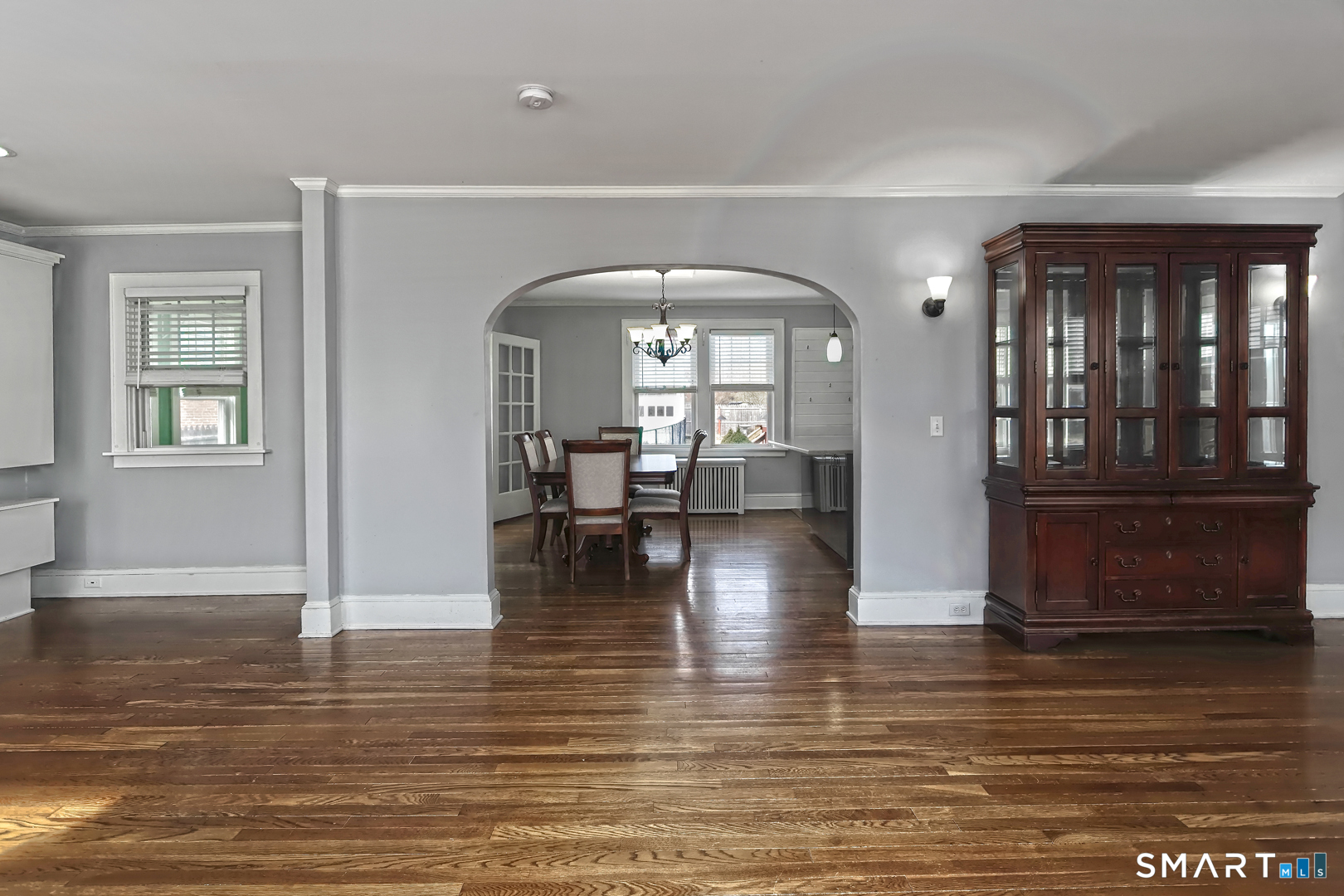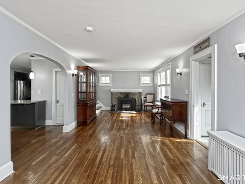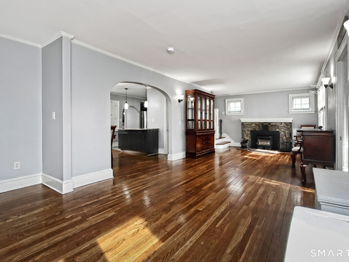 Sought after "Paradise Green" area! Walk to Stratford's beautiful green with vibrant shops and restaurants, and just minutes to Stratford's train station. Move right into this beautifully updated, classic, and spacious colonial with a desirable first floor open floor plan. The main floor boasts a spacious living room filled with natural light, beautiful hardwood floors, built ins, and woodburning stone fireplace. A formal dining area provides the perfect setting for entertaining family and guests. The updated kitchen shines with granite countertops, a breakfast bar, stainless steel appliances, and a large rear pantry area! Just off the dining room is a warm, versatile, heated sunroom/office area, ideal for working from home or enjoying a quiet retreat. Completing the main floor is a convenient half bath. Upstairs features beautiful hardwood floors, three spacious bedrooms with generous closet space, and a beautifully updated full bathroom with a walk-in shower that is easily accessible from all bedrooms. Outside, enjoy a level, fully fenced backyard, perfect for outdoor gatherings, gardening, or pets, complete with a deck for relaxing or entertaining. Notable mentions include a walkup attic area for storage or a playroom, a full, clean basement with plenty of storage space, and a detached two car garage. This charming colonial is a must see! Perfectly located, updated, offering flexible living spaces, and full of charm, making it a wonderful place to call home.