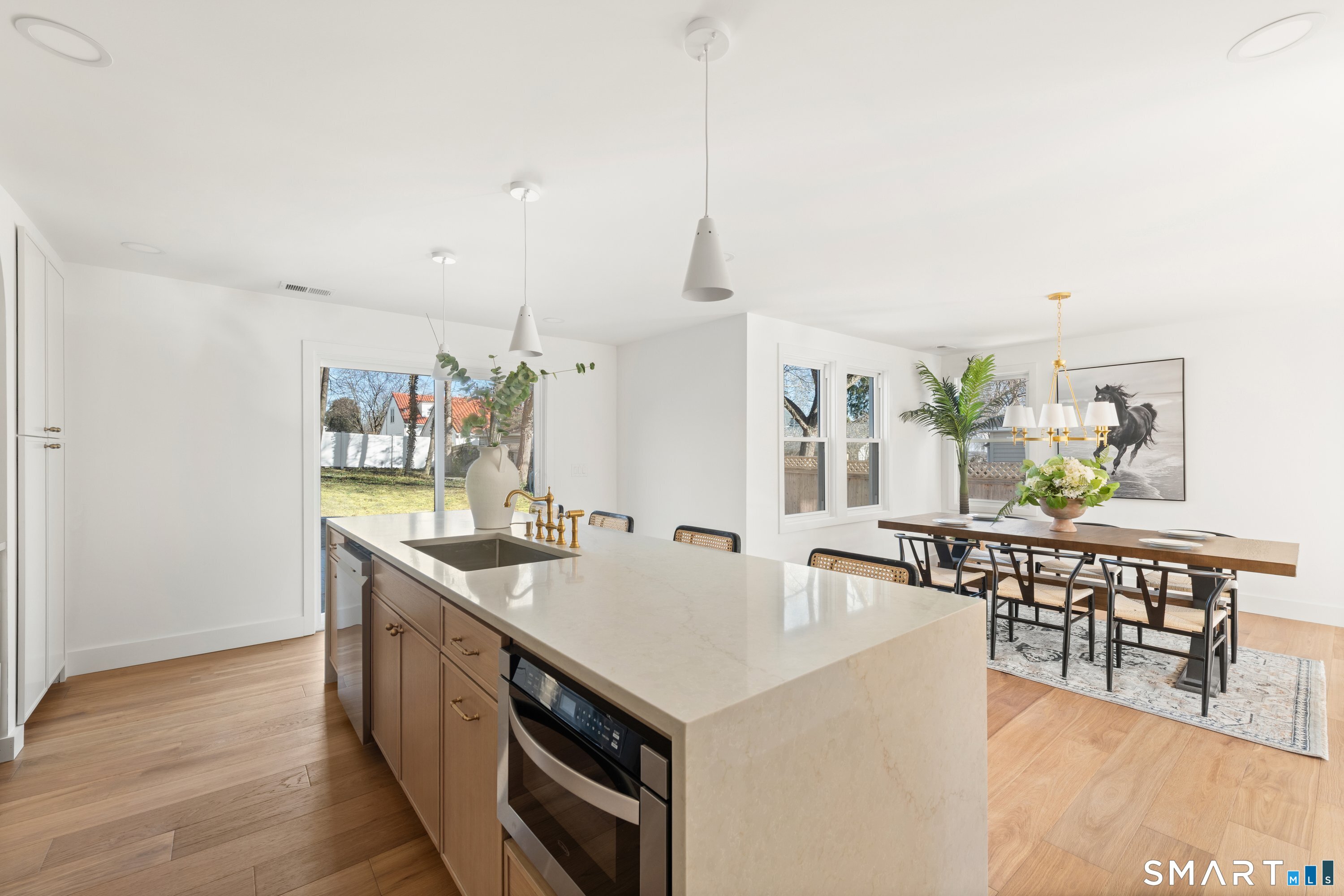 Beautifully renovated 5-bedroom, 2-bathrooms home offering modern comfort and turnkey living. Step inside to be greeted by an open layout, Gleaming Hardwood Floors and a stunning Custom-New Kitchen. Sun-drenched living room with stylish fireplace. The upper level, which offers Four Bedrooms and Two Full Bathrooms, is highlighted by a Private Ensuite in the primary bedroom with a full bath and large walk-in closet. Step up to the attic where you will find the fifth bedroom and half bath. An oversized Patio, perfect for entertaining while looking at the Peaceful Backyard. This house is gutted to the studs with new drywall, fresh paint throughout, modern trim, modern shaker style door, New vinyl siding, new windows. New electrical, plumbing, and heating system. Natural gas for heating and cooking. Central AC. This is a must-see to fully appreciate the exceptional craftsmanship and thoughtful design throughout this move-in ready home!