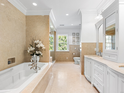 Prepare to be wowed by this extraordinary estate featuring six bedrooms and ten-and-a-half bathrooms, spanning four meticulously designed floors. Enter through a breathtaking two-story grand foyer, leading into beautifully appointed formal and informal rooms perfect for entertaining and a gourmet kitchen that any discerning chef would envy. The luxurious primary suite serves as a private retreat, complete with an expansive dressing room and a spa-like bath. The second level offers five additional spacious en-suite bedrooms, ensuring comfort and privacy. The lower walkout level is an entertainer's paradise, featuring a gym and a entertaining area. The finished third floor adds extra space for work, play, or guest accommodations, complete with its own bath. Nestled on a beautifully landscaped, private gated property, this estate includes stunning terraces, a heated in-ground gunite pool, and a rejuvenating spa, creating a serene outdoor oasis. Additional features include a generator, elevator, hydro air system, natural gas, and smart home controls for enhanced comfort and efficiency. With a second kitchen and living area within the garage, this home is ideal for in-laws or long-term guests. This one-of-a-kind masterpiece is the dream home you've been waiting for!