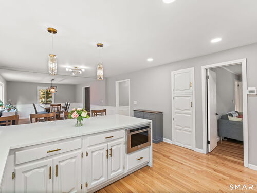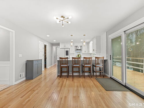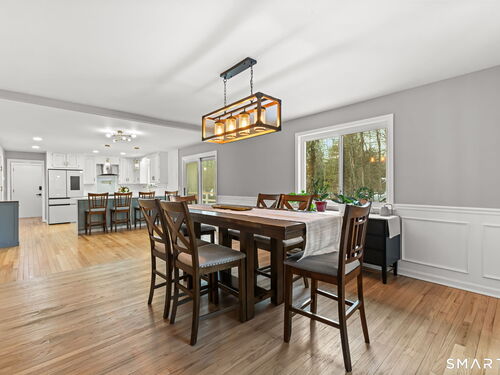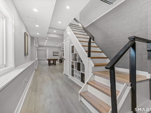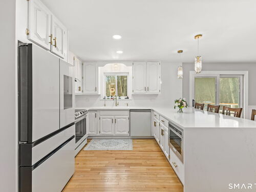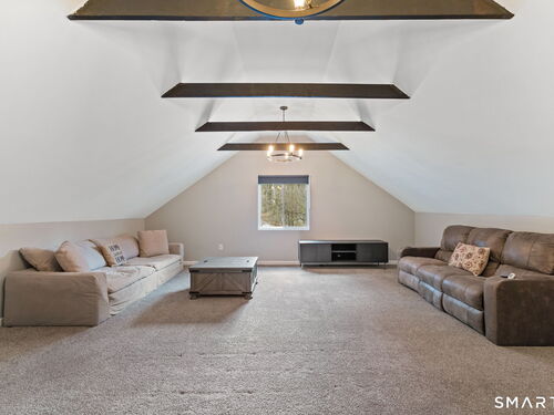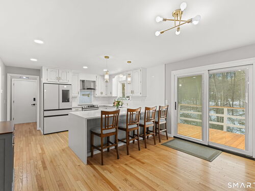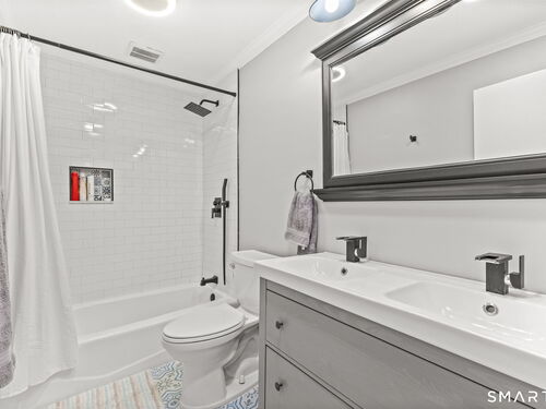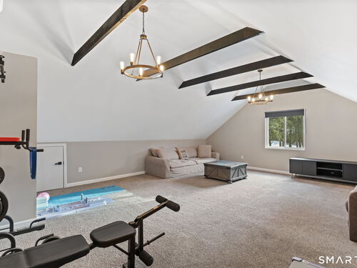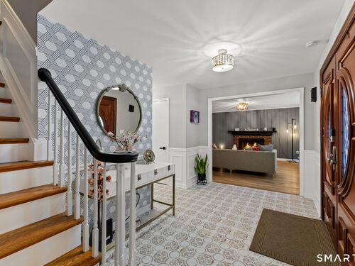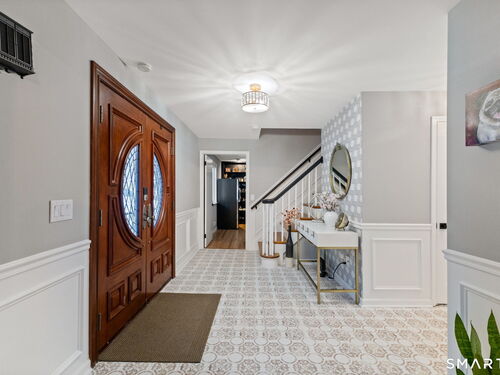Experience modern luxury in this beautifully renovated Colonial. A grand double-door entry opens to a bright foyer. The all-new gourmet chef's kitchen boasts a massive waterfall quartz island, high-end appliances, and pot filler. The open-concept main level flows into a spacious living room with brick fireplace, while a secondary family room features a dramatic floor-to-ceiling stone fireplace and custom built-ins. Upstairs, the expansive primary suite serves as a true private retreat, featuring a generous walk-in closet and a stunning spa-like bathroom complete with a deep soaking tub and a double sink. Two additional bedrooms on this level provide ample space for family or guests. The newly finished, versatile attic showcases beautiful cathedral ceilings and currently serves as a family room and gym, offering endless possibilities for your lifestyle needs. The main level features a first-floor bedroom, ideal for guests or home office, plus a mud room with laundry area. The finished walk-out basement is an entertainer's dream with wet bar, movie theater with built-in speakers, and contemporary powder room. Outside, enjoy a private backyard with spacious deck. Two-car attached garage and semi-circular driveway accommodate multiple vehicles. Perfectly positioned in desirable Georgetown neighborhood, offering peaceful wooded surroundings with convenient access to shopping, dining, and major routes.