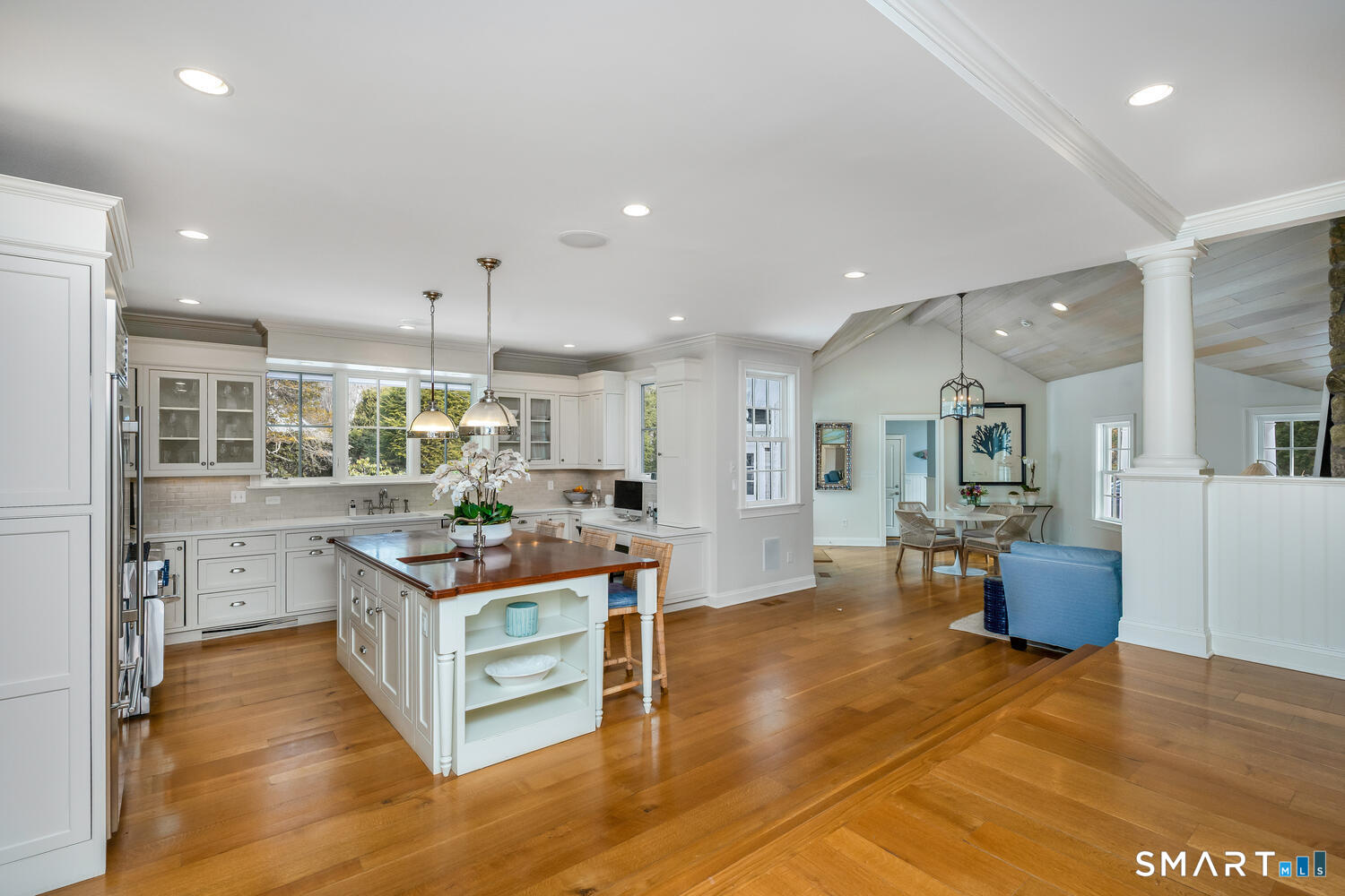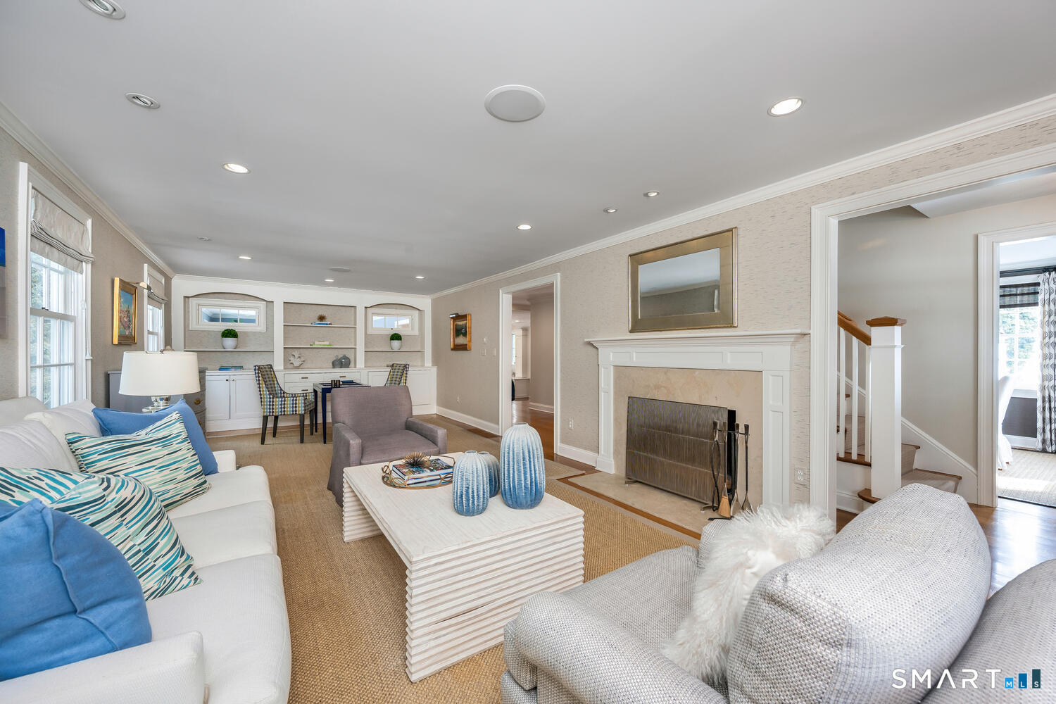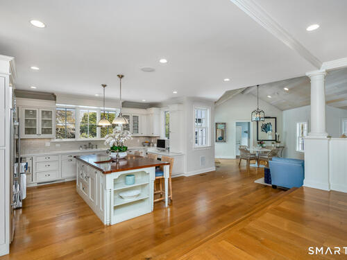 Welcome to 3 Bittersweet Trail, a hidden gem nestled in the heart of Rowayton. This beautifully renovated home, crafted by the esteemed Fox Hill Builders, offers the perfect balance of timeless charm and modern sophistication. With 4 spacious bedrooms and 3.5 luxurious baths, the layout is both functional and elegant-designed for everyday living and effortless entertaining. The kitchen was refreshed over the winter with new quartz countertops, and much of the home has been freshly painted and thoughtfully updated, giving the interiors a bright, crisp feel. Set on over half an acre-a true rarity in 06853-this property is a private sanctuary framed by meticulously curated landscaping, mature trees, and seasonal blooms. Whether you're hosting gatherings on the expansive patio, relaxing by any of the 3 fireplaces, or simply enjoying the serenity of your surroundings, this home elevates indoor-outdoor living year-round. Located on a quiet cul-de-sac just moments from the village, beach, and train, 3 Bittersweet Trail offers the very best of Rowayton living: space, style, and a sense of retreat-all just steps from this vibrant coastal community.