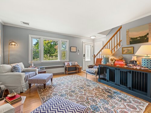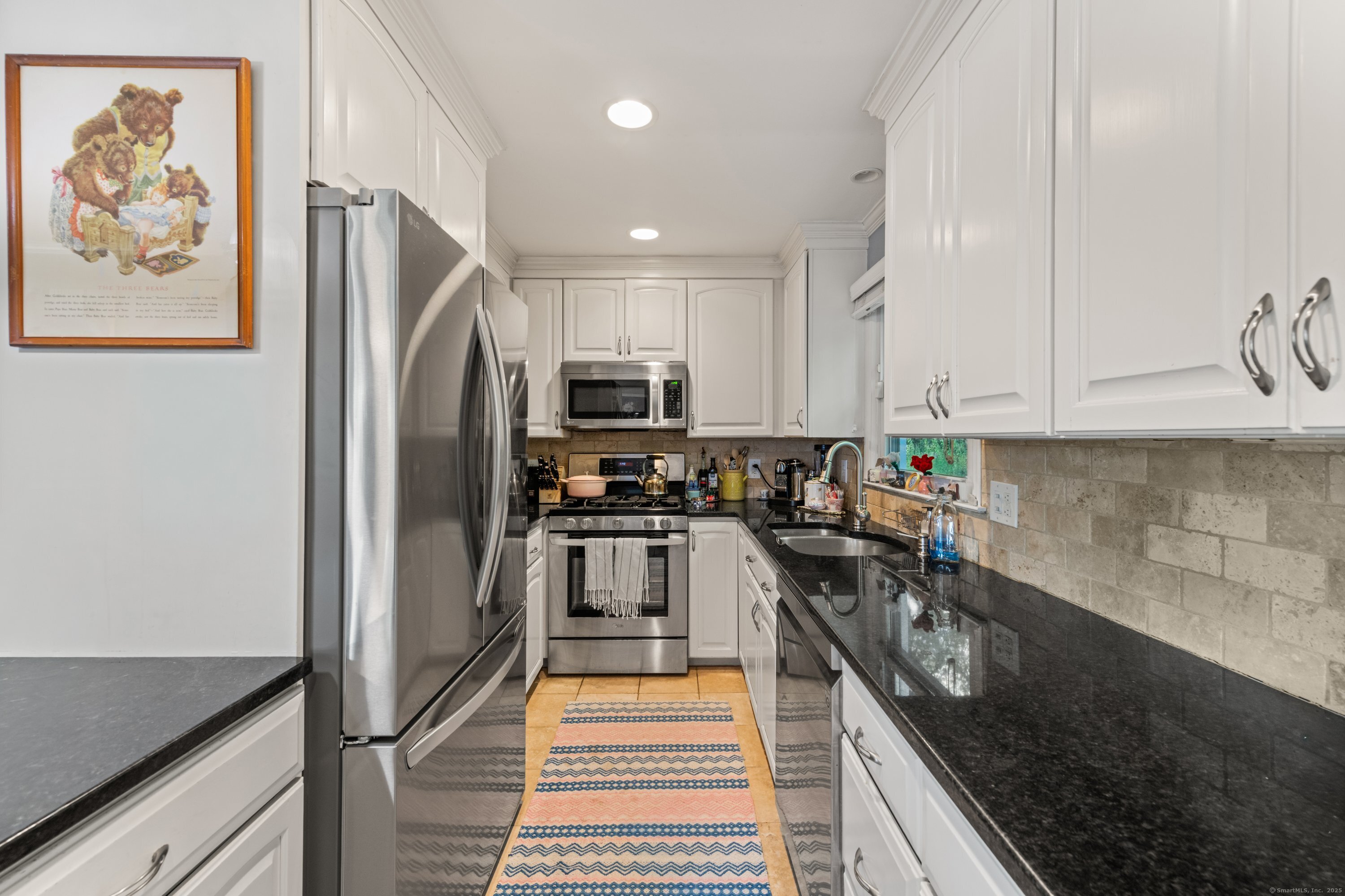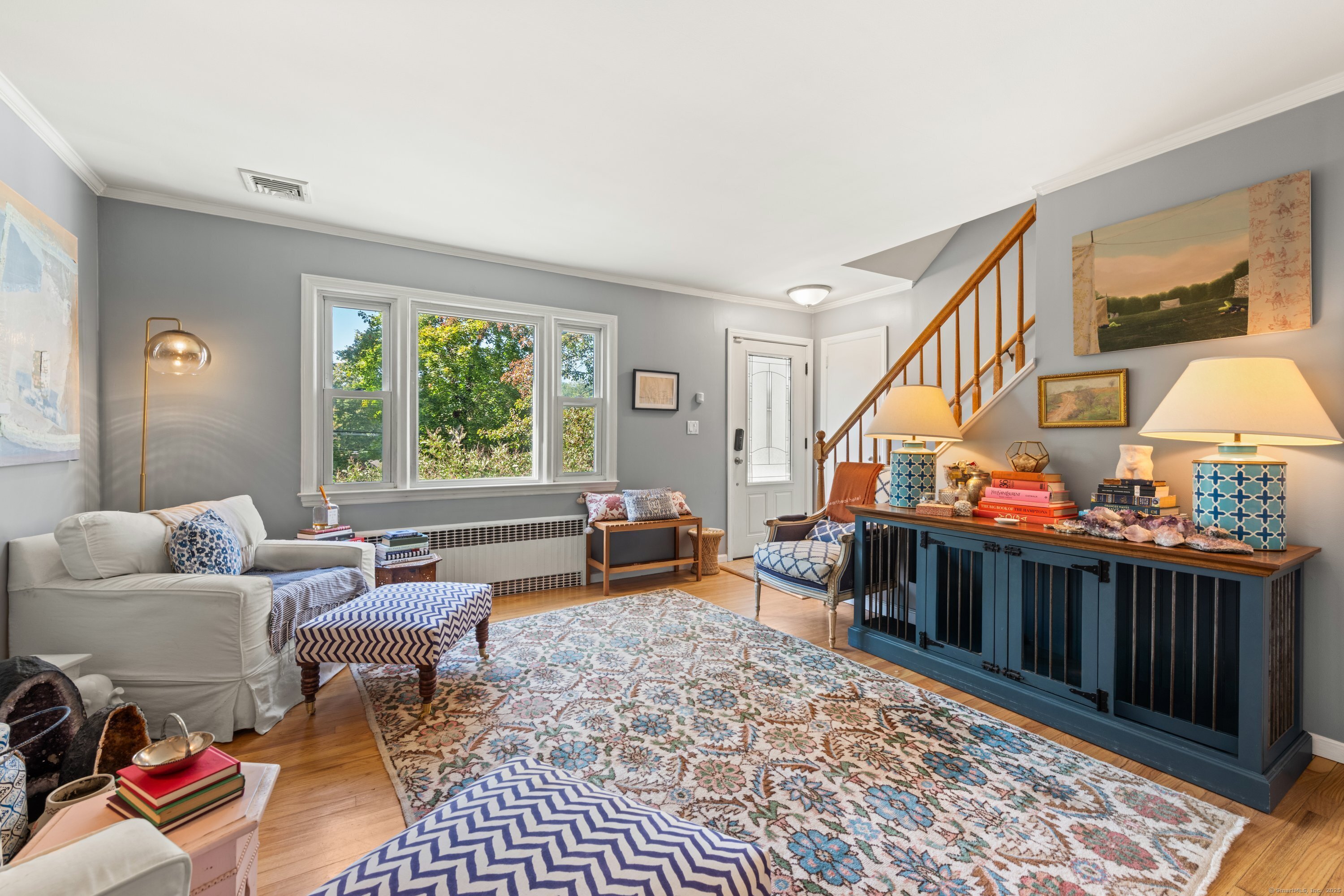 Welcome to 3 Green Lane, an inviting, move in ready Cape on a peaceful cul-de-sac in Greenwich's Glenville area. Sun filled living and dining spaces set the tone for everyday comfort, with hardwood floors throughout and a refreshed kitchen that keeps things bright and functional. The home offers 4 bedrooms and 2 full baths, plus a finished lower level with 900+/- sq ft of additional flexible space beyond the listed square footage, ideal for a media room, playroom, hobby space, or work-from-home setup. Two fireplaces add warmth and character. Outside, enjoy multiple places to relax, a private patio and an elevated deck, along with a classic stone-walled entry that gives the home standout curb appeal. There's also a fenced side yard area great for contained outdoor space. Central air, natural-gas heat/hot water, and a 1-car garage add everyday convenience. Also, Located in an R-6 zone, the property may offer two-family potential (will need to verify with the town). Close to Glenville School, local shops, parks, and commuter routes/train connections.