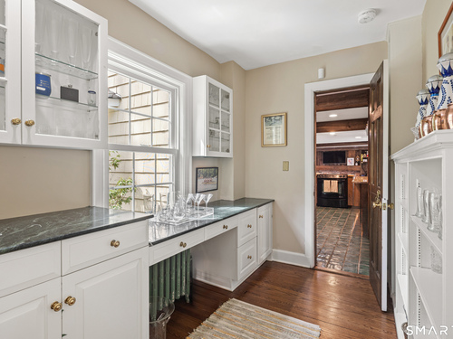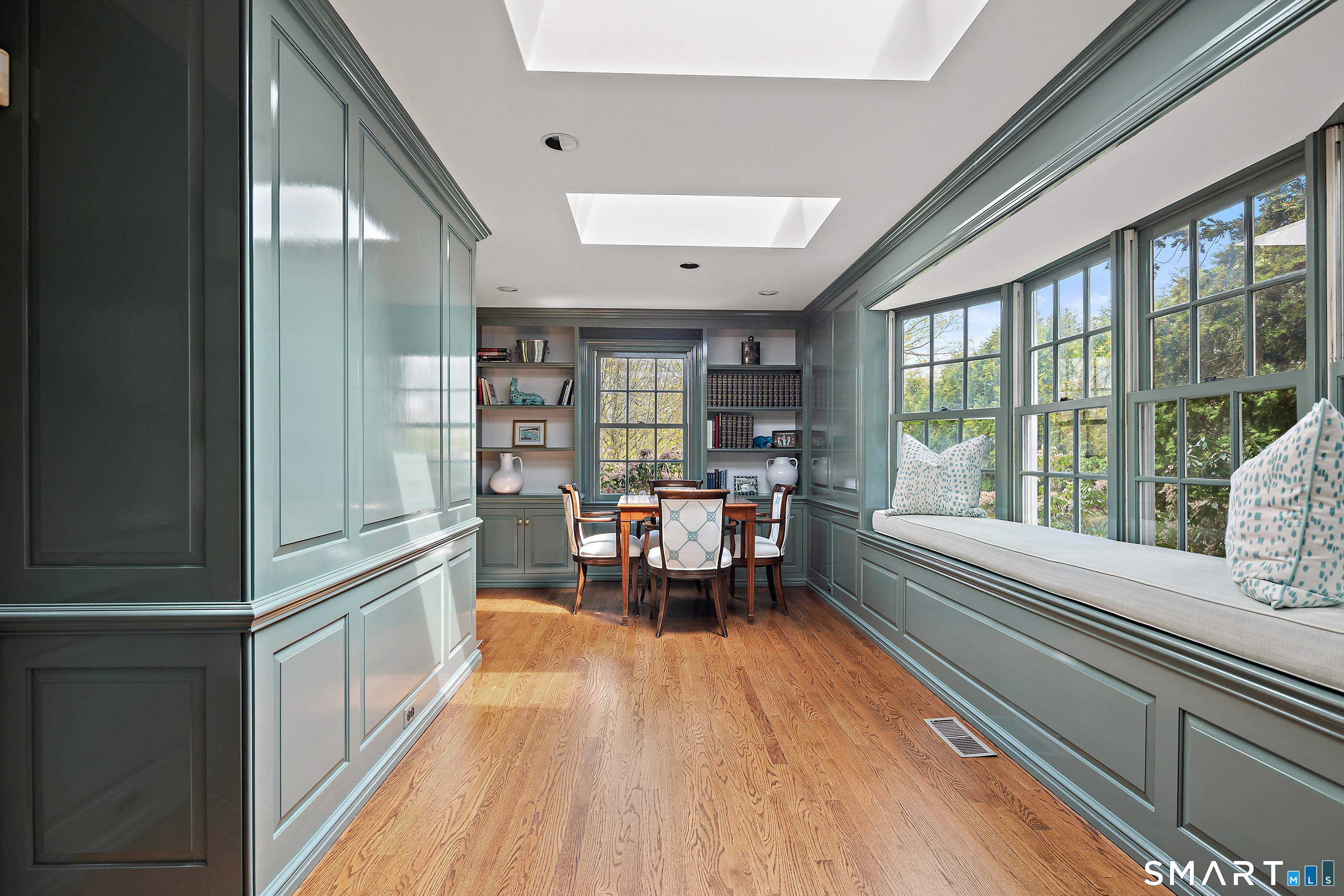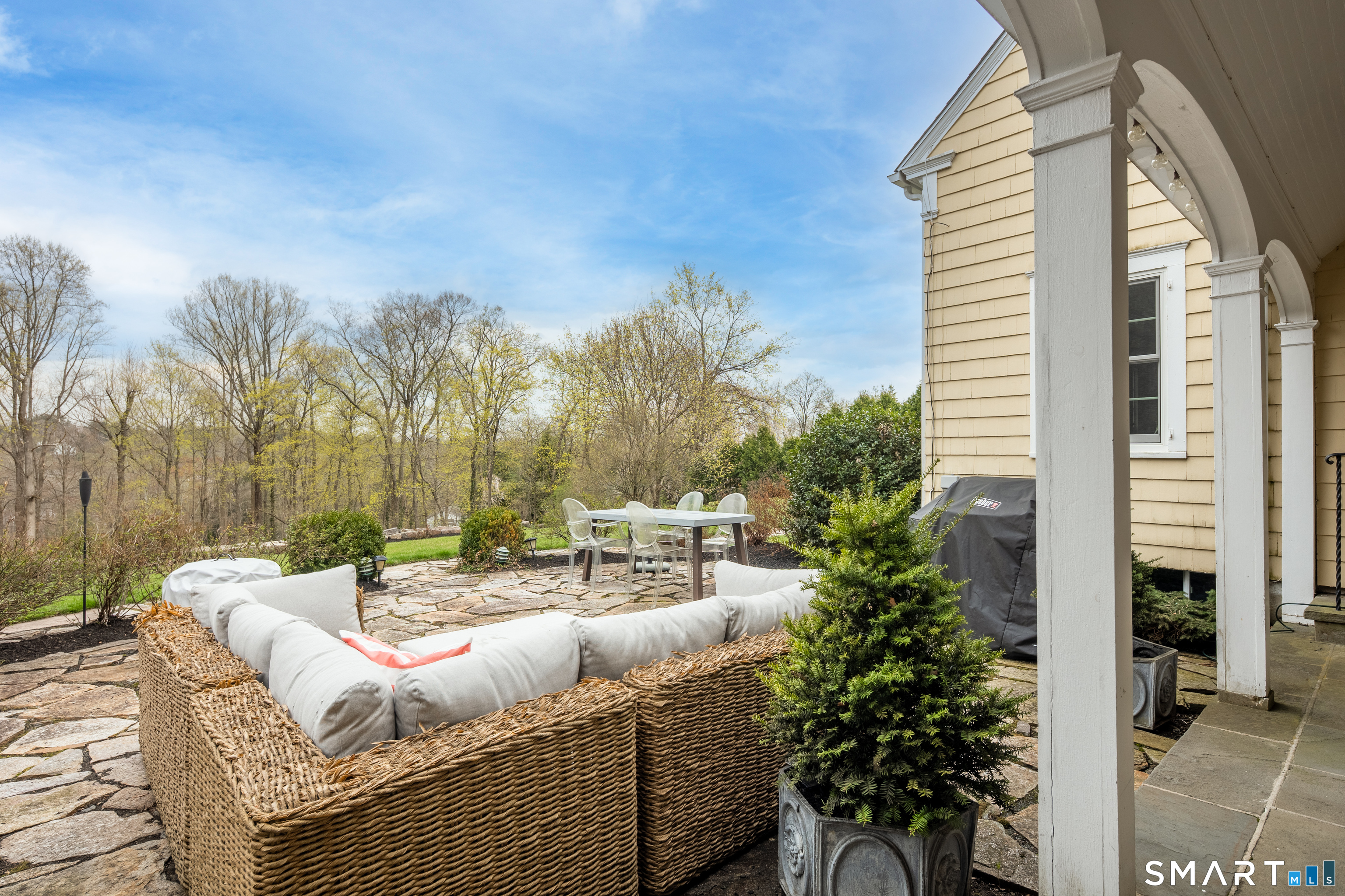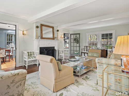 Set on nearly two acres of beautifully landscaped, park-like grounds, this enchanting 1930s Colonial is tucked away on a private cul-de-sac just moments from the village and train.Classic architectural details define the gracious living room with fireplace and the elegant formal dining room accented by custom built-ins. A richly paneled library with a window seat provides an inviting retreat, ideal for a distinguished home office. The country kitchen opens seamlessly to the warm and welcoming family room, complete with its own fireplace-perfect for everyday living and entertaining. A generous stone terrace extends from the family room, offering sweeping views across the expansive lawn, flowering trees, and mature plantings. Upstairs, the spacious primary suite is accompanied by three additional bedrooms, completing this exceptional home that blends timeless charm with serene privacy. **Central Air is on the second floor of the main part of the house only**