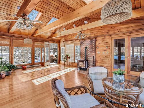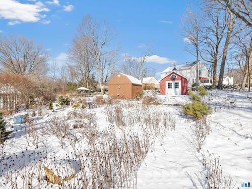 Prepare to be impressed with 3 Maler Avenue in desirable Huntington! Kick off the New Year in this exquisitely-expanded, meticulously-kept, sunny Ranch home with 3 good-sized Bedrooms, 1.5 Baths, a finished Basement plus the extras of 3 versatile out-buildings all on .93 acre. The home's Main Level features gleaming hardwood floors throughout. The eat-in Kitchen opens to an absolutely stunning Great Room with cathedral ceiling and skylights surrounded by floor-to-ceiling windows for enviable year-round enjoyment of the expansive lawns and lush, perennial gardens. The Basement Family Room offers many options including an excellent private space to work from home, plus an enclosed storage area with cedar closet. Outbuildings are nestled in the seasonal gardens just steps out the Main Level back door: a vintage Barn great for storage, and a newer 11' X 21' "Shed" with French doors opening to a patio... perfect for an Art Studio, a Home Office a Playhouse/Gym or potentially a Guest House/ADU. Perched on the most picturesque of settings in a quiet, sought-after neighborhood minutes from popular dining venues, shopping, schools and easy access to commuter routes and Metro North, this home is an excellent choice for up-sizers with growing households or down-sizers looking for a delightful next chapter. Also ideal as a 2nd Home escape for city dwellers. Don't miss this unique opportunity to add your personal touches and create the lifestyle of your dreams to enjoy for years to come