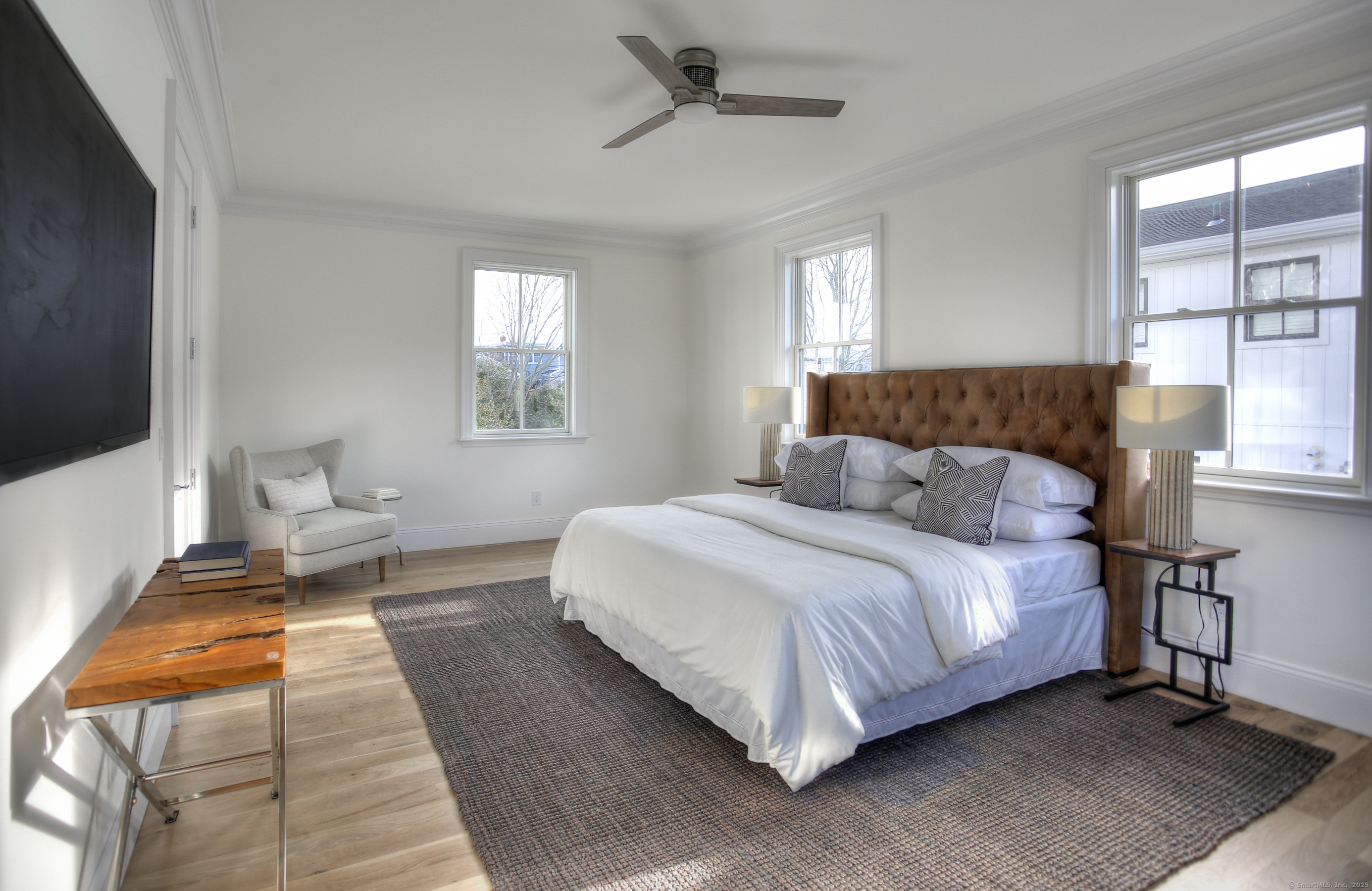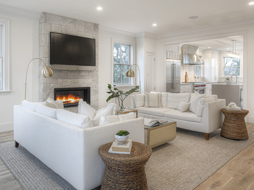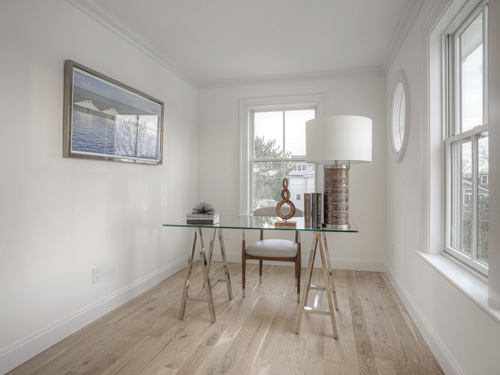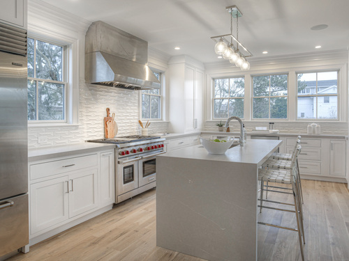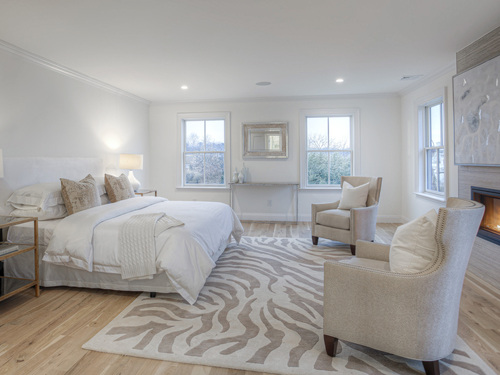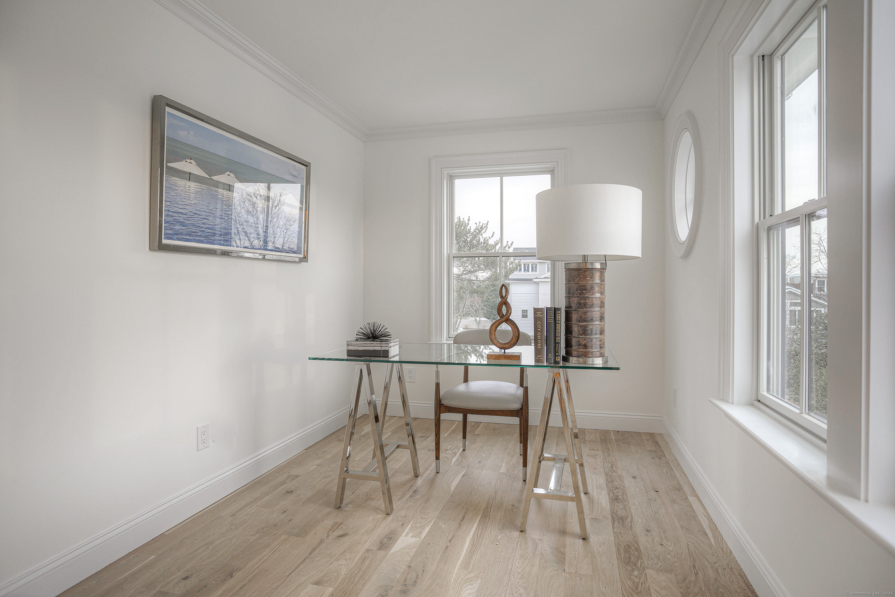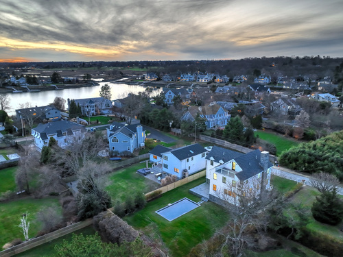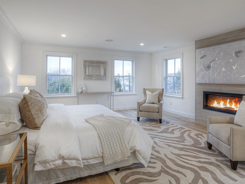 Modern coastal living on a quiet cul-de-sac in Westport's Saugatuck Shores. Completed in 2021, this five-bedroom, four-bath home spans more than 3,700 sq ft of finished space with a thoughtful open layout and timeless design. The main level features 9-ft ceilings, a sunlit living room with gas fireplace, and large windows framing serene water views. The kitchen offers custom cabinetry, quartz waterfall island, and premium stainless appliances, connecting seamlessly to the dining area for easy entertaining. A first-floor bedroom with full bath provides flexible use as a guest suite or home office. Upstairs, the primary suite includes a gas fireplace, walk-in closet, and spa-style bath with soaking tub and glass shower. Three additional bedrooms and two full baths complete the second floor. The third-level loft opens directly to a finished roof deck with sweeping water views-ideal for relaxing or gatherings. The property's outdoor spaces include a heated gunite saltwater pool, stone terrace, and level yard surrounded by low-maintenance landscaping. Additional features include white-oak flooring, energy-efficient systems, and an attached two-car garage. Conveniently located near Saugatuck Village, just 4 minutes to the Metro-North train station and about 13 minutes to Compo Beach, with quick access to Longshore Club Park, Ned Dimes Marina, and downtown Westport restaurants. A refined coastal retreat blending design, comfort, and proximity.