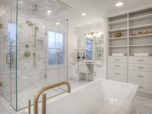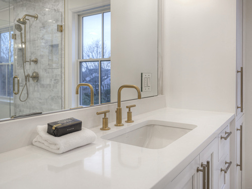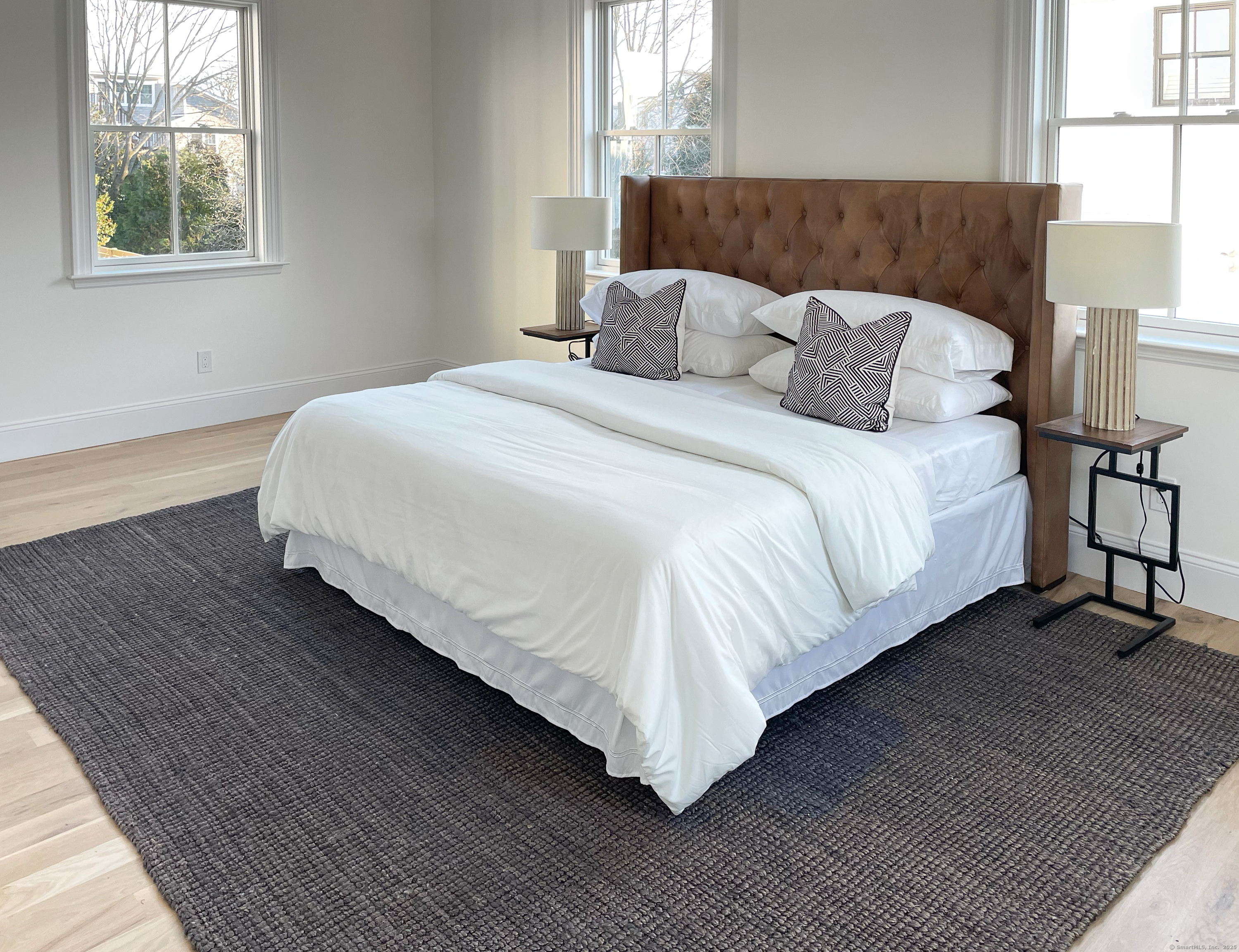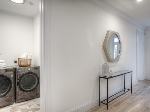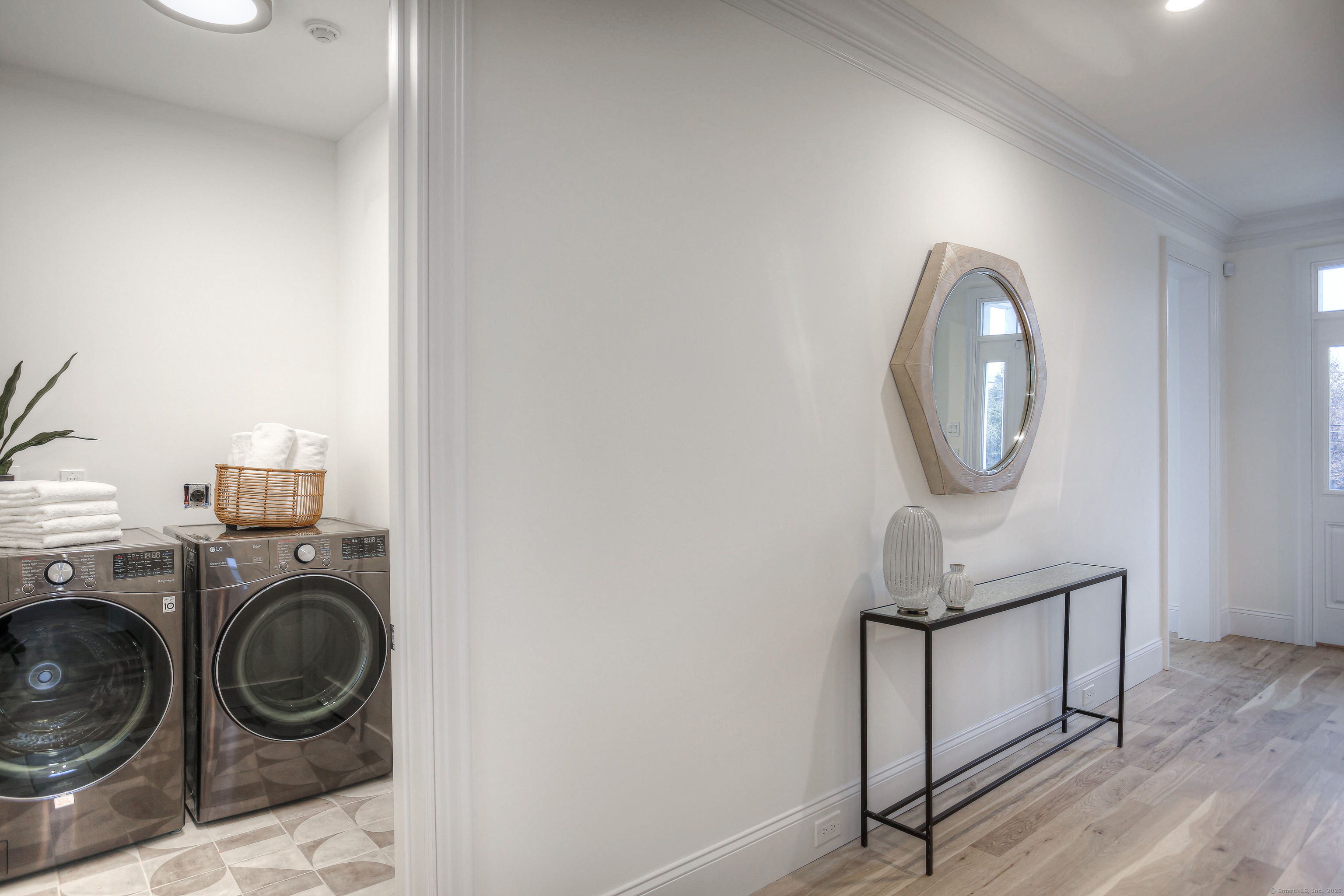Modern coastal living on a quiet cul-de-sac in Westport's Saugatuck Shores. Completed in 2021, this five-bedroom, four-bath home spans more than 3,700 sq ft of finished space with a thoughtful open layout and timeless design. The main level features 9-ft ceilings, a sunlit living room with gas fireplace, and large windows framing serene water views. The kitchen offers custom cabinetry, quartz waterfall island, and premium stainless appliances, connecting seamlessly to the dining area for easy entertaining. A first-floor bedroom with full bath provides flexible use as a guest suite or home office. Upstairs, the primary suite includes a gas fireplace, walk-in closet, and spa-style bath with soaking tub and glass shower. Three additional bedrooms and two full baths complete the second floor. The third-level loft opens directly to a finished roof deck with sweeping water views-ideal for relaxing or gatherings. The property's outdoor spaces include a heated gunite saltwater pool, stone terrace, and level yard surrounded by low-maintenance landscaping. Additional features include white-oak flooring, energy-efficient systems, and an attached two-car garage. Conveniently located near Saugatuck Village, just 4 minutes to the Metro-North train station and about 13 minutes to Compo Beach, with quick access to Longshore Club Park, Ned Dimes Marina, and downtown Westport restaurants. A refined coastal retreat blending design, comfort, and proximity.