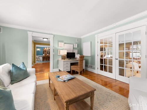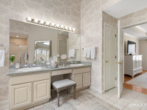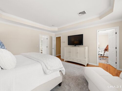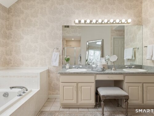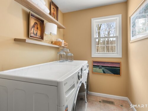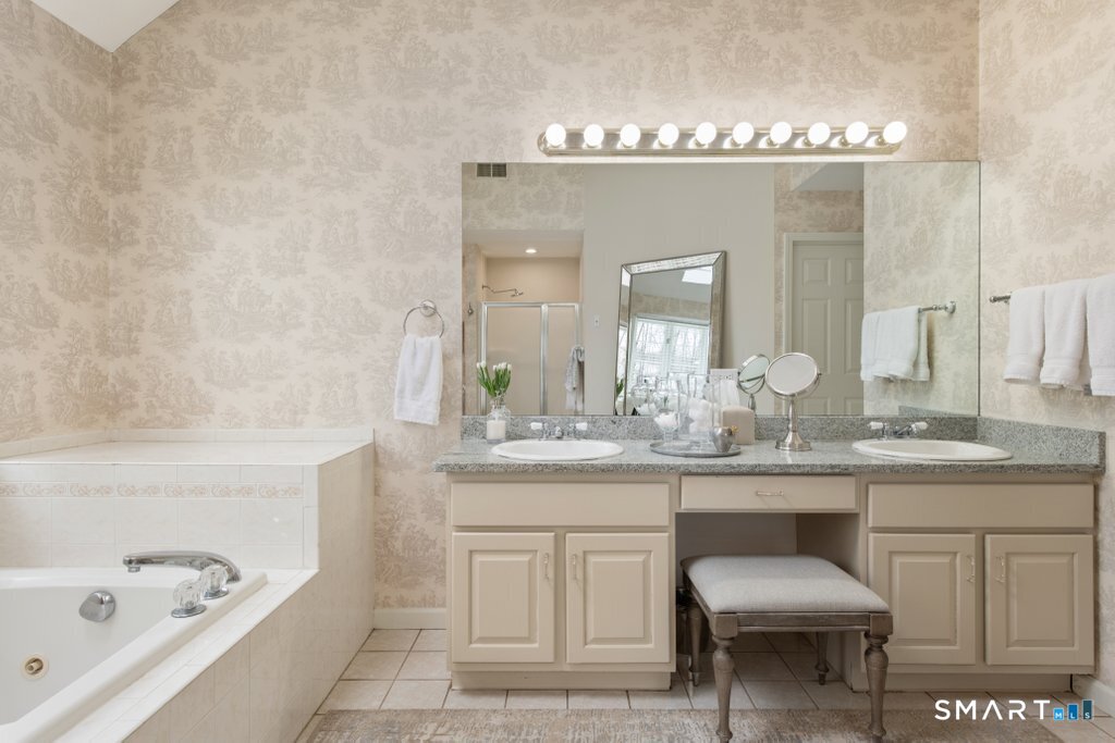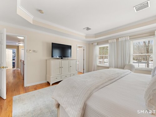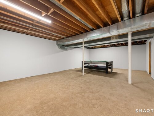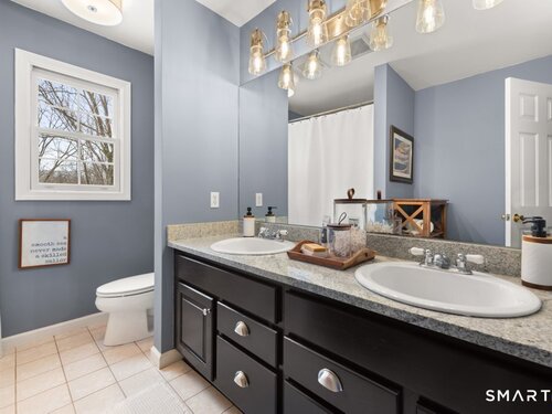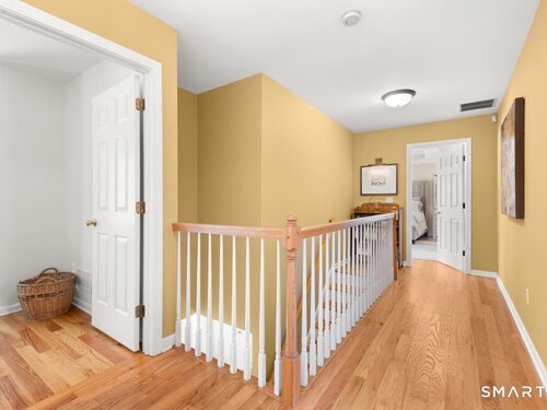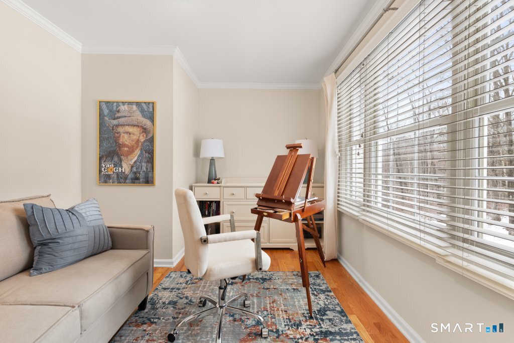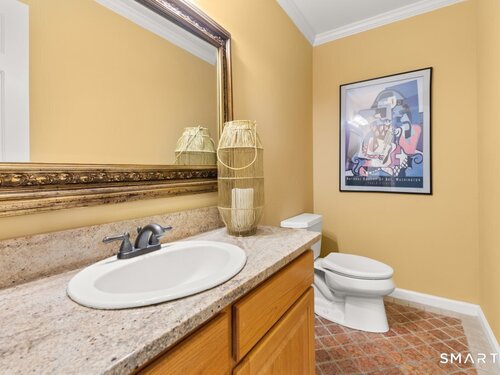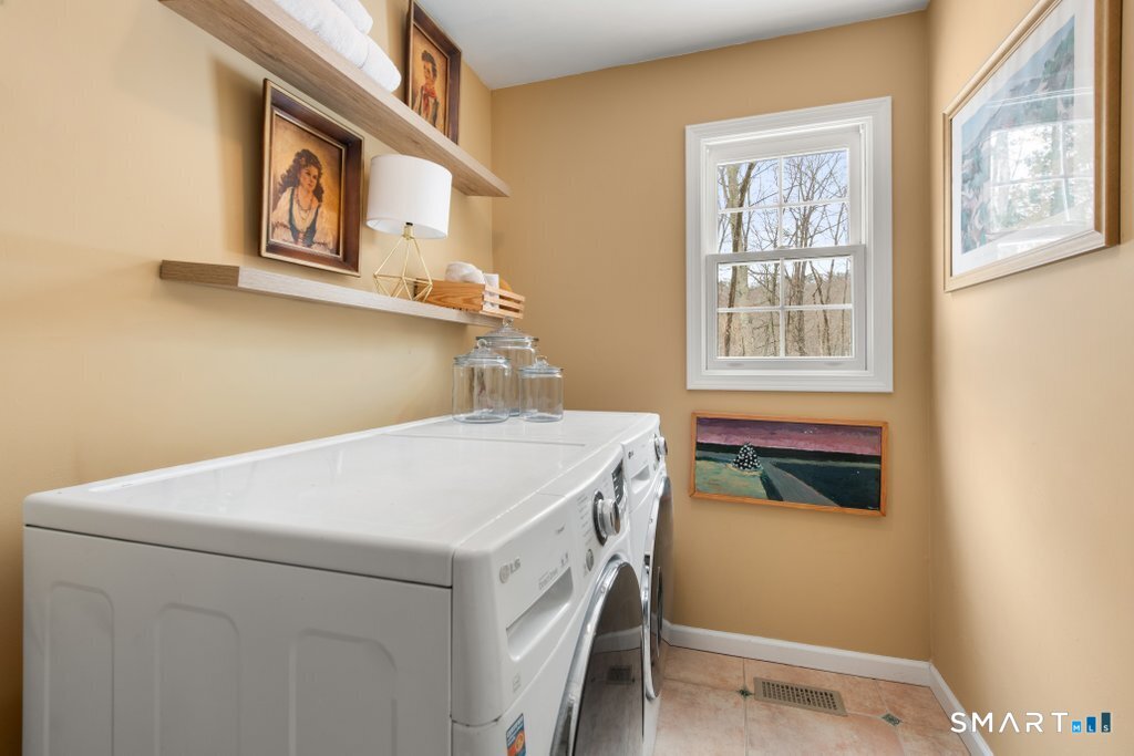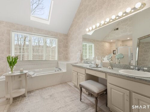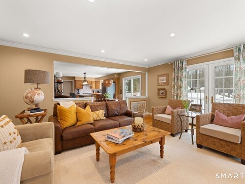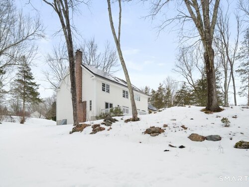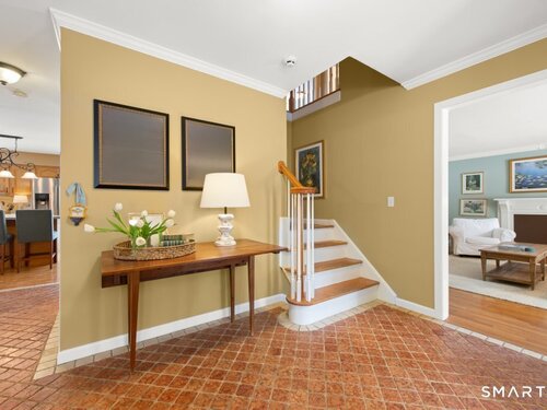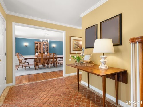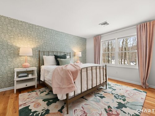 Tucked at the end of a peaceful cul-de-sac with nature bordering the side yard and calming wooded views from the family room, this magazine-designer-inspired 4BR Colonial offers a serene retreat just minutes to Sandy Hook Village. Step onto the welcoming front porch and into beautifully curated spaces made for everyday comfort and entertaining. A tranquil living room is perfect for quiet mornings, while the spacious dining room sets the stage for gatherings. The sunlit eat-in kitchen is the heart of the home, featuring an oversized island, stainless steel appliances, and generous workspace for cooking, hosting, and lingering. Just beyond, the inviting family room warms the space with a cozy pellet stove picturesque views of the woods. A convenient half bath and a spacious, separate laundry room complete the main level. Upstairs, the primary suite is a true escape with a versatile sitting area-ideal for an office, reading nook, nursery, or yoga space. The oversized primary bath feels airy and spa-like with high ceilings and a skylight that fills the room with natural light. Three additional bedrooms with hardwood floors are bright and generously sized, sharing a full hall bath. The lower level offers a potential blank canvas perfect for a rec room, playroom, gym, or movie space. Enjoy outdoor living on the deck and the rare blend of privacy, neighborhood charm, and an unbeatable Sandy Hook location.