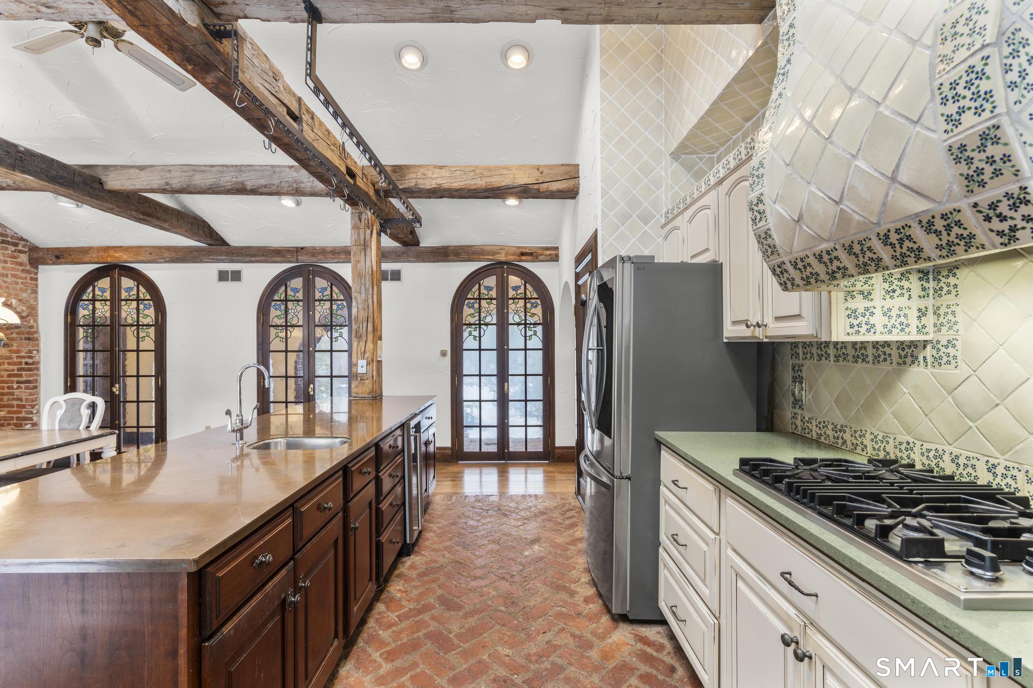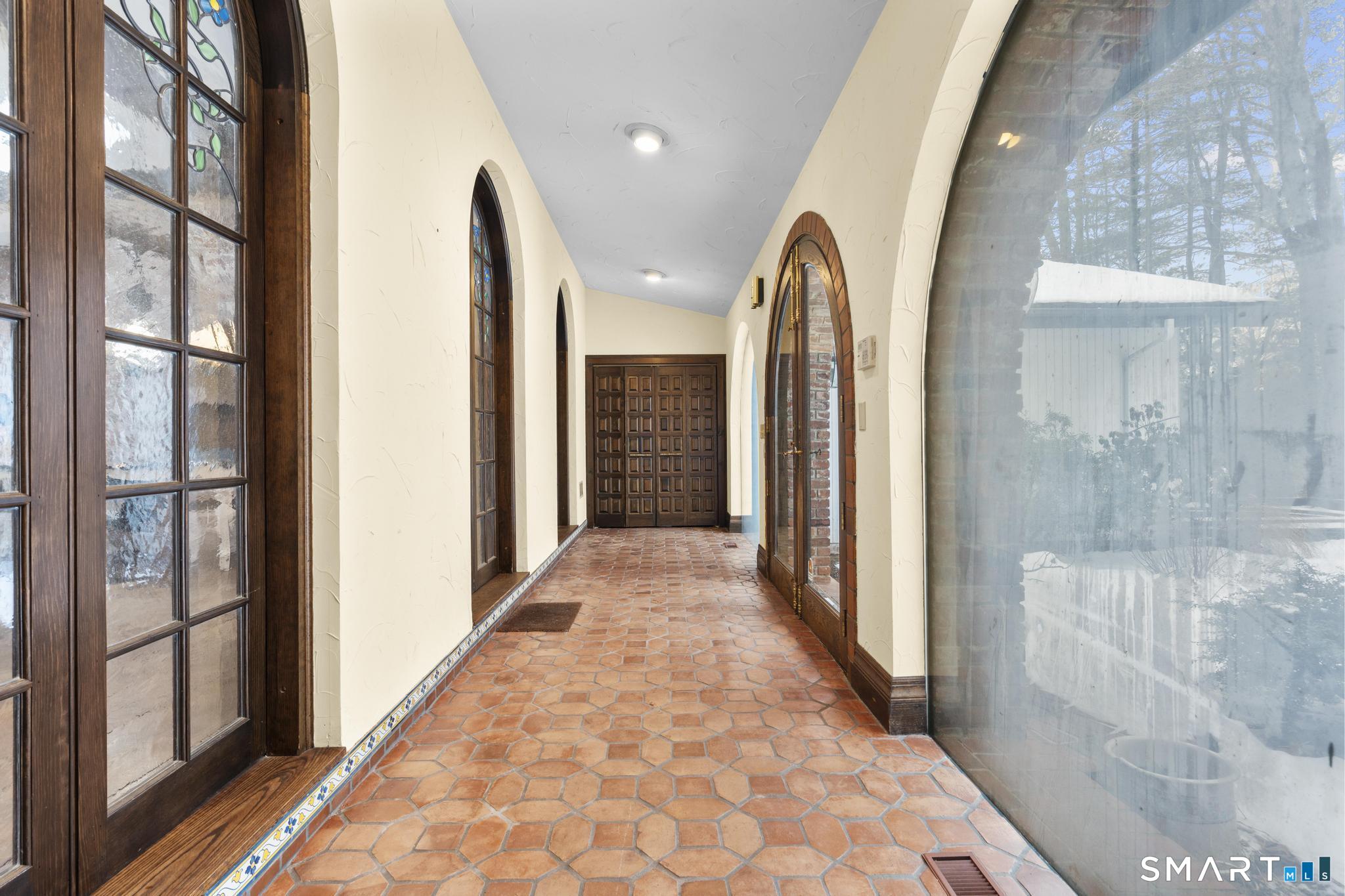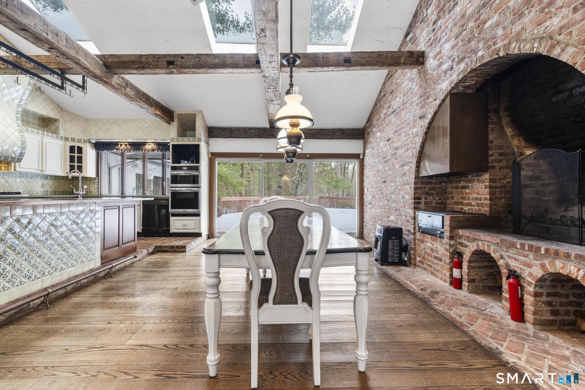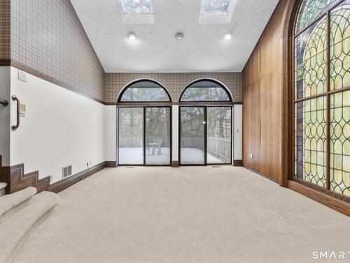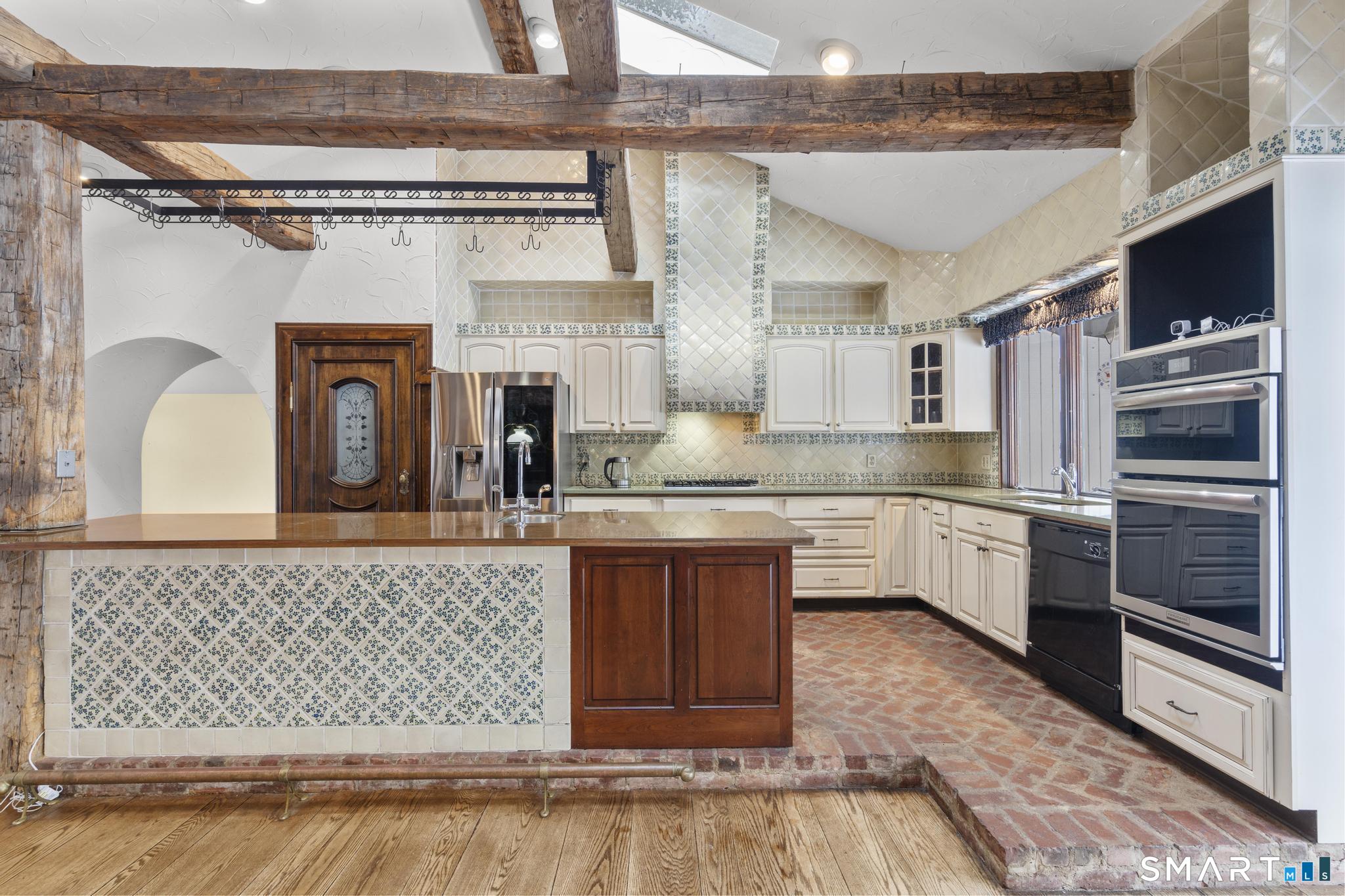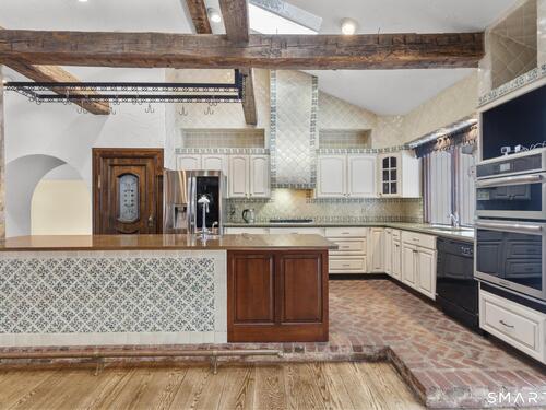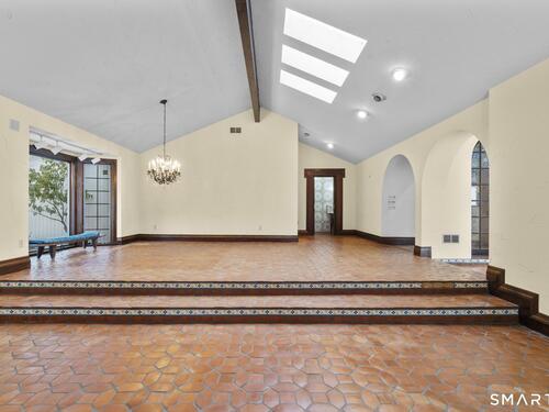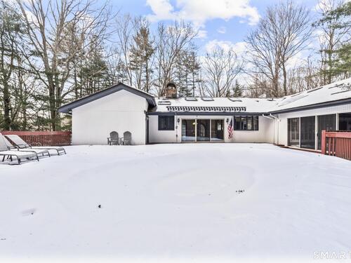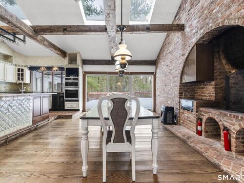 Welcome to 3 Sweetbrier Trail, a truly exceptional Mediterranean-style estate nestled on 3.05 private, wooded acres in coveted Easton, Connecticut. This distinctive residence blends European architectural charm with warm, inviting spaces - perfect for gracious living and memorable entertaining. Step inside to discover nearly 3,900 sq ft of thoughtfully designed living space boasting rustic exposed beams, elegant curved archways, vaulted ceilings, and abundant natural light throughout. The oversized chef's kitchen anchors family life with ample workspace, casual dining around the island, and a cozy stone fireplace that sets the tone for everyday comfort and holiday gatherings alike. Flow effortlessly from the kitchen to a large deck and pool area - ideal for summer barbecues, outdoor lounging, and serene mornings overlooking the lush grounds. The formal dining room and sunken living room provide versatile spaces for celebrations and quiet evenings. The primary suite is a peaceful retreat featuring a vaulted ceiling, jacuzzi soaking tub, and access to a bright solarium through French doors - a perfect blend of luxury and tranquility. On the opposite wing, a spacious family room with a stained-glass window and private balcony invites relaxation. With its European character, expansive layout, and unrivaled setting close to Merritt Parkway access and local amenities, this property presents a rare opportunity to enjoy upscale living in one of Easton's most desirable locatio