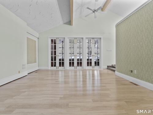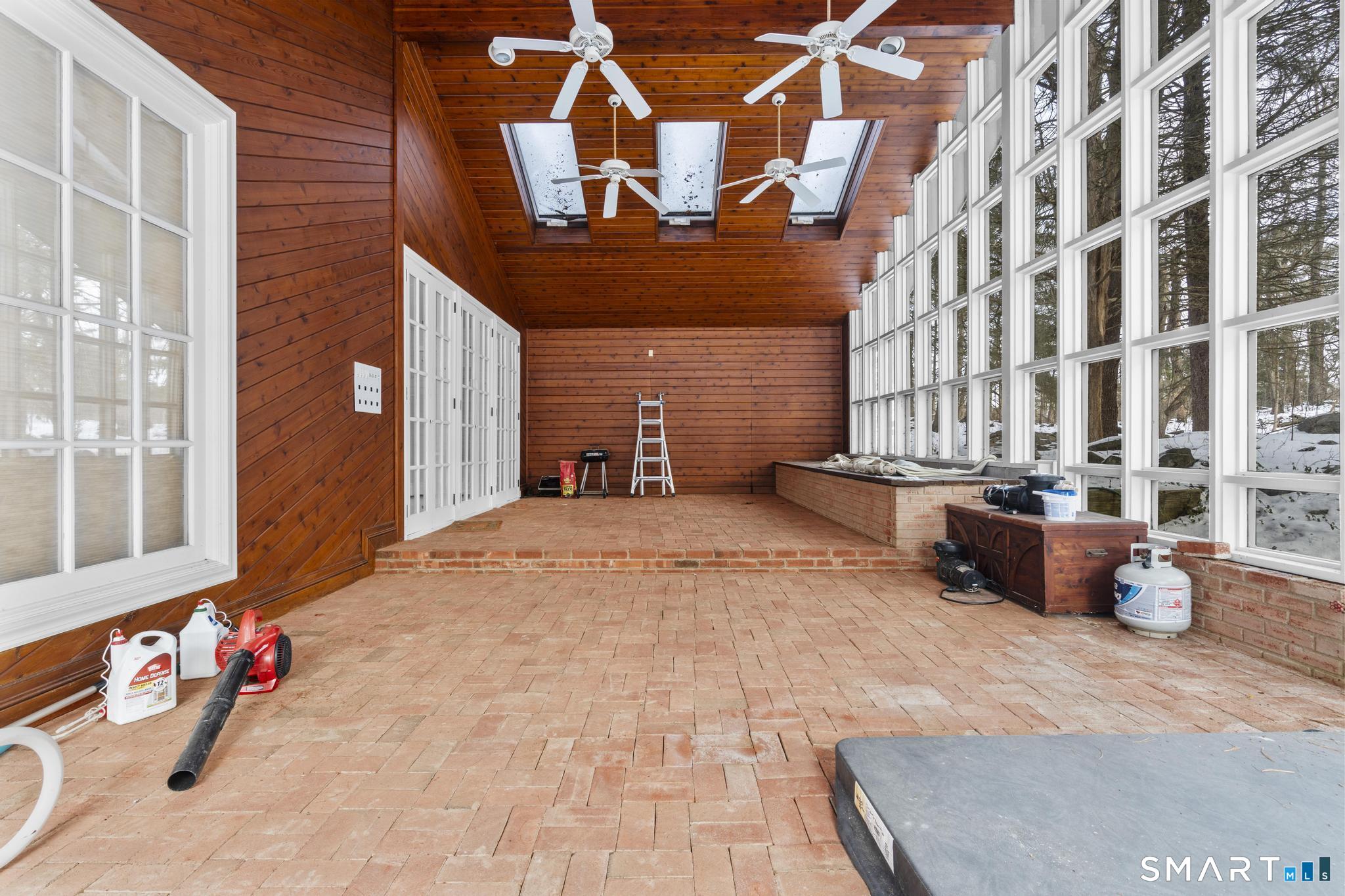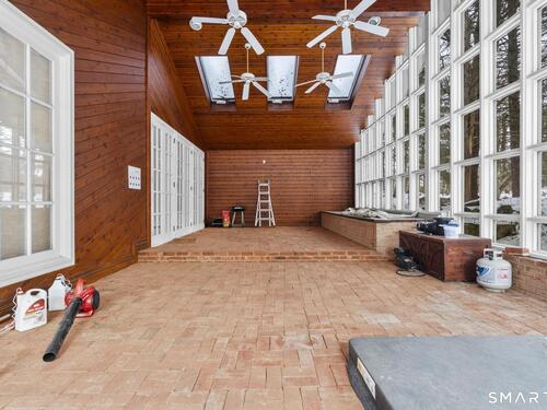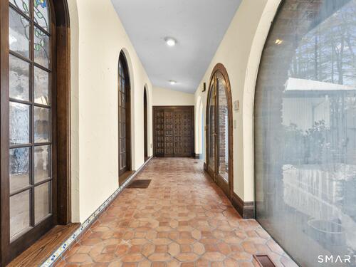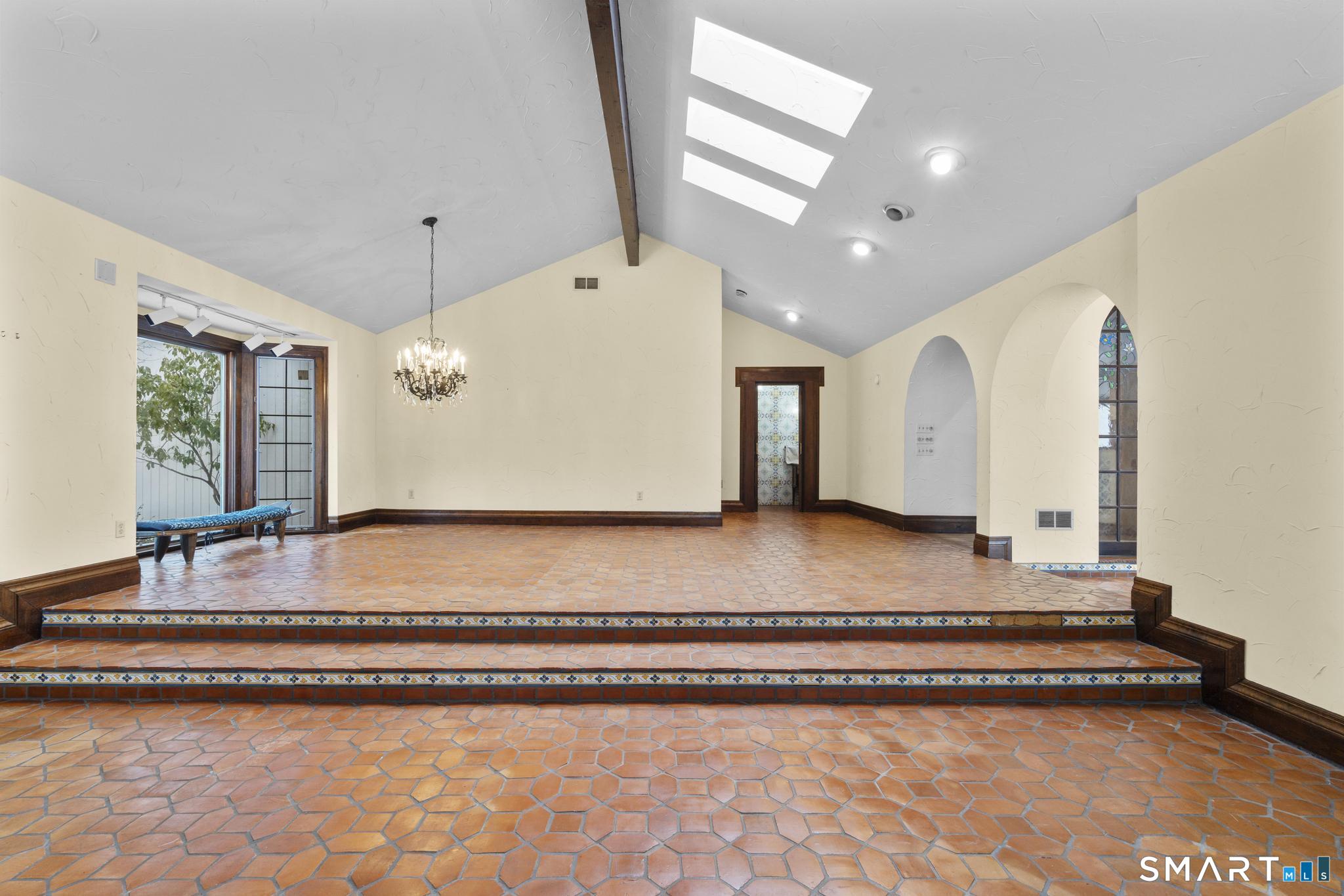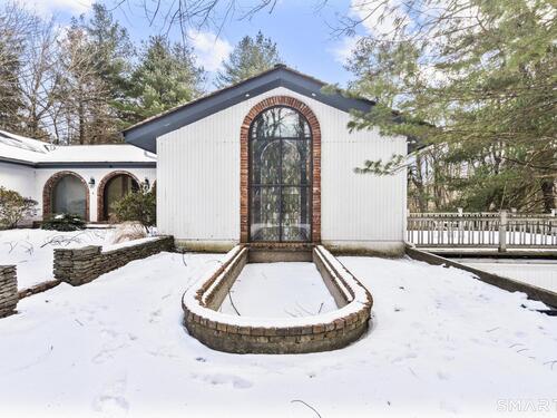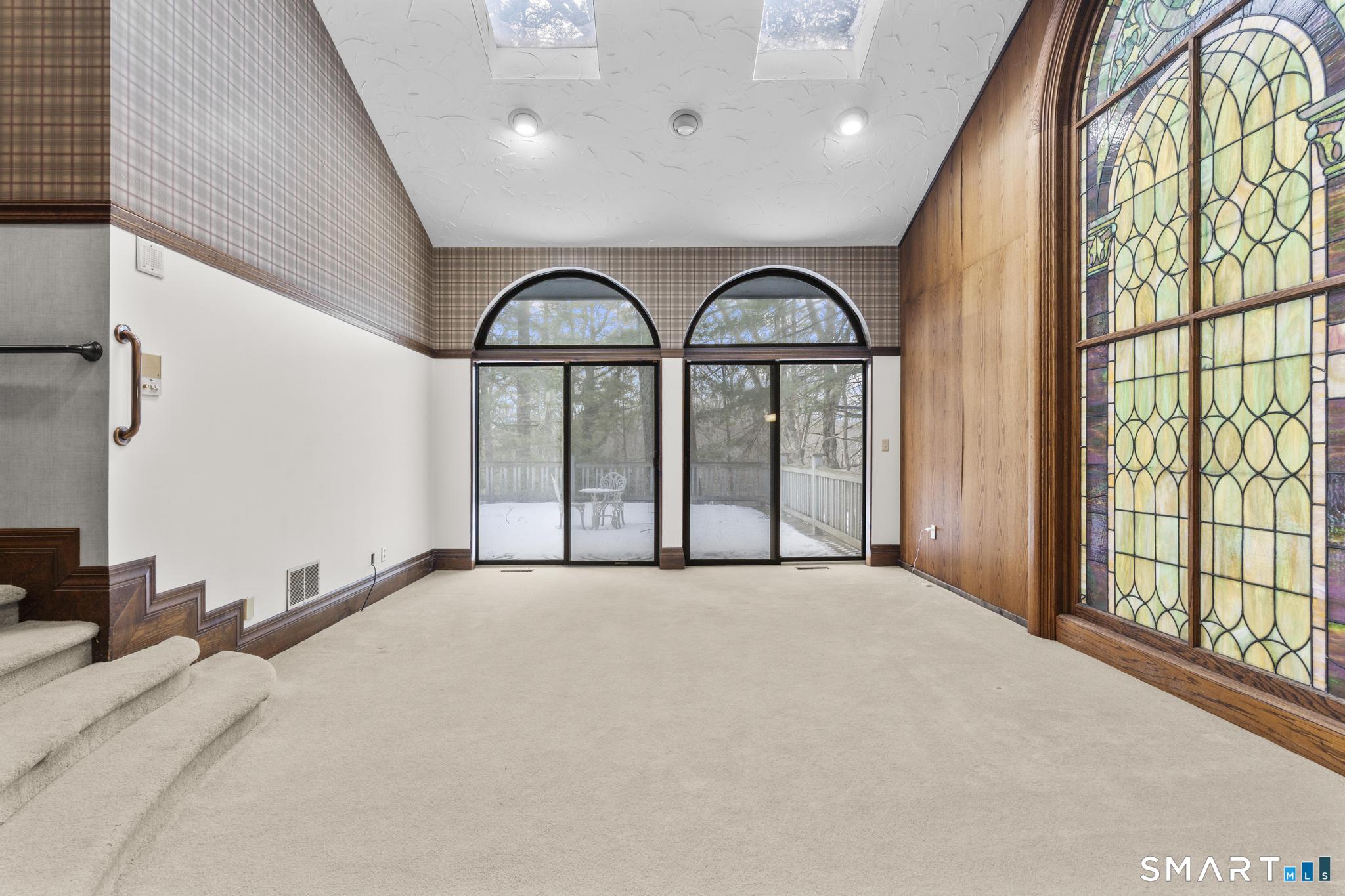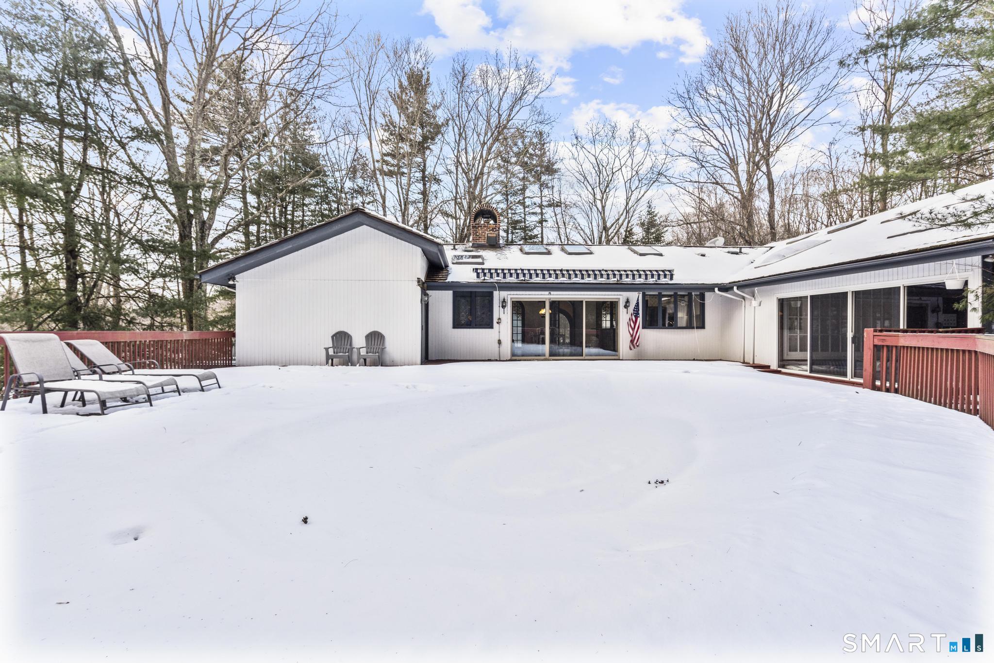 Welcome to 3 Sweetbrier Trail, a truly exceptional Mediterranean-style estate nestled on 3.05 private, wooded acres in coveted Easton, Connecticut. This distinctive residence blends European architectural charm with warm, inviting spaces - perfect for gracious living and memorable entertaining. Step inside to discover nearly 3,900 sq ft of thoughtfully designed living space boasting rustic exposed beams, elegant curved archways, vaulted ceilings, and abundant natural light throughout. The oversized chef's kitchen anchors family life with ample workspace, casual dining around the island, and a cozy stone fireplace that sets the tone for everyday comfort and holiday gatherings alike. Flow effortlessly from the kitchen to a large deck and pool area - ideal for summer barbecues, outdoor lounging, and serene mornings overlooking the lush grounds. The formal dining room and sunken living room provide versatile spaces for celebrations and quiet evenings. The primary suite is a peaceful retreat featuring a vaulted ceiling, jacuzzi soaking tub, and access to a bright solarium through French doors - a perfect blend of luxury and tranquility. On the opposite wing, a spacious family room with a stained-glass window and private balcony invites relaxation. With its European character, expansive layout, and unrivaled setting close to Merritt Parkway access and local amenities, this property presents a rare opportunity to enjoy upscale living in one of Easton's most desirable locatio