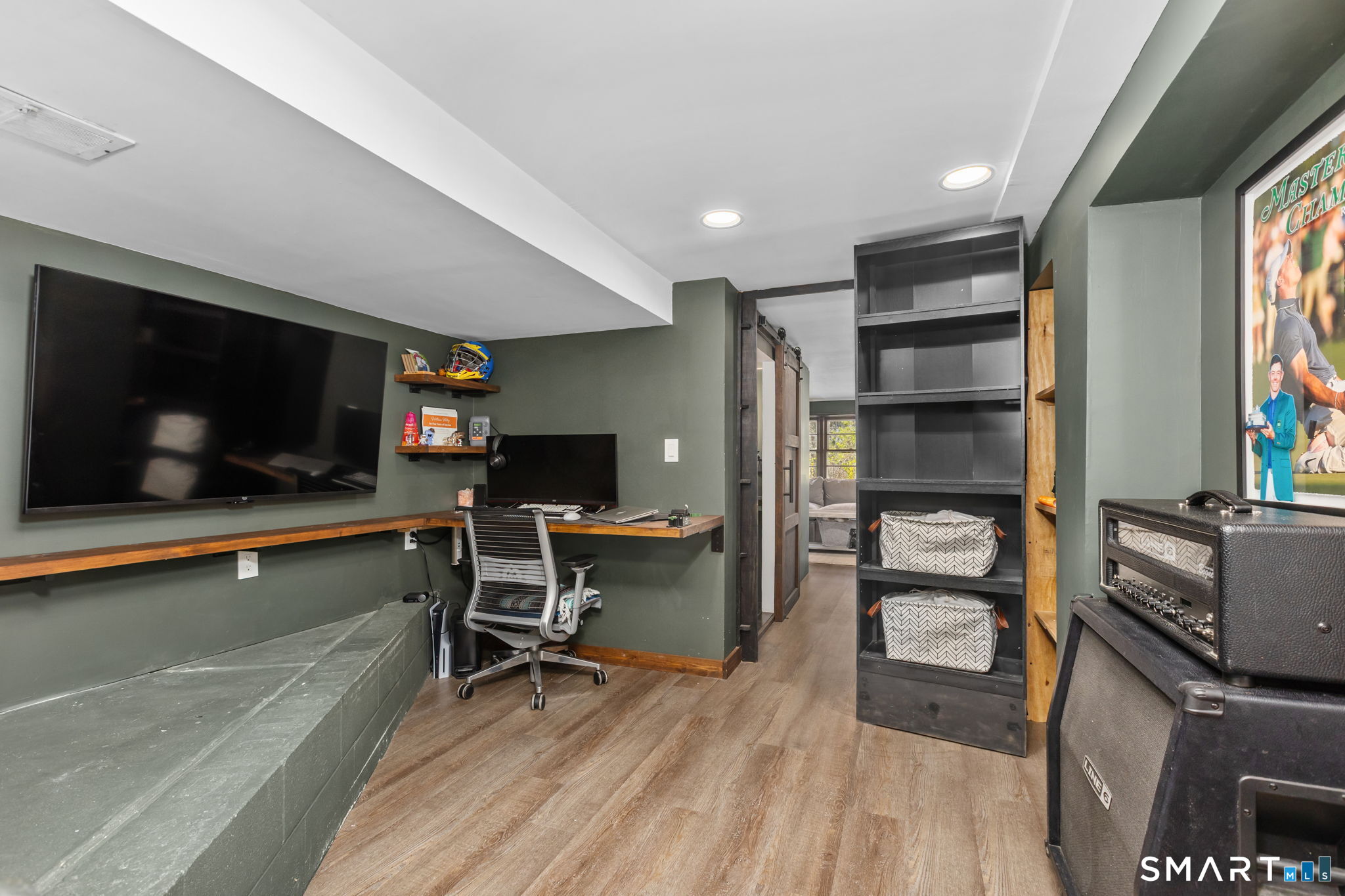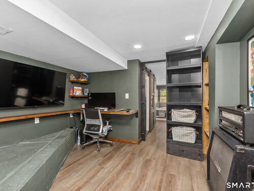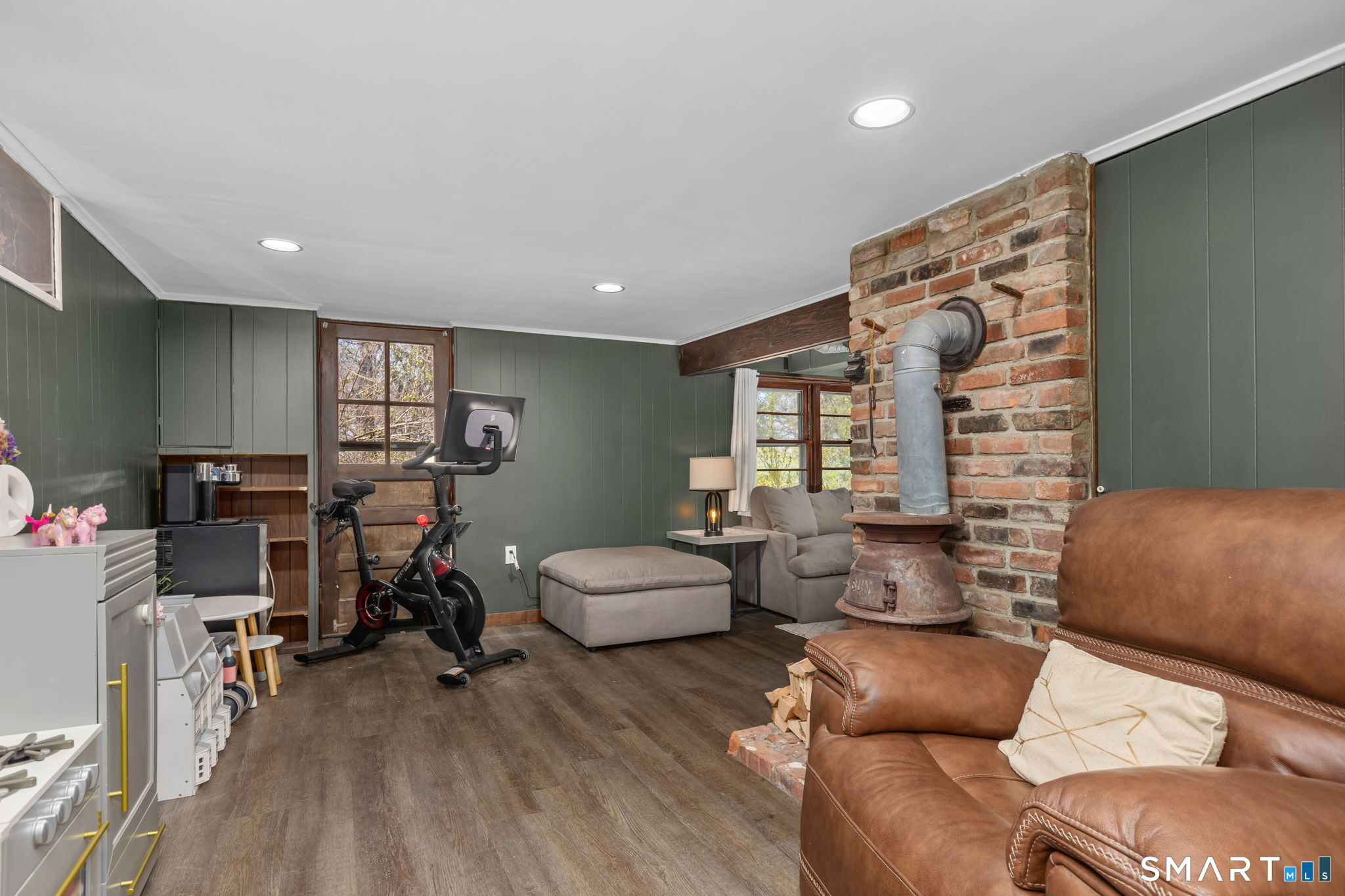 Family Room (Lower Level)Wood Stove, Vinyl Floor