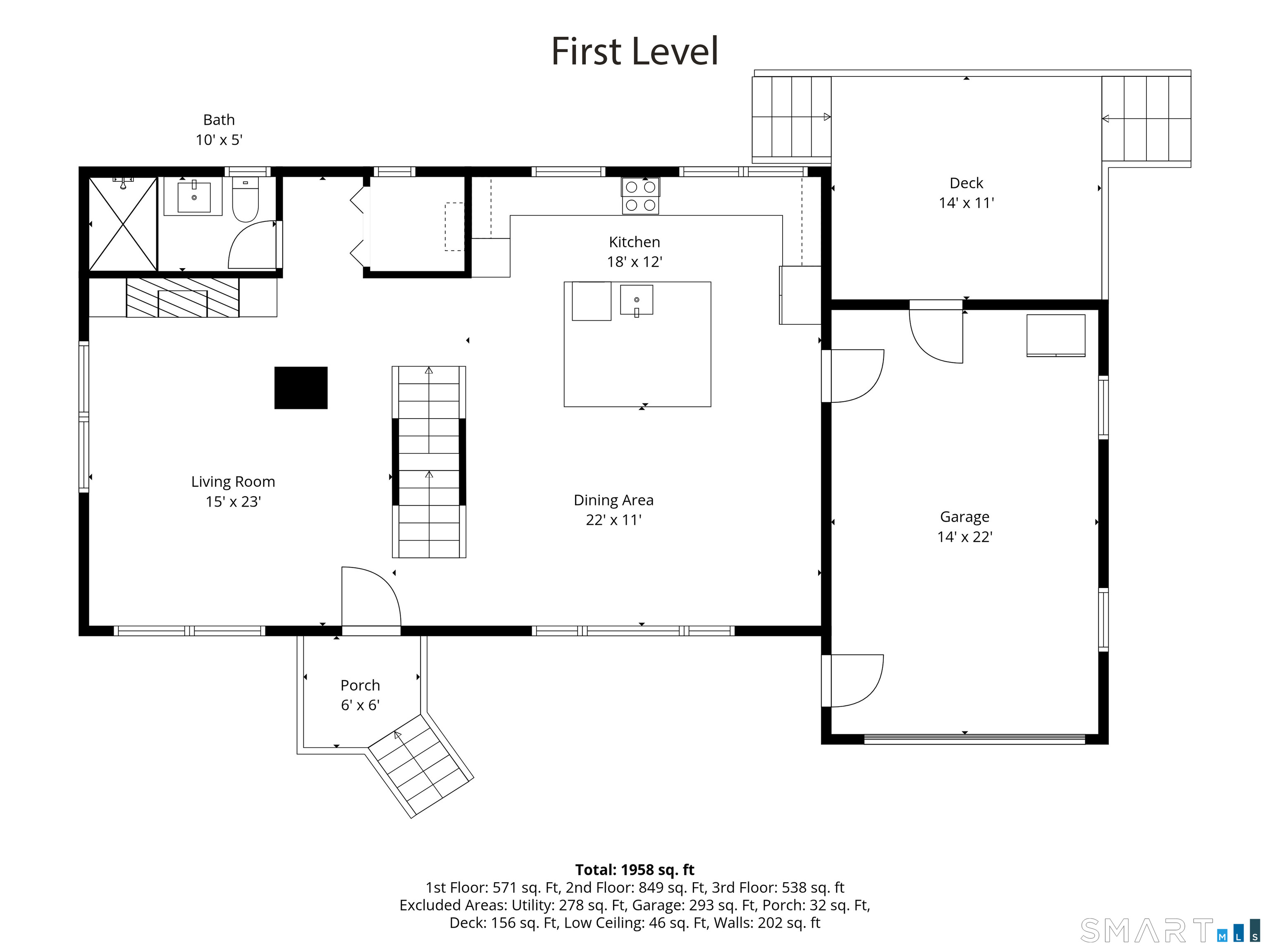 Kitchen (Main Level)Breakfast Bar, Vinyl Floor