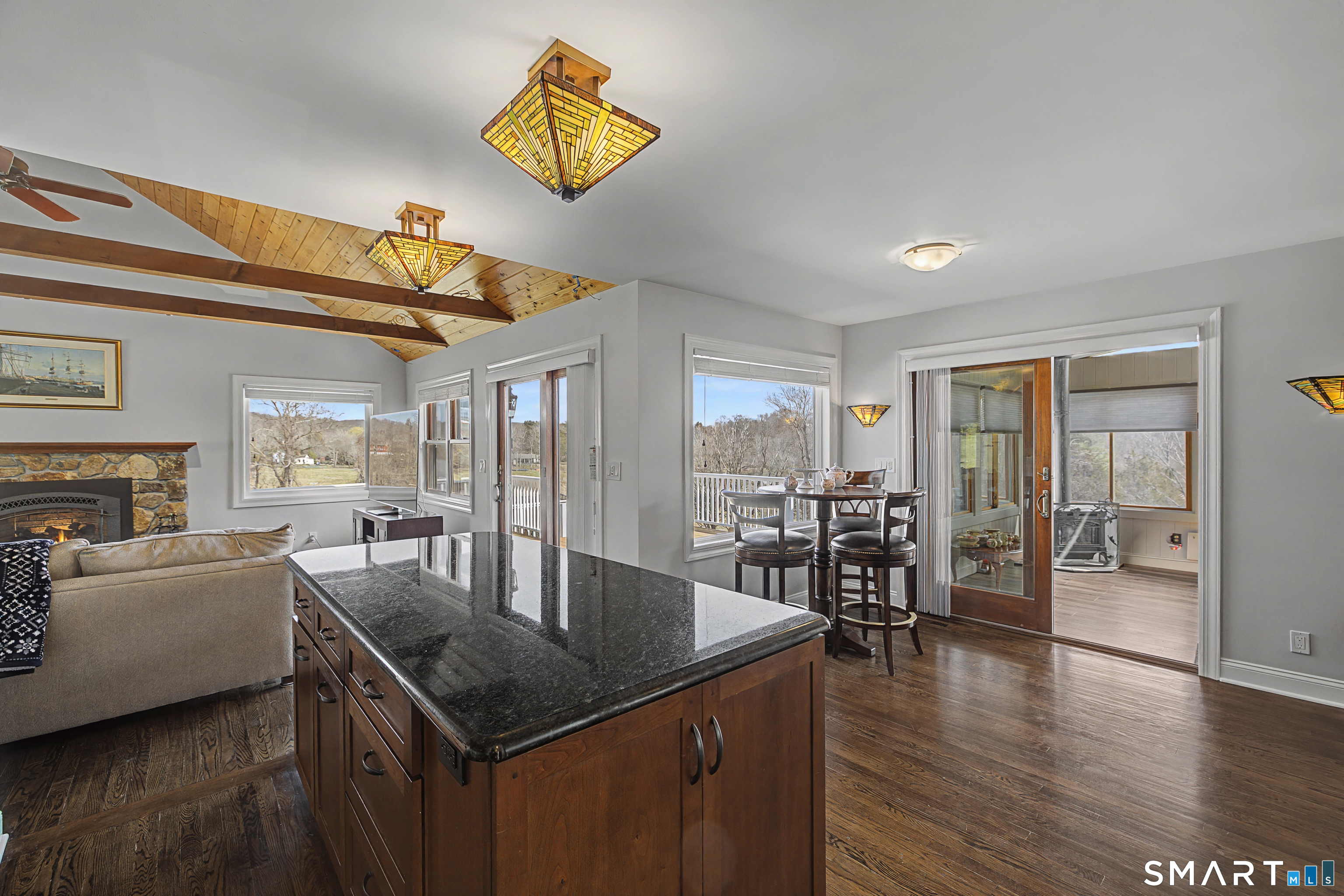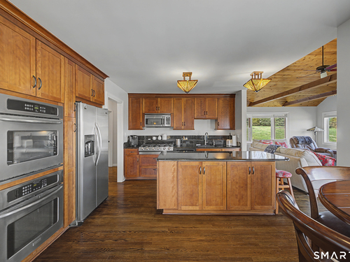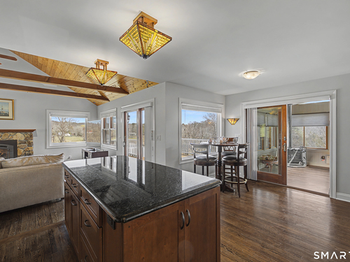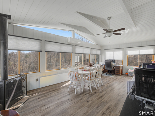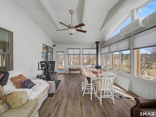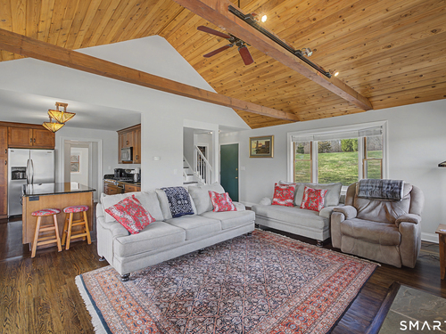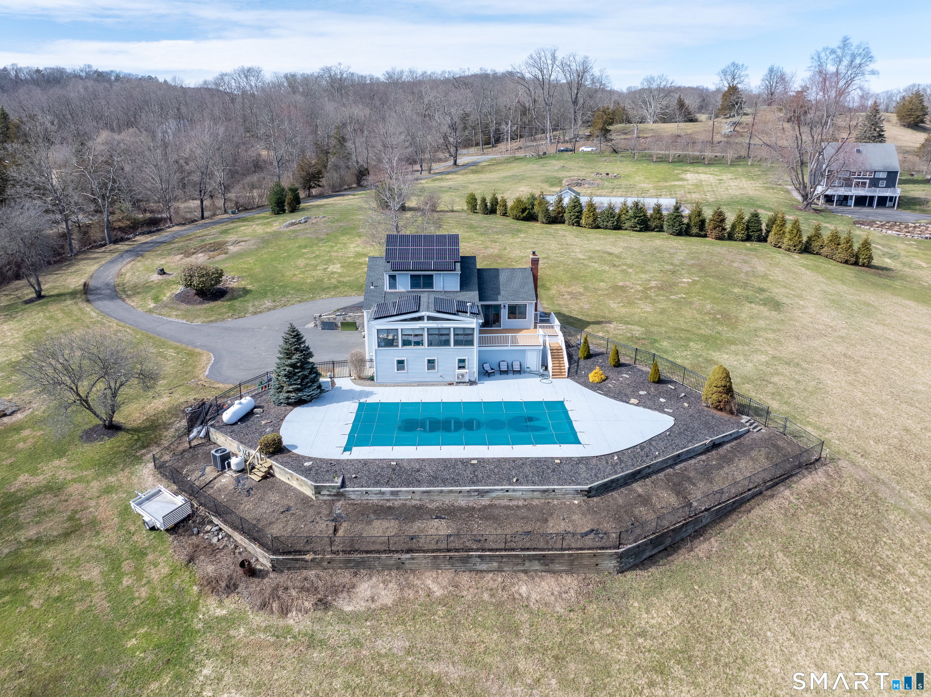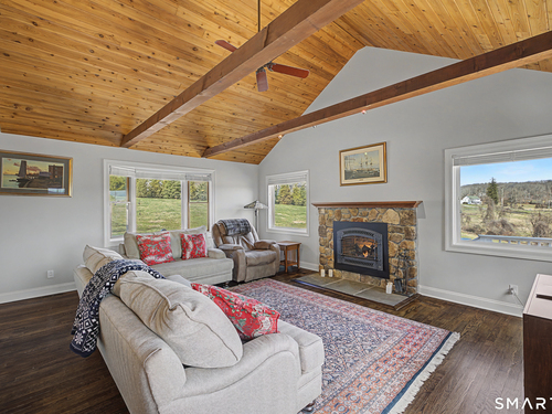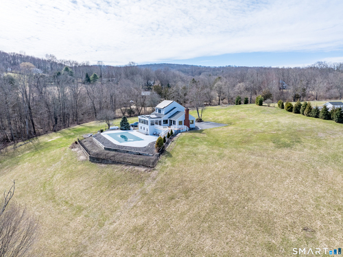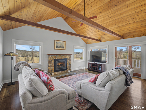 Beautifully sited, this striking Contemporary Cape commands sweeping panoramic views of the surrounding landscape. The home overlooks the iconic Happy Acres Farm, permanently preserved by the Town of Sherman, ensuring timeless pastoral vistas. The open floor plan features three bedrooms, including a main-level primary suite, 3 full baths, main-level office, a dramatic living room space w/vaulted ceilings & a gas log fireplace. The sleek kitchen includes granite countertops, bar seating, & an abundance of cabinet space. The main level also features hdwd floors & walls of oversized windows with stunning front.side & rear views, filling the home with natural light. The upstairs en suite bdrm can also be used as a sitting/playroom & guest quarters or primary bdrm suite. Additional features include a 2.5 car garage, full bsmt just waiting to be finished. Outdoor living is equally inviting with the in-ground pool overlooking the rolling countryside. A four-season sunroom leading out to a newly refurbished deck. Freshly painted exterior & interior, Gas Generac generator, newer roof, new front porch w/slider, new garage doors & front driveway, newer solar panels for energy efficiency! (See Features Sheet for more updates) Enjoy the charm & tranquility of Sherman with beach rights to picturesque Candlewood Lake. Ideally located just 90 minutes from Manhattan & min to NYC train. Come experience the exceptional beauty & peaceful views this special home has to offer!