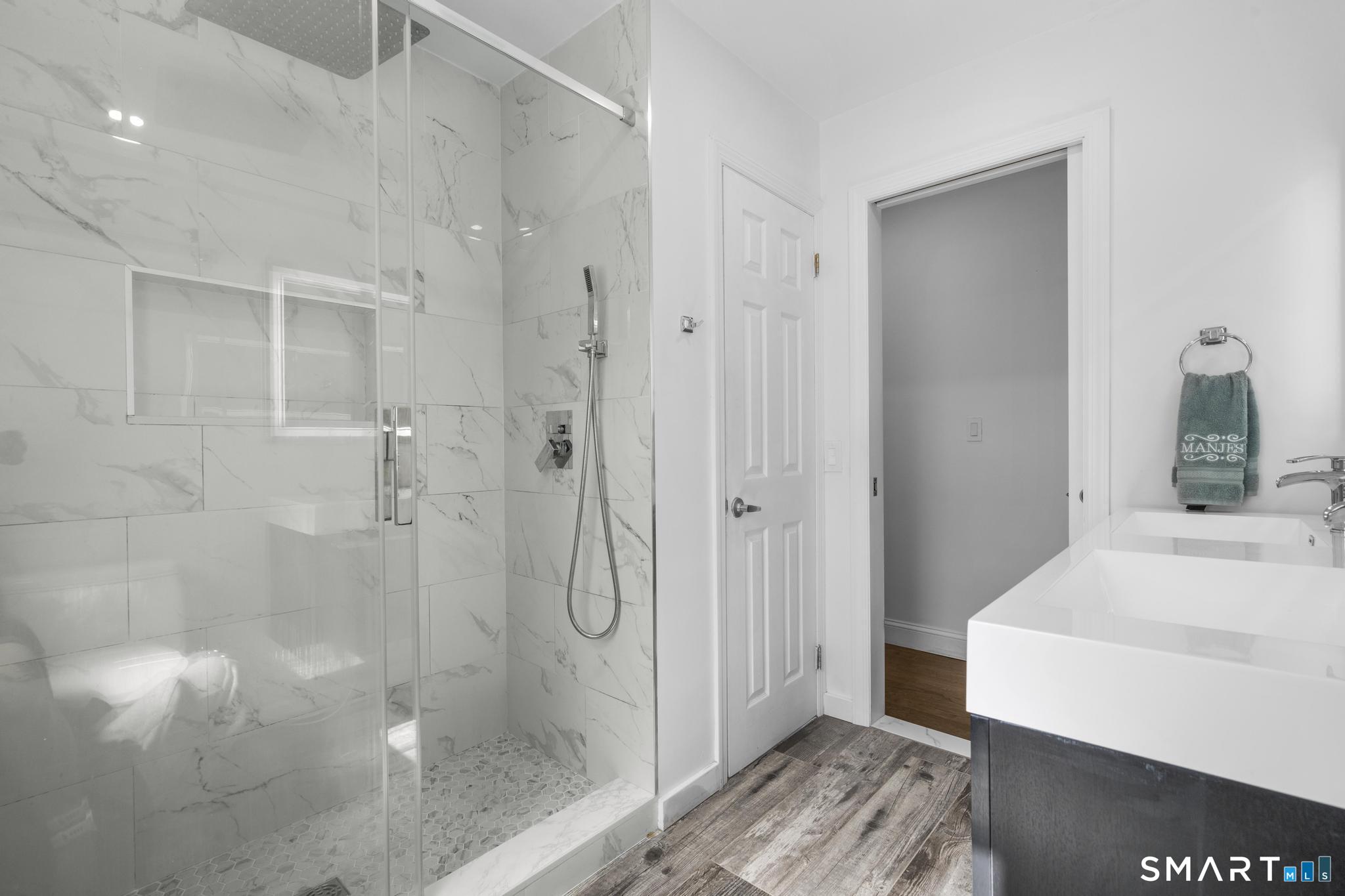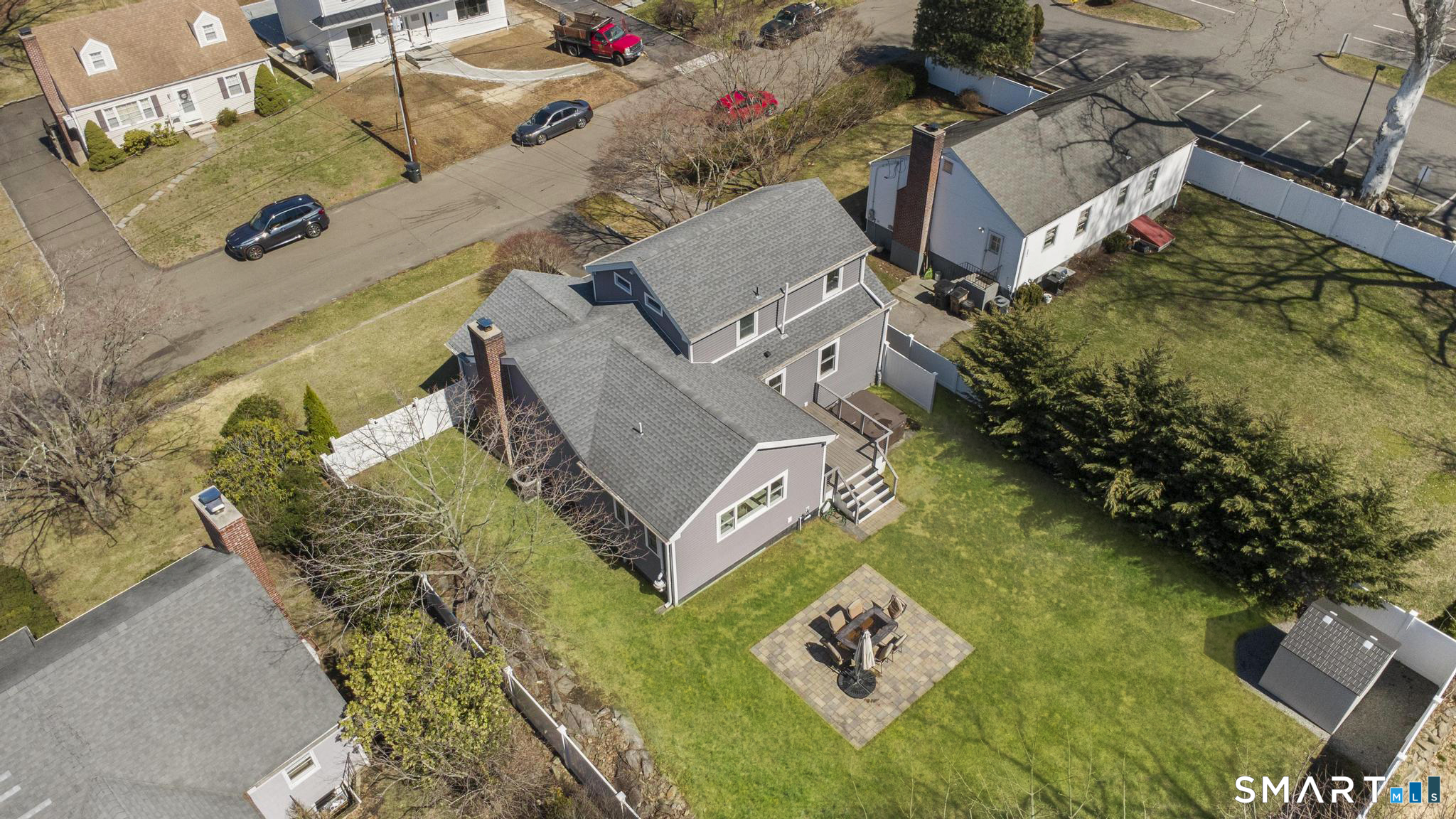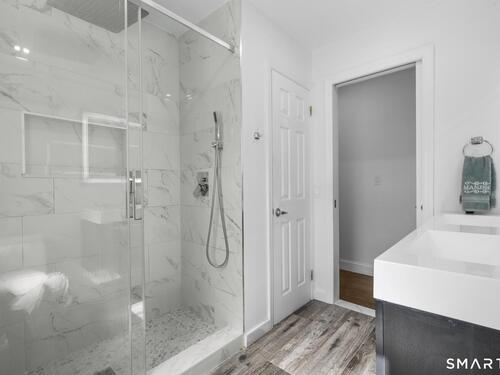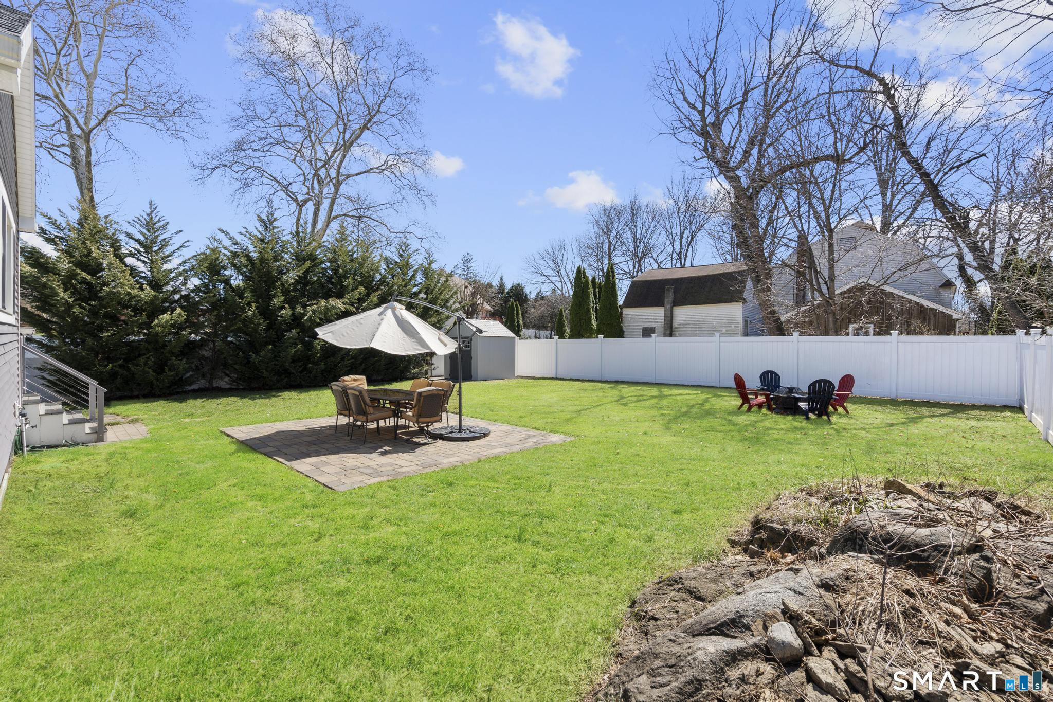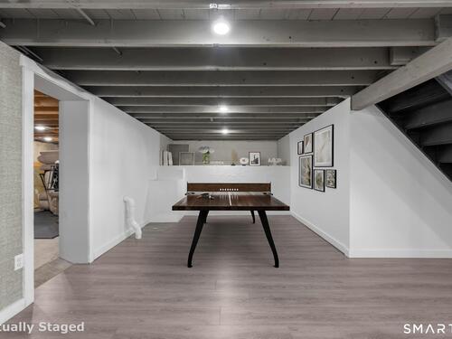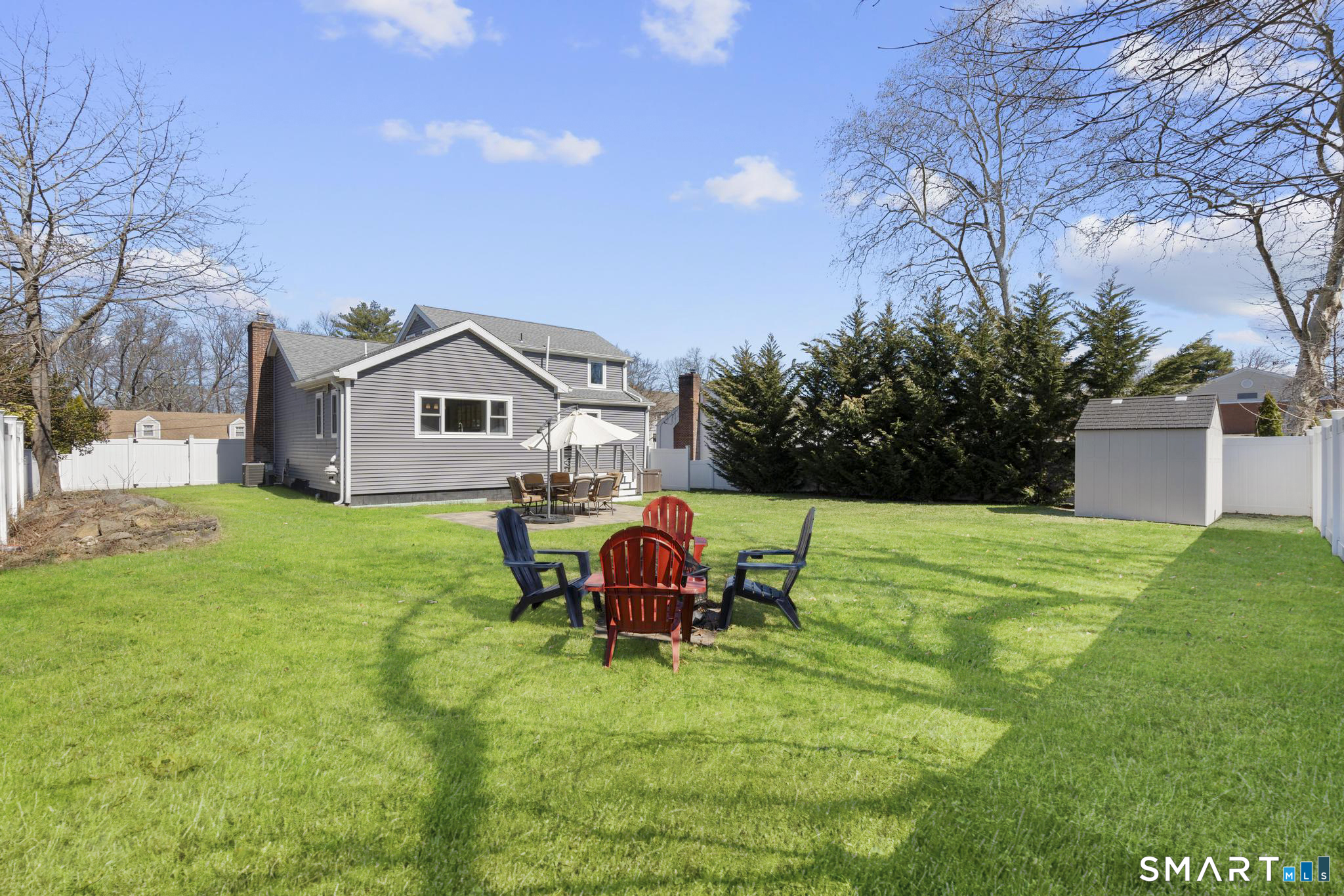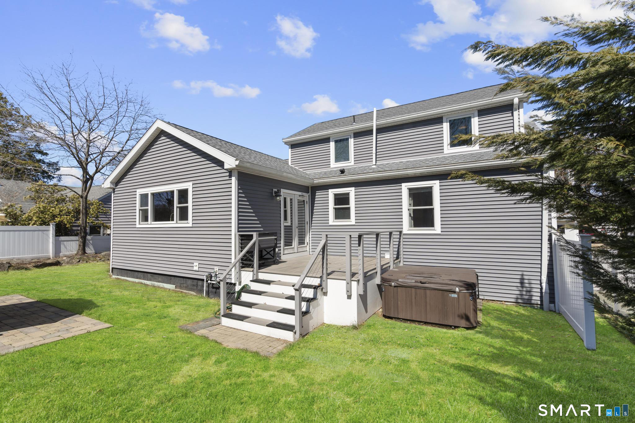 Nestled in Stamford's highly sought-after Waterside neighborhood, this beautifully reimagined 5BR 2.5BA Colonial seamlessly blends timeless charm with sophisticated modern living. The sun-filled main level welcomes you with an expansive living room centered around a stylish fireplace and oversized picture windows, flowing effortlessly into the dining area and stunning state-of-the-art gourmet kitchen featuring custom white shaker cabinetry, premium stainless steel appliances, designer tile backsplash, granite countertops, and an oversized center island perfect for entertaining. Sliders lead directly to a spacious rear deck overlooking the private fenced yard, creating seamless indoor-outdoor living. This level is rounded out by a beautifully renovated full bath, spacious primary bedroom, and two additional well-proportioned bedrooms, all complemented by hardwood floors and refined finishes throughout. The upper level offers exceptional flexibility with two additional bedrooms and a full bath set apart enough to function as an ideal in-law suite, guest quarters, or private home office retreat. The fully finished lower level provides additional living space perfect for a family room, media room or gym. Outside, enjoy a large level fenced yard complete with deck, hot tub, firepit area, and storage shed, ideal for relaxing or entertaining. Perfectly positioned just moments from Stamford's waterfront, beaches, parks, Metro-North, and vibrant downtown dining and nightlife!