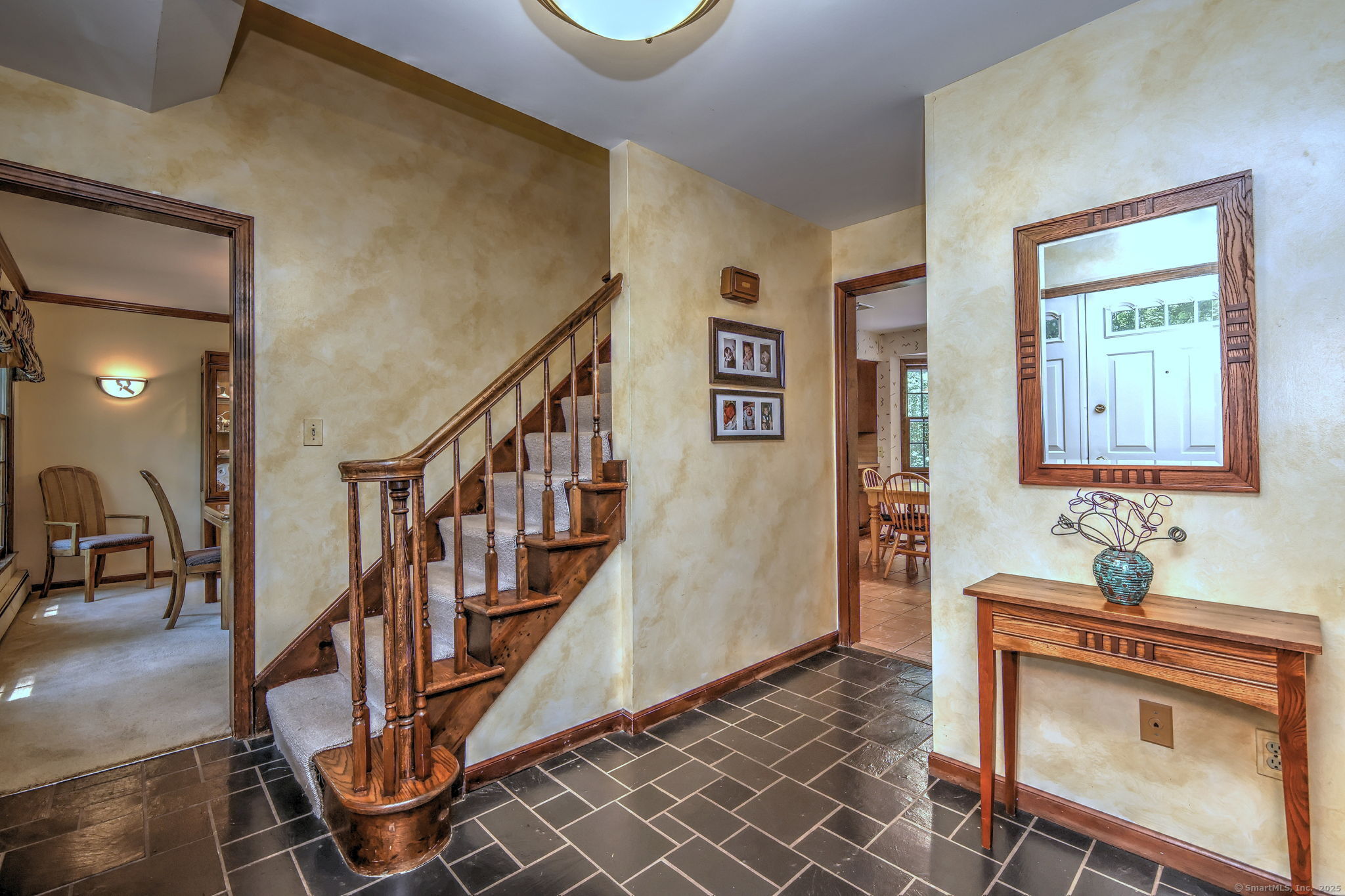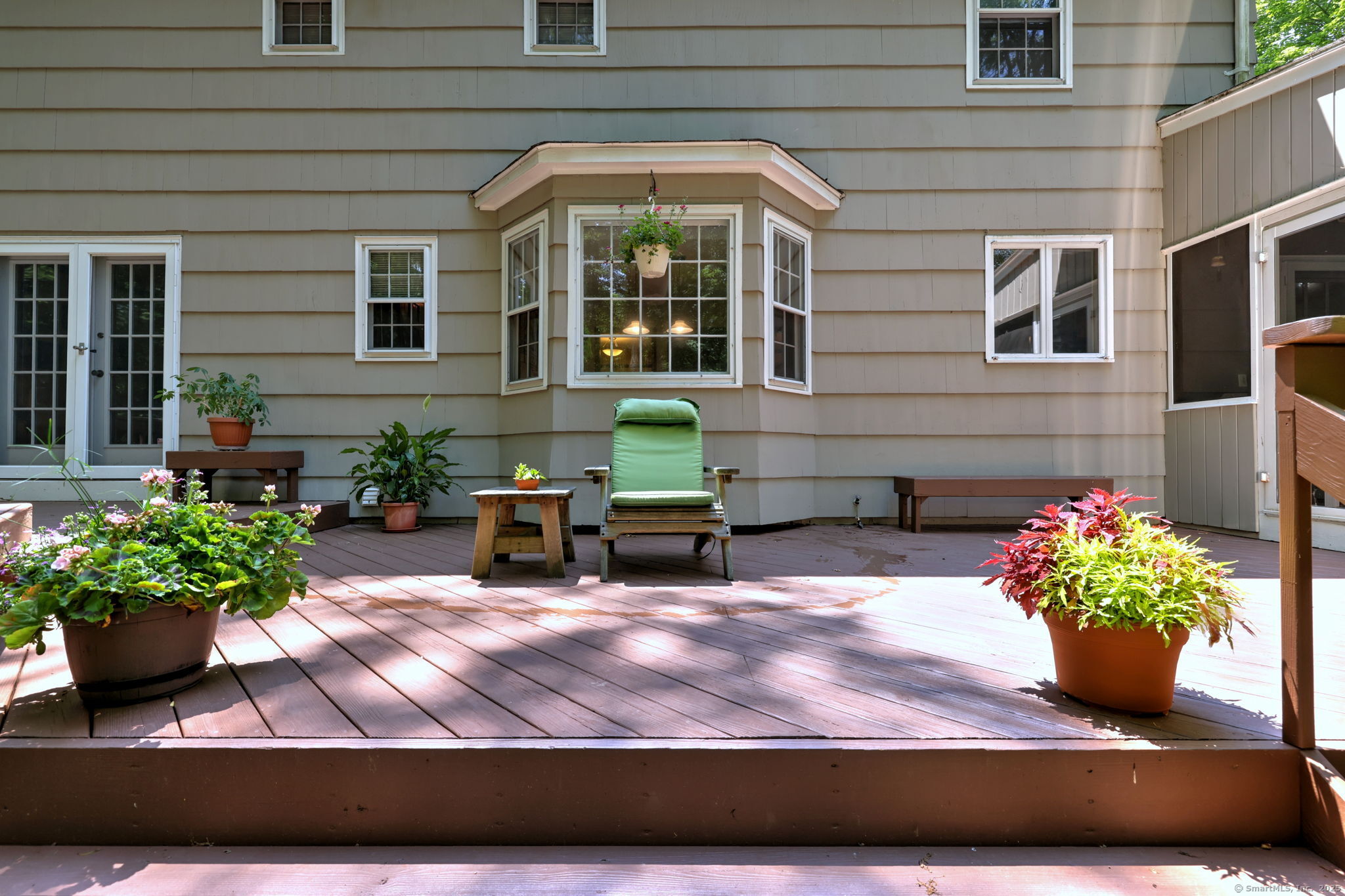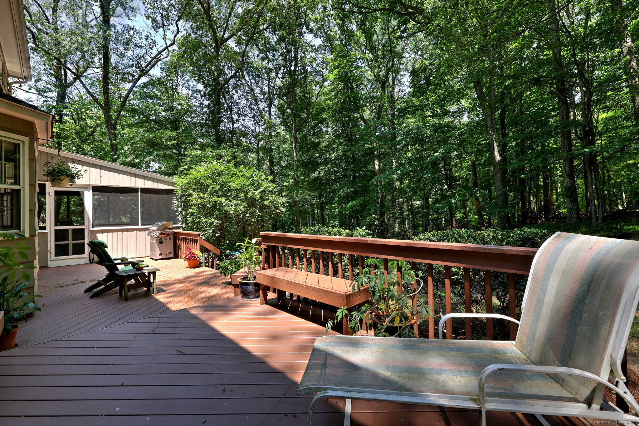 Tucked on a quiet cul de sac street this home offers a blend of comfort and lifestyle. Large kitchen with ample cabinetry and a dining area. Living room with fireplace and formal dining room. Family room with vaulted ceilings and a fireplace that adds warmth on cozy winter nights. Just off the family room is the fabulous screened porch and 2-level deck which is perfect for morning coffee or relaxing at night. Second level offers 4 bedrooms including primary bedreoom with an en suite bath. Finished lower level expands your living space by approx. 660 feet and can accommodate a home gym, office, or whatever your heart desires. Conveniently located near major roads and Town Park which includes, pool, lake, tennis and more.