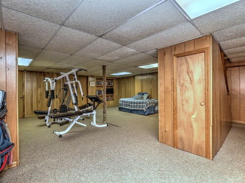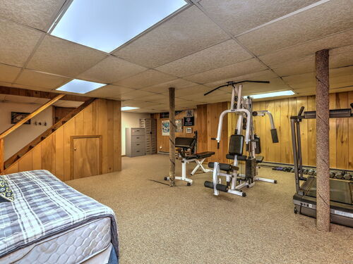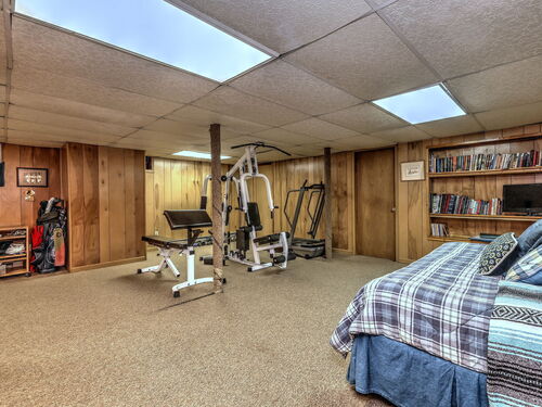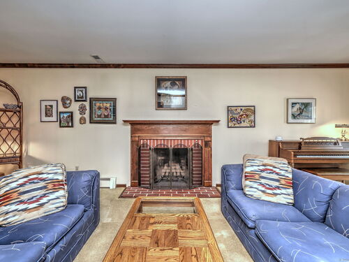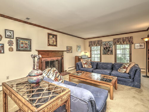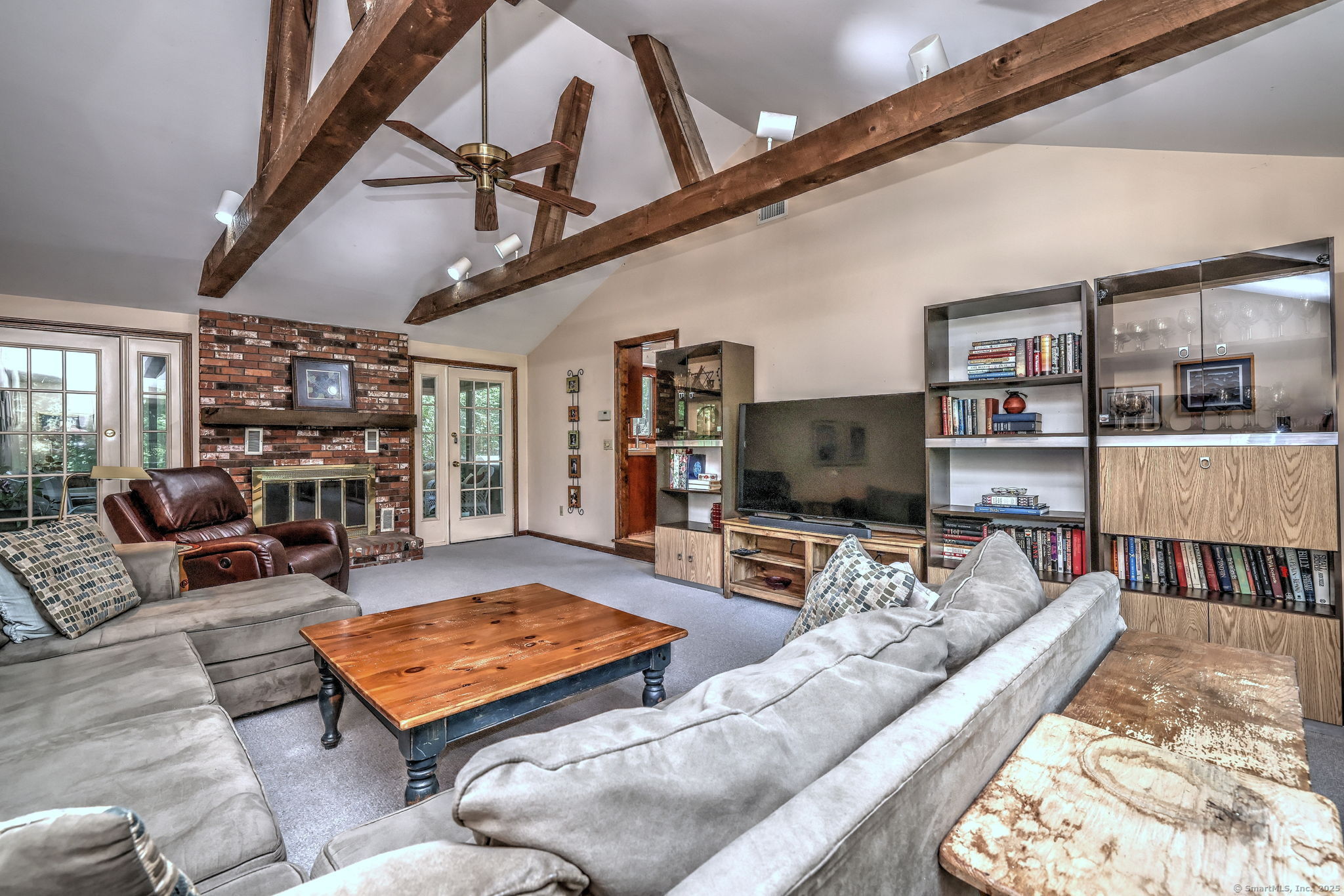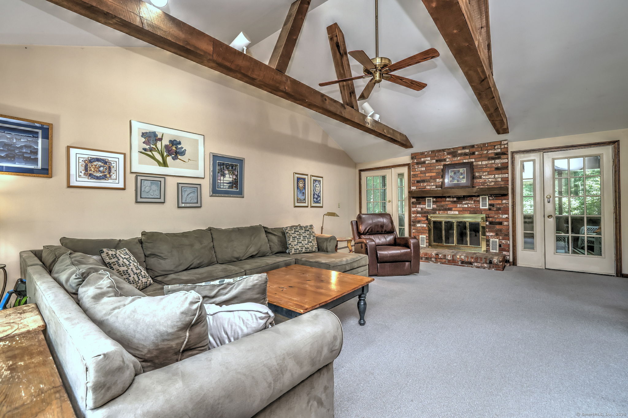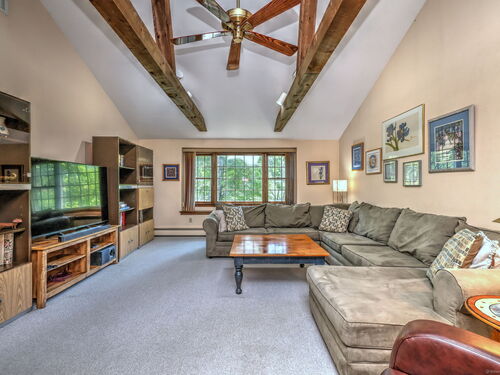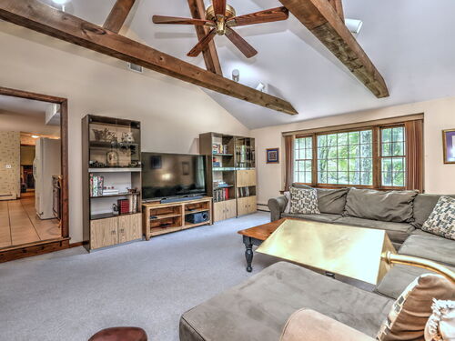 Vaulted Ceiling, Beams, Ceiling Fan, Fireplace, Wall/Wall Carpet