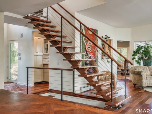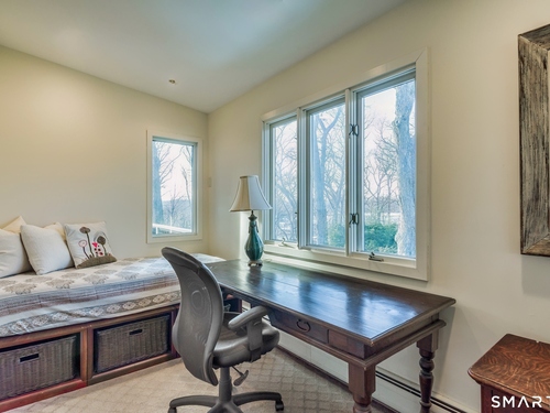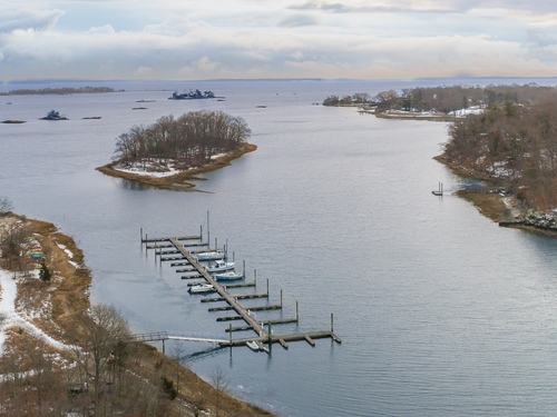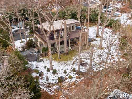 Fairfield County's Gold Coast best-kept secret. Located in the historic, mid-century enclave of Village Creek, this refined waterfront residence captures sweeping views of a protected 100-acre estuary. Owners enjoy an unparalleled array of private community amenities-including a private sandy beach, tennis courts, deep-water marina, paddle-craft storage, dog park, playground, and athletic field. Within the sought-after Rowayton school district and minutes from Metro-North and SONO's premier dining and shops. Soaring floor-to-ceiling windows frame panoramic coastal vistas and professionally landscaped mature gardens. The open living, dining, and kitchen areas flow seamlessly to multiple terraces including a secluded hot tub overlooking Long Island Sound. In addition, the main level features two bedrooms, two baths, and a family room. A sculptural open staircase leads to the expansive primary suite above -- two offices, dual walk-in closets, a marble steam bath, and a washer/dryer. A wrap-around deck with unobstructed vistas completes the ideal blend of work-from-home convenience with the comfort of a coastal retreat. The lower ground level features a 560 sq ft zoning-compliant accessory dwelling unit (ADU) with W/D, private entrance and parking-ideal for $2,000+/monthly rental income, guests, extended family, or a live-in nanny.