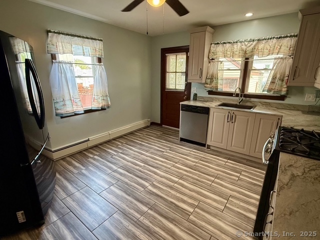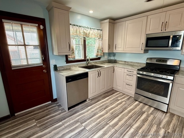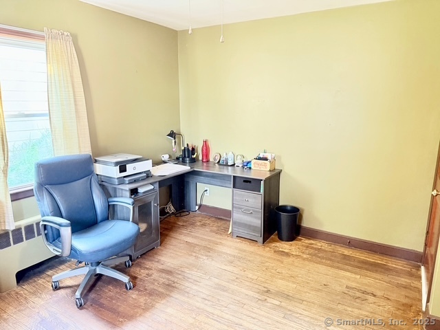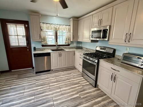 Welcome to your new home in this charming North End neighborhood! This spacious 3-4 bedroom, 1.5 bathroom house boasts a detached garage and a convenient location near Trumbull Mall, I-95, Merritt Parkway, and Rt 8. Upon entering, you'll be greeted by the front foyer, leading to the spacious living room with hardwood floors and a cozy wood-burning fireplace. The living room can easily accommodate a dining area, making it perfect for entertaining. To the left, there's an additional room that could be used as a fourth bedroom or a dining room, providing extra space for your growing family. The kitchen has undergone a modern remodel, featuring grey cabinets and is fully appliances. The main floor offers a bedroom with a view of the backyard and a full bathroom. The second floor provides two more spacious bedrooms with hardwood floors and ample closet space. The lower level of the house is currently unfinished but offers plenty of storage space and a laundry room. Additional features include a front and rear porch, a one-car detached garage, a paved driveway, and a level yard. Enjoy your new home in this prime location, offering easy access to all the amenities and attractions Fairfield County has to offer.