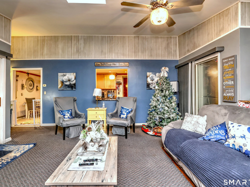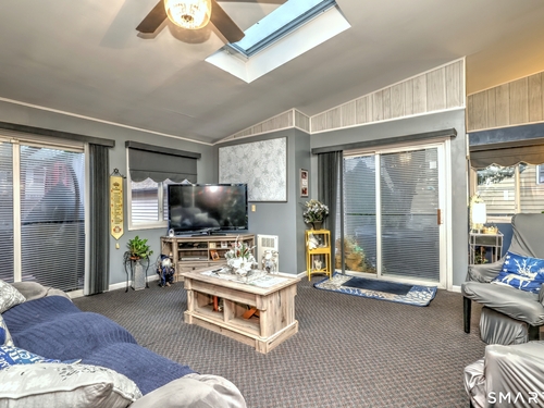 Skylight, Vaulted Ceiling, Sliders, Wall/Wall Carpet