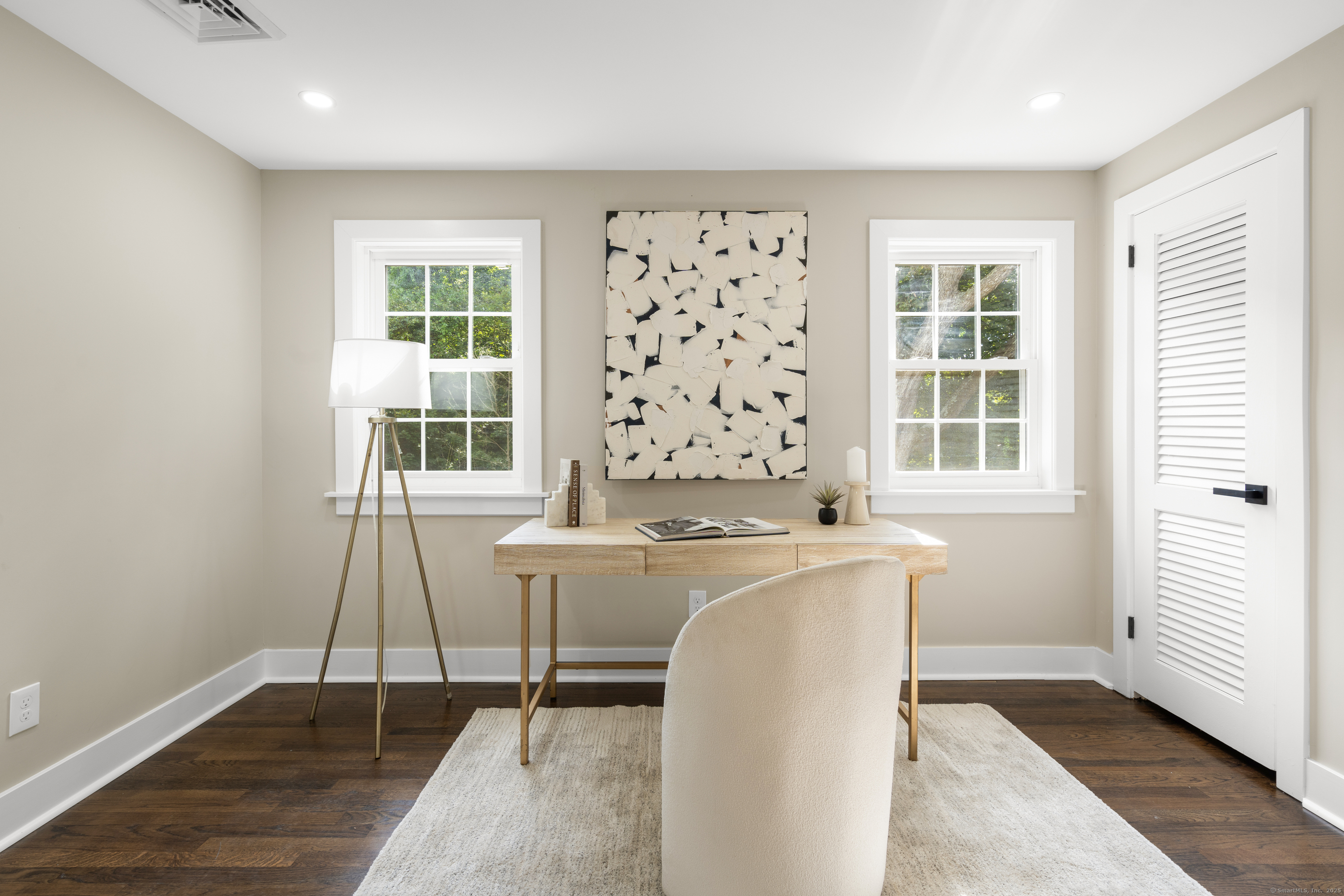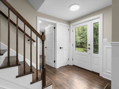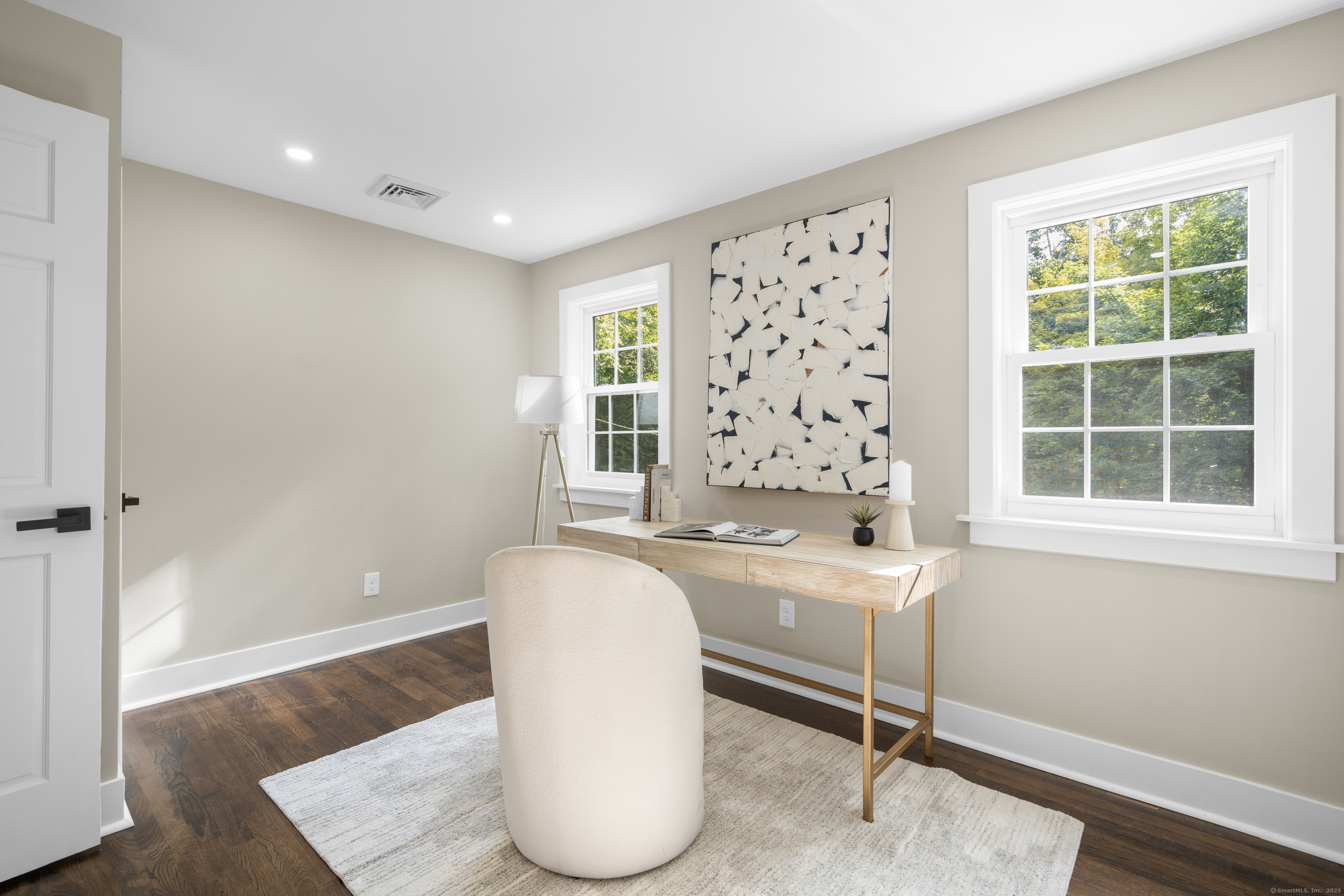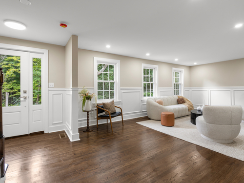 Step into this reimagined colonial, effectively built in 2025, where timeless design meets modern living. Sited on two private acres at the corner of a quiet lane, the home enjoys an open backyard, exceptional privacy, and an abundance of natural light throughout. The first floor is defined by hardwood floors and expansive windows that open to a chef's kitchen appointed with a GE Cafe 48" refrigerator and a professional 48" Thermador range. A formal dining room and powder room add both function and elegance to the main level, creating a space equally suited for daily living and entertaining. Upstairs, four bedrooms include a serene primary suite with a newly finished en suite bath, designed with clean lines and contemporary fixtures. Every major element of this home has been fully renewed: a new roof with 30-year Timberline shingles, Hardie Board siding, updated 200-amp electrical service, and a complete HVAC system featuring dual air handlers and compressors. Additional enhancements include new garage doors, a modern Hunter irrigation system, a new well pump, and a newly installed septic system-ensuring both convenience and peace of mind. More than a renovation, this is a complete reinvention of a classic colonial, offering the craftsmanship and security of new construction in a timeless design, along with a rare opportunity to own a home that truly lives like new on two acres.