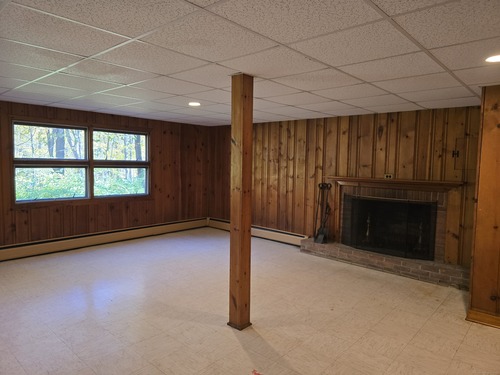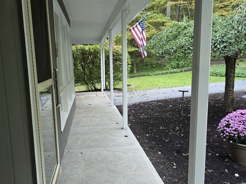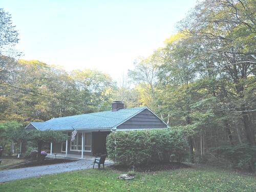 This mid-century modern ranch, situated in a highly desirable area of Sandy Hook, boasts a renovated kitchen equipped with stainless steel appliances, an updated bathroom, two fireplaces and three bedrooms. The open floor plan includes floor to ceiling windows in the living room combination dining room with a fireplace.. The large finished walk-out lower-level family room features another fireplace, tongue-and-grooved panel walls, and a spacious area. Additionally, an unfinished space exists that can be transformed into additional living space, a bedroom, bathroom, office, or any other desired use. The property also includes a private yard adjacent to several acres of town preserved land, a carport with storage shed, and a septic system rebuilt in 2012. The property's convenient location facilitates access to schools K-12, shopping, easy commuting, restaurants, a theater hosting cultural events, Sandy Hook Center, and Newtown's Historic Main Street. Cameras in use.