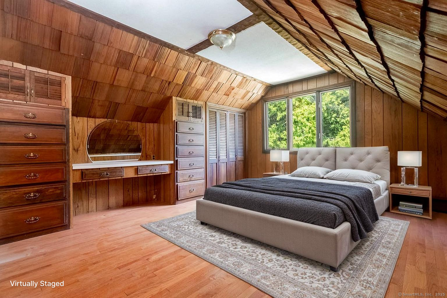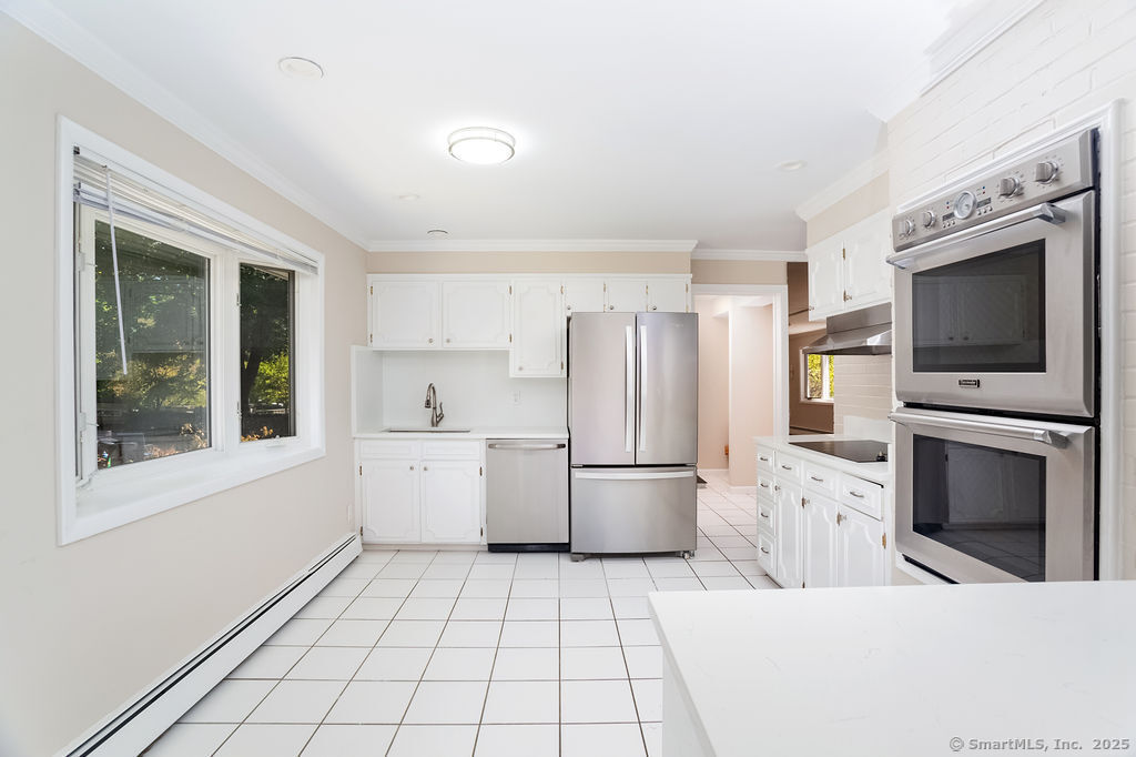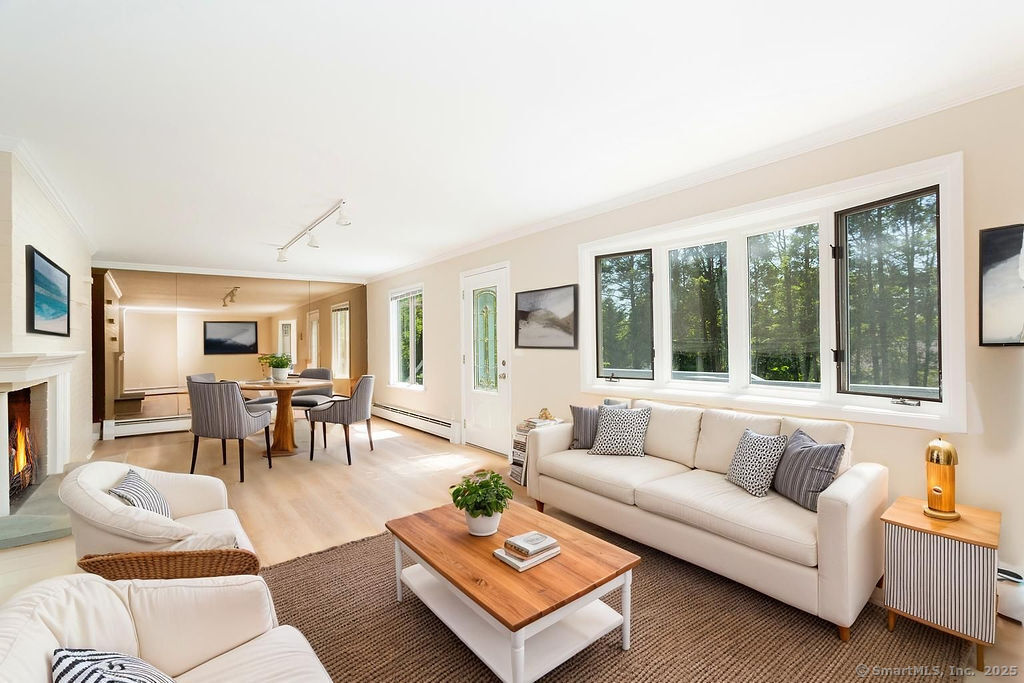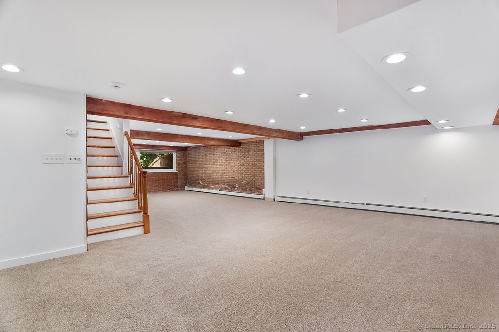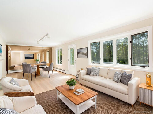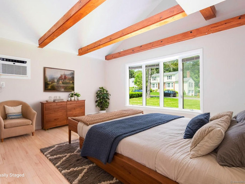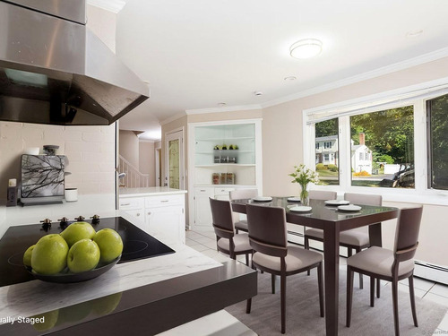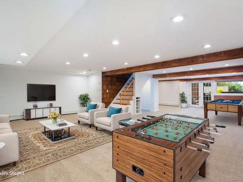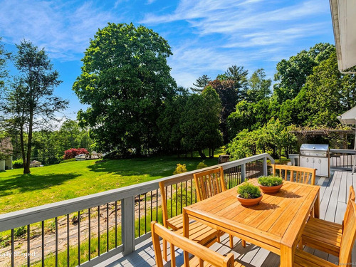 Welcome to this inviting 5-bedroom, 4.5-bathroom Custom Cape Cod-style home, offering ample space for everyone in your family! The main level is designed with a modern kitchen that features stainless steel appliances, including a double oven, and chic quartz countertops. The open-concept layout of the living and dining areas, complete with a shared wood-burning fireplace, makes it perfect for entertaining guests. From here, you can step out onto the spacious deck that overlooks the picturesque backyard. Above the 2-car garage, discover one of the five bedrooms, which can be used as a primary suite with its own full bath or as a private area for a teenager. This room is also ideal for accommodating an au pair or nanny. On the main level, there are two more bedrooms-one with a vaulted ceiling, full bath, and a generous walk-in closet, and another large bedroom located at the rear of the house. A hall full bath is also available on this level. The second staircase leads to the upper level, where two additional bedrooms await. One bedroom features parquet flooring and built-in storage, while the other offers ample space along with its own full bathroom, providing an alternative option for a primary suite. The fully finished lower level features neutral carpeting, a wet bar, a powder room, access to the mechanical room, and sliders that open to the rear patio with a hot tub-perfect for relaxation. The oversized garage is spacious enough for storage or for parking a large SUV!