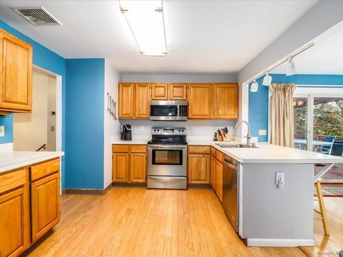 Welcome Home to 33 Green Pasture Road. This beautiful three bedroom Raised Ranch with 1.5 baths is ready for you! This home has a spacious floor plan with lots of additional storage and also has Central Air! Many of the doors have been replaced. The Chimney Heights neighborhood is close to shopping, parks, restaurants and is convenient for commuting. Additional recent updates include a new roof installed in 2023. The open eat in kitchen flows to Sliders to a nice size Pergola on the Deck overlooking a level Yard with Mature Trees, and so much more. Generous size lower level with wall to wall carpeting and 1/2 Bath and Laundry Area and a two car garage! Great for entertaining.