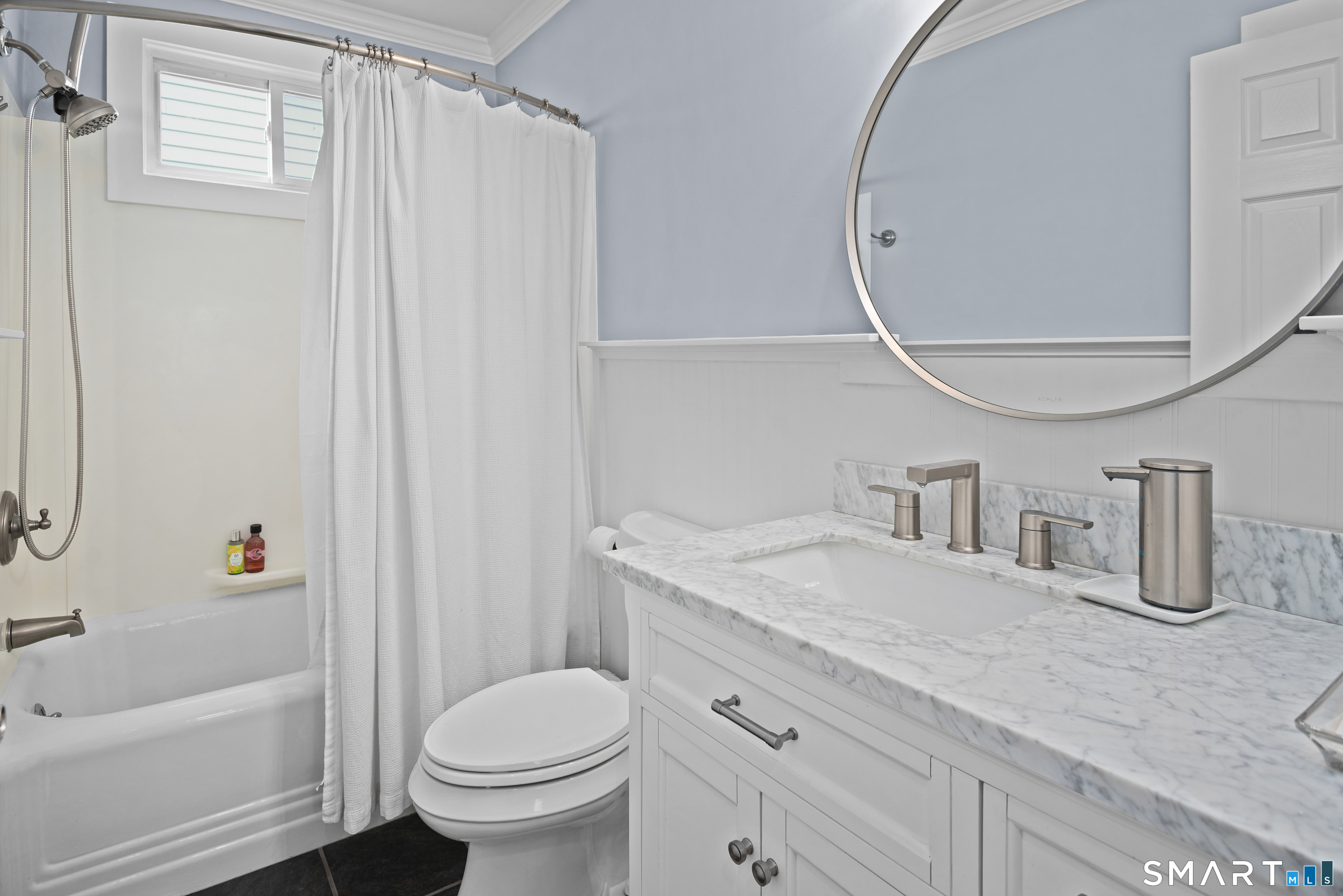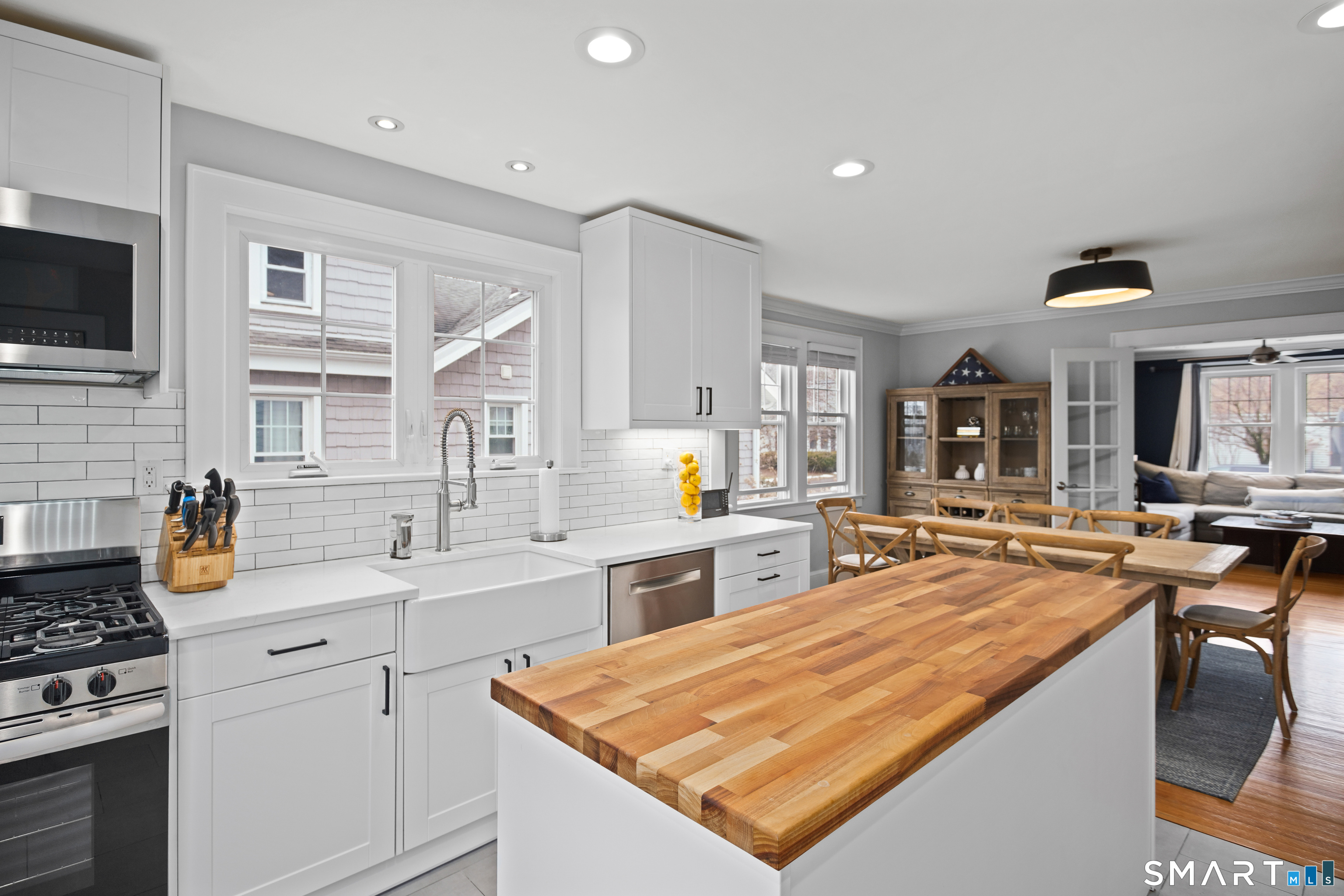 Located in highly desirable East Norwalk, this beautifully updated Colonial offers the perfect blend of charm, modern upgrades, and commuter convenience. A bright & inviting entryway welcomes you into a warm & comfortable living room with wood-burning fireplace that flows seamlessly into the spacious eat-in kitchen, creating an open & inviting layout for living & entertaining. The Fully Remodeled Kitchen (Spring 2025) feat. new tile flooring, quartz countertops, & new appliances. Enjoy Outdoor dining on the new Trex Deck. 1st-floor BR & full bath provide excellent flexibility for guests, extended family, or a home office. A major 2nd-floor addition brought significant upgrades including Hardie Plank siding, a new roof, central air, and an updated HVAC system. The spacious primary suite feat. built-in speakers, a walk-in closet, & a luxurious bath with double vanity, soaking tub, & separate shower. 2 additional bedrooms share a full bath and are conveniently located near the upstairs laundry, washer/dryer included! Completed in March 2026, the new 3rd-floor bonus room adds valuable flexible living space, perfect for a playroom, gym, or additional office. The Lower Level inc. a home office & workshop/storage area. A generator (and hook up) also included. 5-minute walk to the E. Norwalk train, this home is ideal for commuters. Enjoy being just 1.5 miles from Calf Pasture Beach & close to parks, historic SoNo, & more!