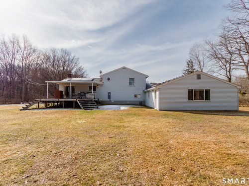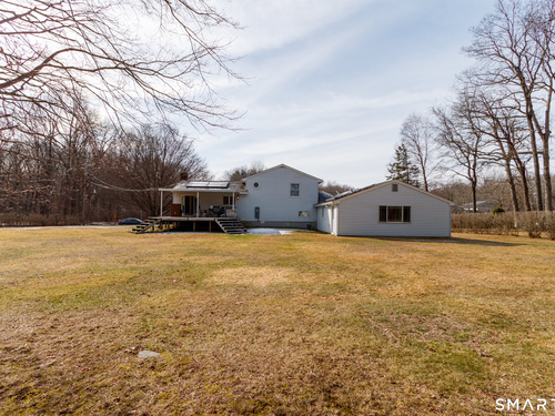 Set on 1.26 acres in a convenient central Monroe location, this 2,120 sq ft Split Level home with In-law apartment offers a spacious layout and excellent potential for the next owner to update and make it their own. The main living area features an open floor plan with cathedral ceilings, recessed lighting, and a bay window in the living room that fills the space with natural light. A fireplace anchors the living room and can be enjoyed from the adjoining kitchen and dining area. The dining room includes a slider to a large deck overlooking the backyard, providing great indoor-outdoor flow. Just a few steps up are 3 bedrooms, including a primary bedroom with direct access to the full bath, which also serves the other bedrooms. A few steps down from the main living area is the family room with tile flooring and a half bath, the laundry closet and access to the in-law apartment with its own living room, eat-in kitchen, bedroom, and full bathroom, offering flexible living arrangements for extended family or guests. Additional features include a solar system to offset heating costs, a 2-car attached garage, and a garden storage shed with overhead door, ideal for lawn equipment. With a desirable location, generous living space, and flexible layout, this home presents a great opportunity for buyers looking to add their own updates and personal touches.