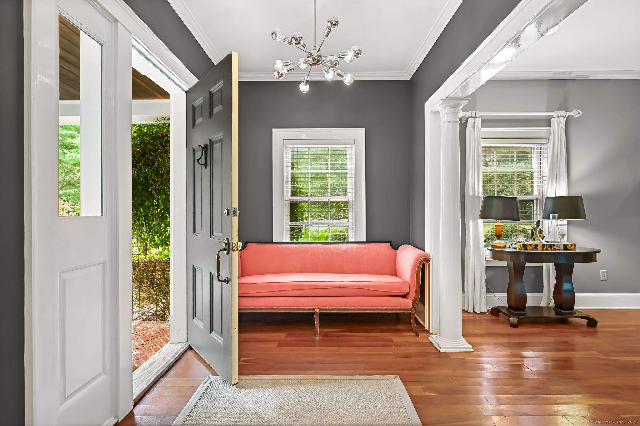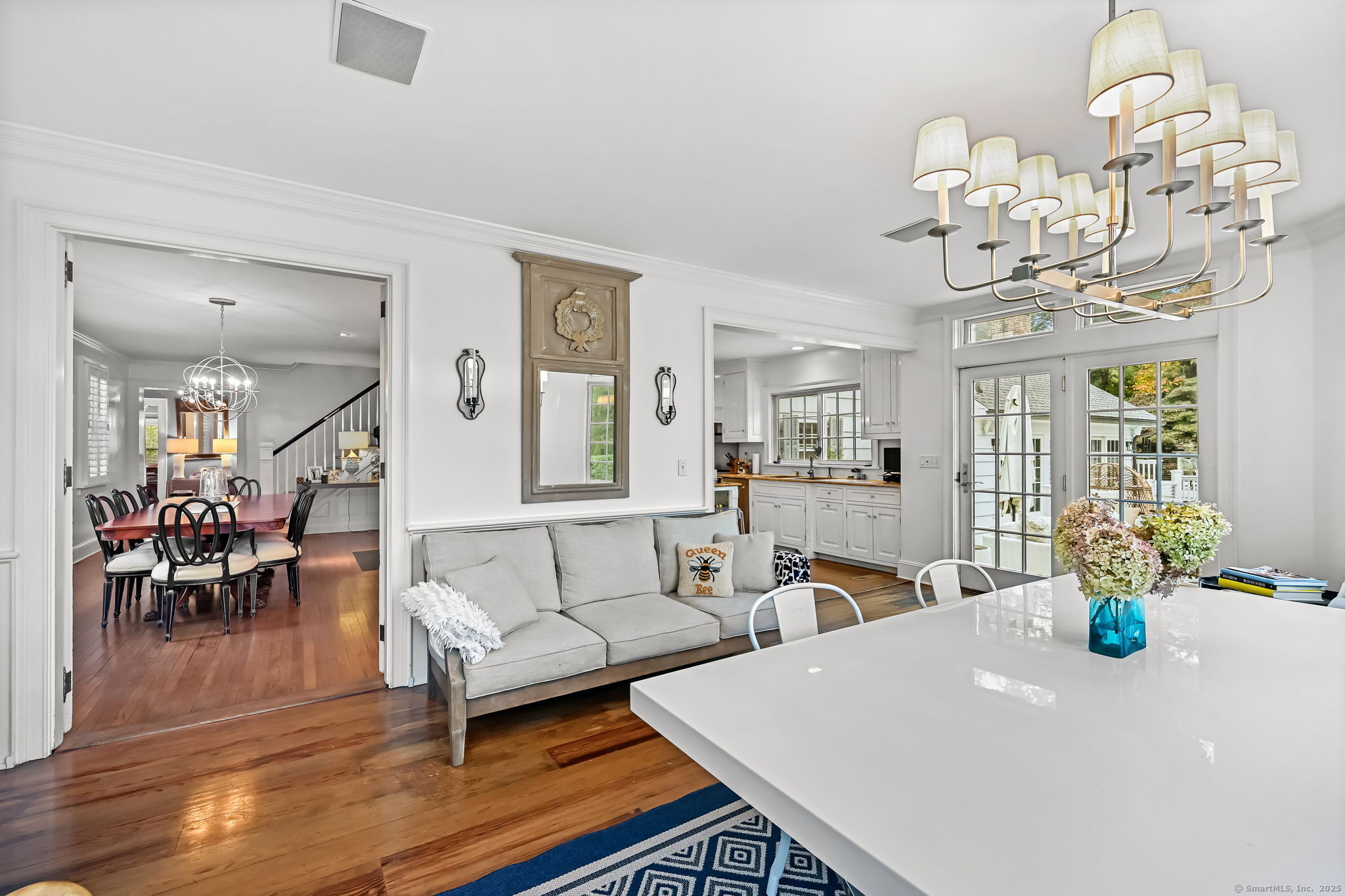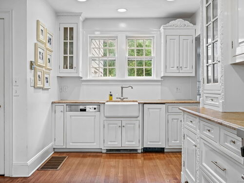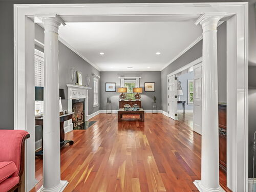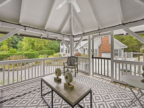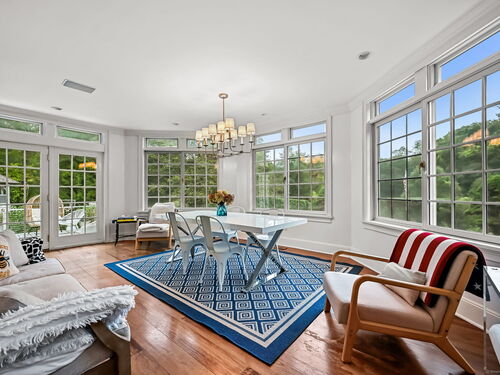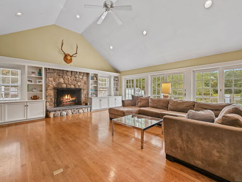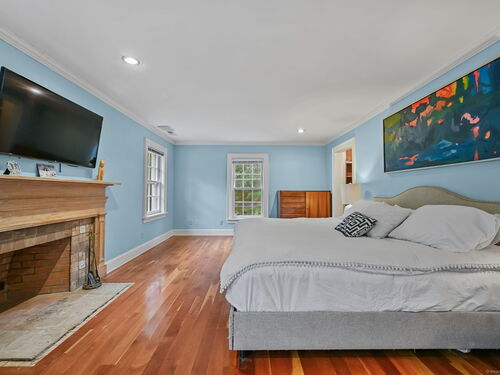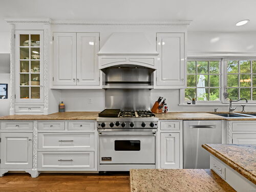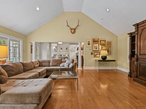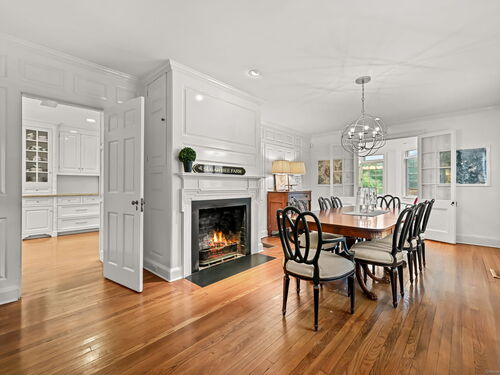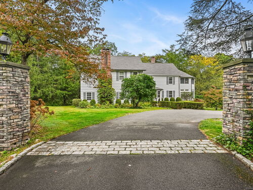 PRICED TO MOVE. Set along one of Fairfield County's most picturesque and prestigious roads, this vintage Wilton estate offers a rare blend of historic character and modern potential. Thoughtfully expanded and ready for a personal touch, the residence sits on 2.4 acres and is surrounded by 4.5 acres of conservation land, providing unmatched privacy and serenity just minutes from downtown Wilton and approximately one hour from New York City. Step inside to discover Brazilian Cherry wood floors throughout and custom built-in china cabinets that frame a wood-burning fireplace which is the centerpiece of the formal dining room. The heart of the home is a chef's dream kitchen that is fully equipped with a Sub Zero refrigerator, two ovens (1 Viking 6 burner gas range and a Bosch electric oven w/ warming drawer), two dishwashers (Bosch and Miele), 2 full sized sinks, ice maker and a marble island. All bathed in natural light from the adjacent dining area. The first floor also boasts a grand 42' x 25' billiards room, a formal living room and a casual dining area, offering ample space for entertaining and everyday living. Upstairs, the expansive primary suite includes a spa-inspired bath with a steam shower and Jacuzzi tub. Three additional bedrooms, a play/rec room and a guest suite provide flexibility for family and guests.