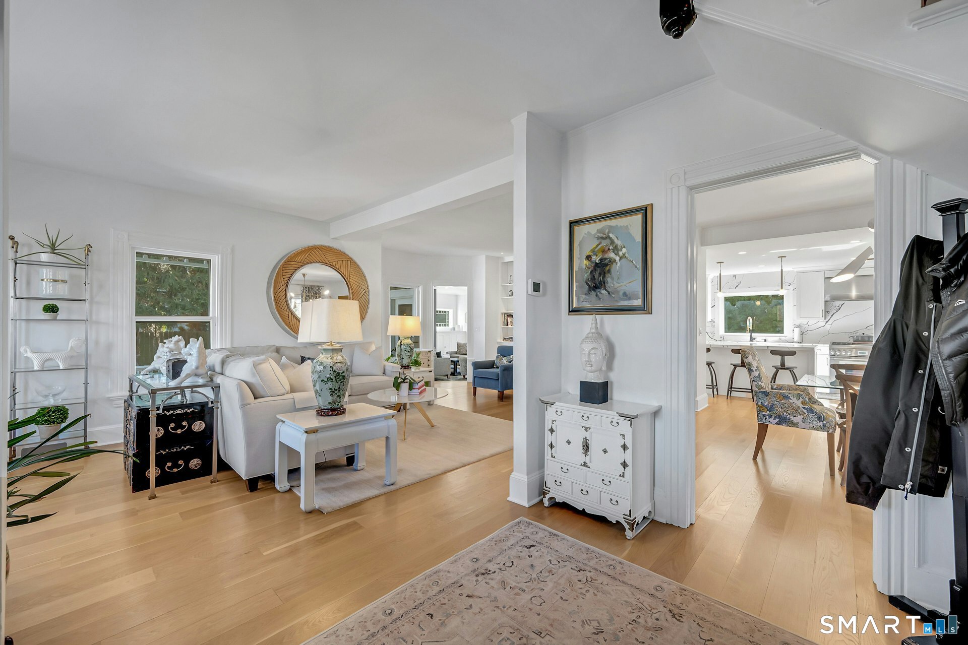 Ideally positioned in the heart of Old Greenwich, this charming residence offers an exceptional blend of timeless appeal, convenience, and coastal lifestyle. Set on .34 acres of beautifully level property, the home features 4 bedrooms and 2.1 baths, with all bedrooms thoughtfully situated on the second level, as well as a versatile bonus space on the third floor. A gracious front porch welcomes you into sun-drenched interiors designed for both comfortable everyday living and effortless entertaining. The expansive, level backyard provides a rare and inviting outdoor setting perfect for gatherings. Complete with a 2 car detached garage and located just moments from town, train, and Tod's Point beach, this home presents a wonderful opportunity to enjoy the very best of Old Greenwich living.