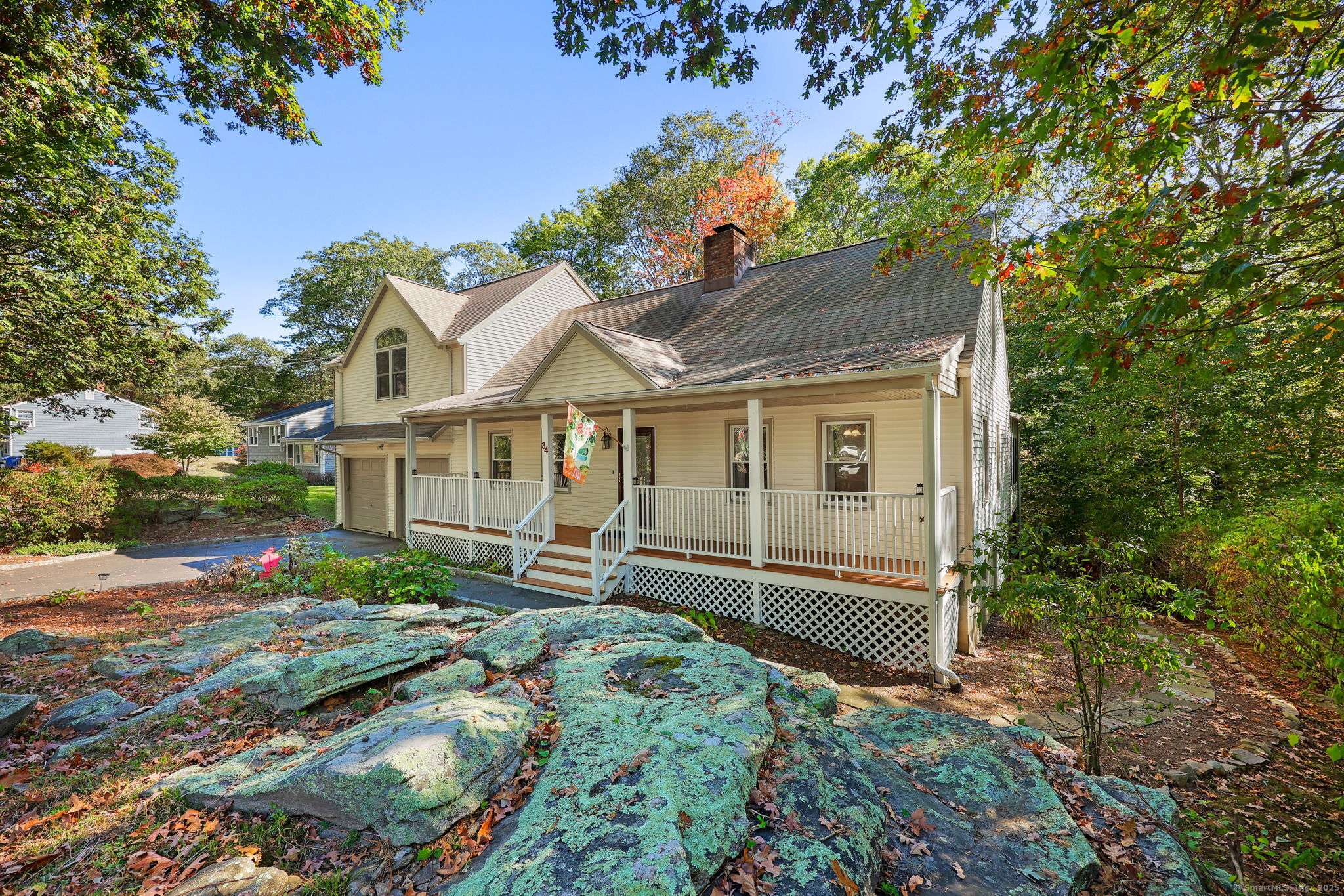 Now priced at $615,000 - one of the best values in Monroe! 1987 Colonial offers 4 bedrooms, 4 full baths, in-law option, and 2 car garage. Cozy up by the wood-burning fireplace, cook your favorites in a granite-and-stainless kitchen, or sip your morning coffee in the 4-season sunroom overlooking the wooded backyard. In the evenings, unwind on the beautiful front porch. The main level includes a living room, formal dining room, eat-in kitchen, sunroom, plus spacious bedroom and full bath - offering flexibility for guests, work-from-home, or private living space. Upstairs, you'll find two large bedrooms, a full bath, and a primary suite you'll fall in love with - complete with a walk-in closet and oversized bath. Basement is fully finished with family room, 2 sets of sliding doors with walk-out to private patio, along with a kitchenette and bath, providing a perfect in-law option. One more thoughtful touch: the whole-house point-of-contact filtration system means every faucet delivers fresh, filtered water. Set on an easy-to-maintain .52-acre lot, this home is all about living comfortably - with plenty of room to grow, gather, and make memories. And when you're ready to explore, you'll love being close to farms, the scenic state parks, charming local creameries, Silverman's Farm, Aquila's Nest Vineyards, and Ct's #1 Farmers Market. See attached list of improvements.