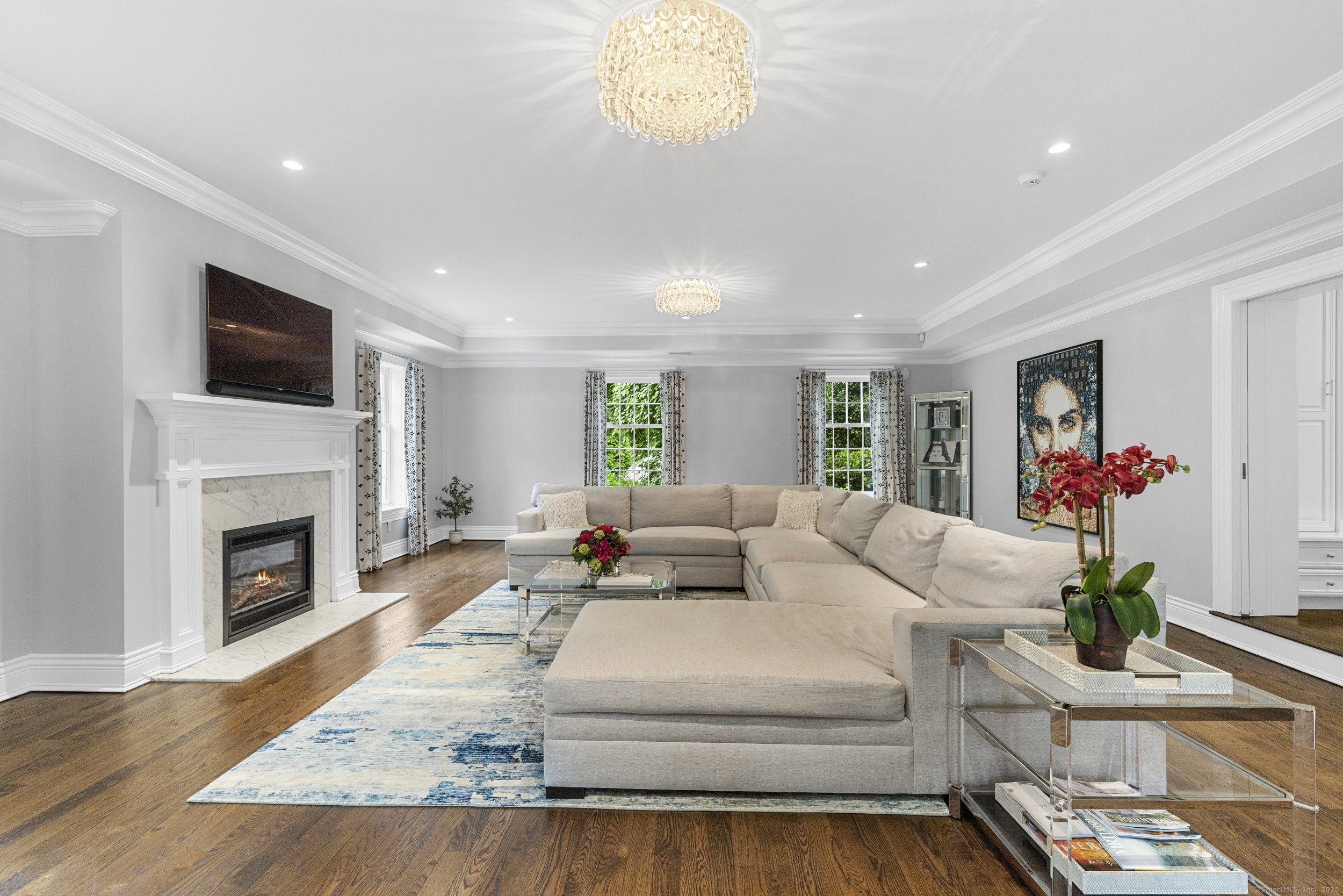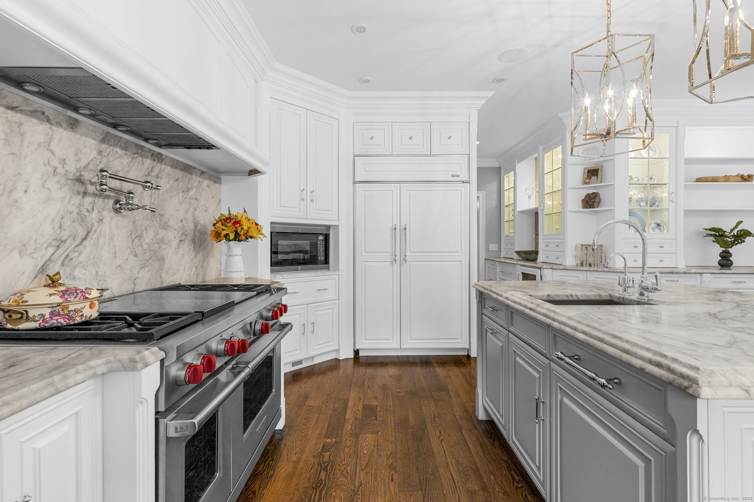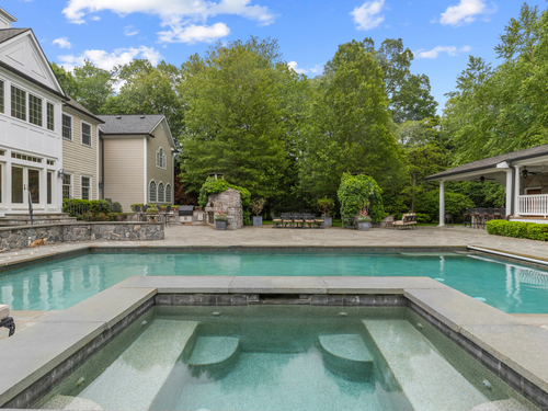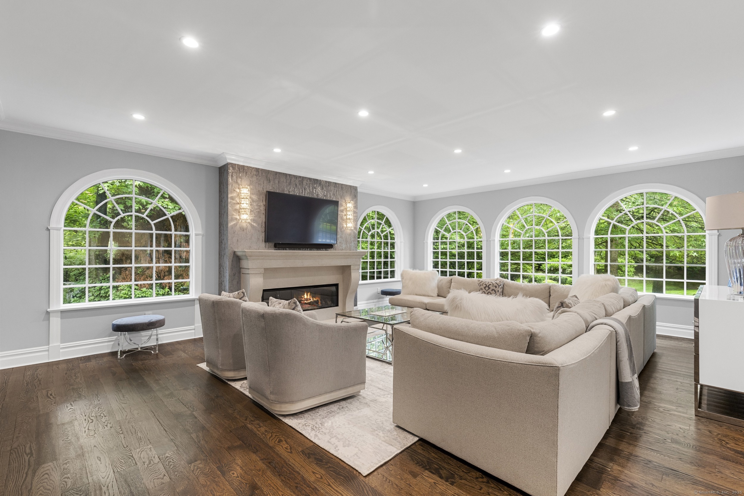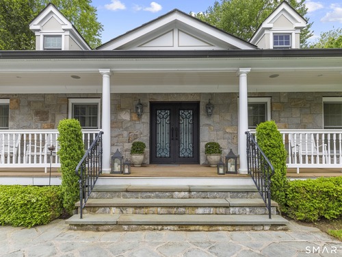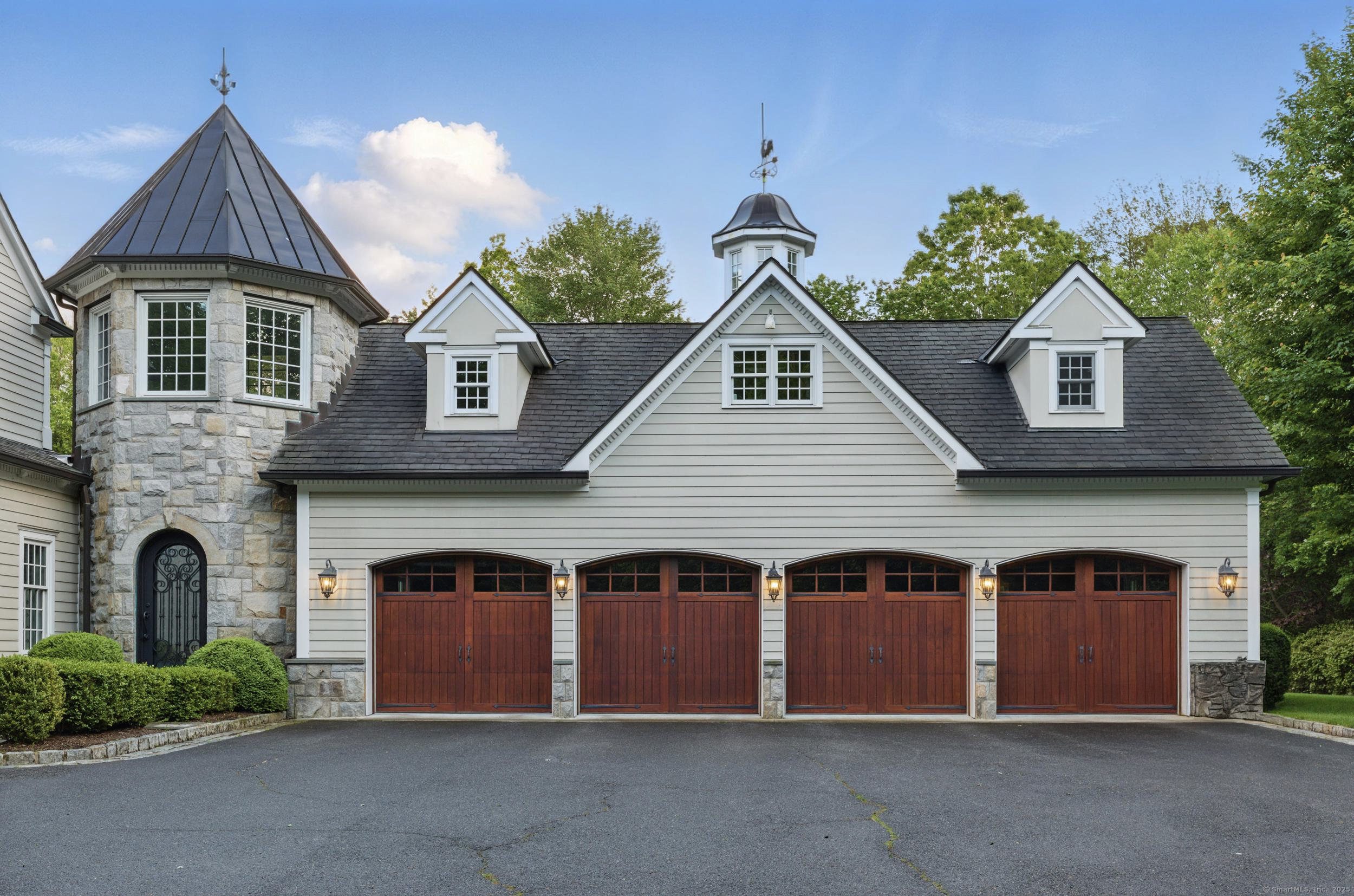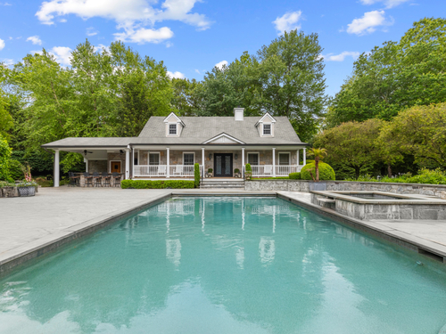 A rare offering in back-country Greenwich, this timeless estate is set on 3.58 exquisitely landscaped and gated acres, masterfully blending classic architecture with contemporary luxury. Designed for both grand-scale entertaining and intimate everyday living, the residence offers a sun-filled interior with soaring ceilings, custom millwork, and modern, bespoke finishes throughout. The grand foyer of this center hall colonial sets the tone for elegant, refined living. The gourmet marble kitchen opens to a multi-exposure family room with sweeping views of the manicured yard, pool, and fully equipped outdoor kitchen. The grounds are equally captivating, with a tranquil koi pond enhancing the natural beauty of the landscape. The luxurious primary suite with sitting area, spa-inspired bath, and three walk-in closets is among five second-level bedroom suites, each offering exceptional privacy and comfort. A versatile second-level suite with private entrance currently functions as a private gym but can effortlessly serve as an au pair suite or guest quarters. The thoughtfully executed lower level is fit with a theater, bar, wine cellar, and recreation spaces. The pool house extends the living experience with two additional bedrooms and two full baths-set amidst expansive patios and a lush, tree-lined lawn. Located just minutes from town, schools, and 45 minutes to Manhattan, this meticulously designed compound offers a rare blend of serenity, sophistication, and convenience.