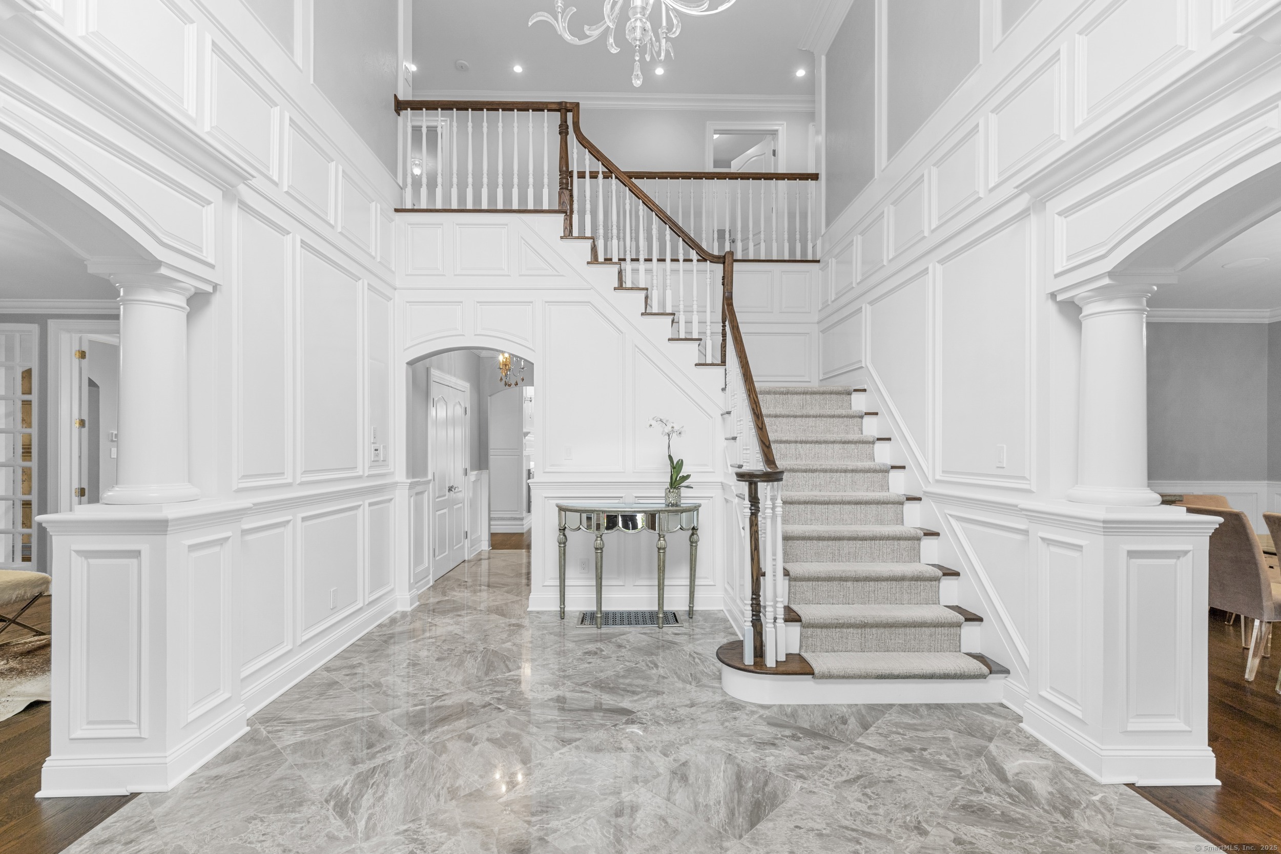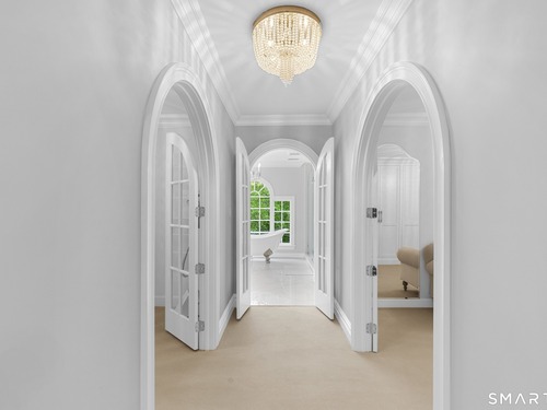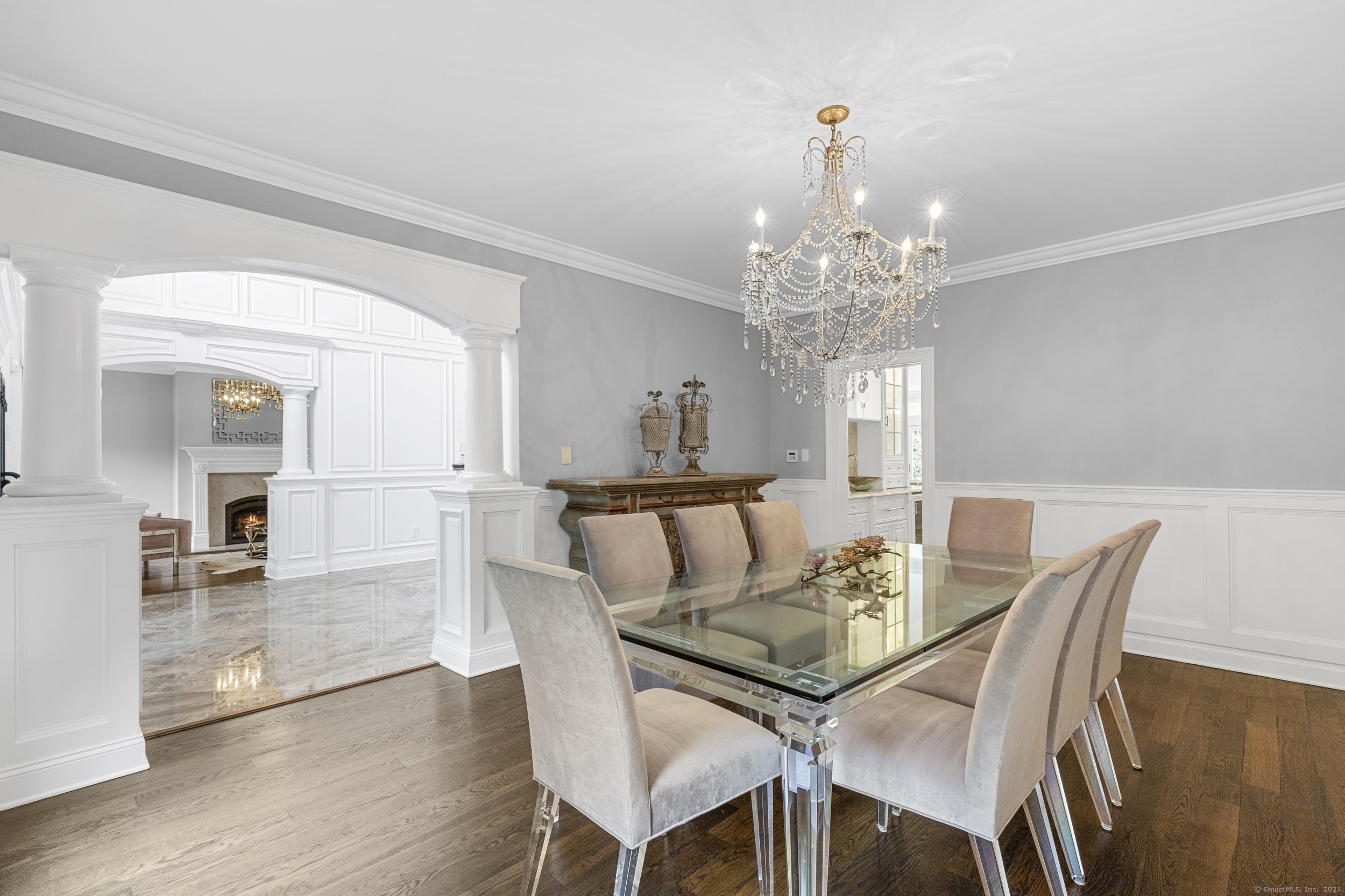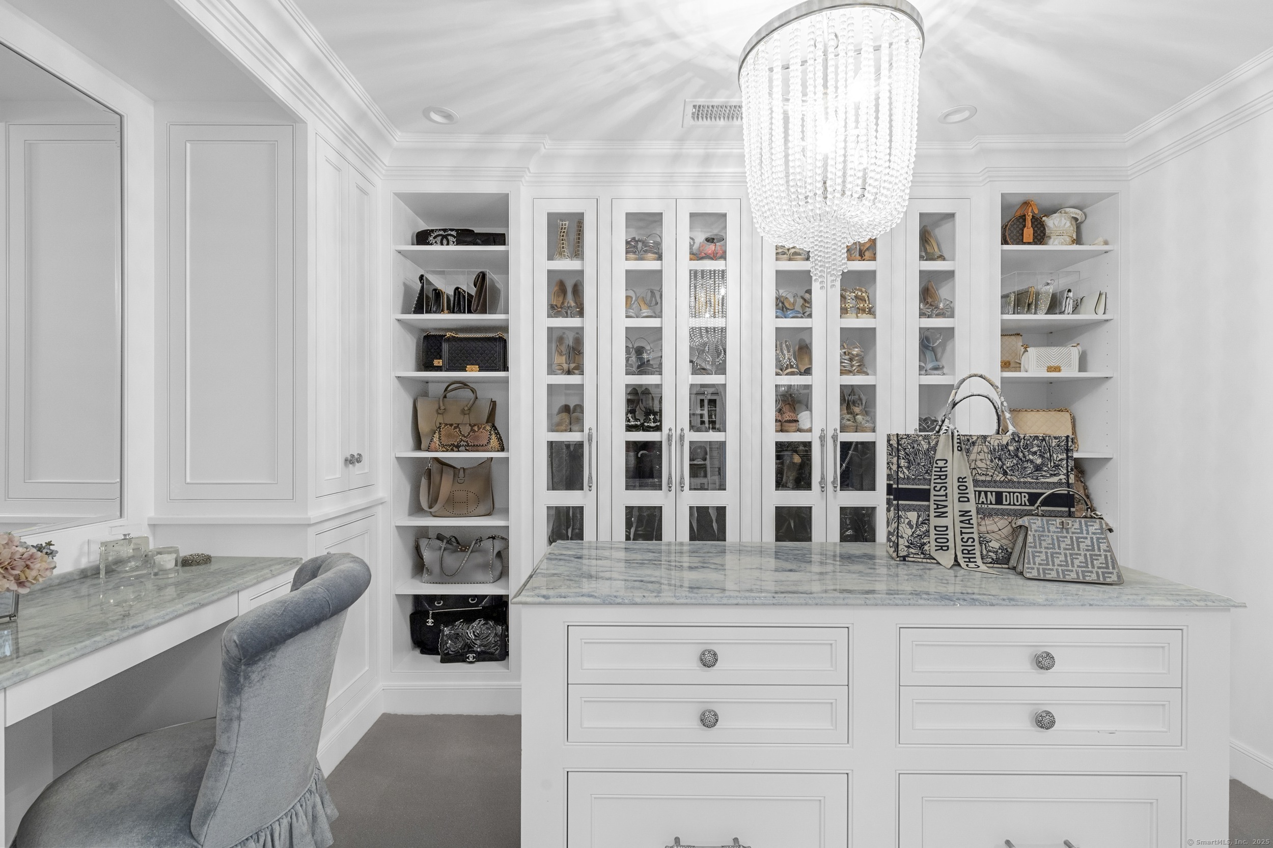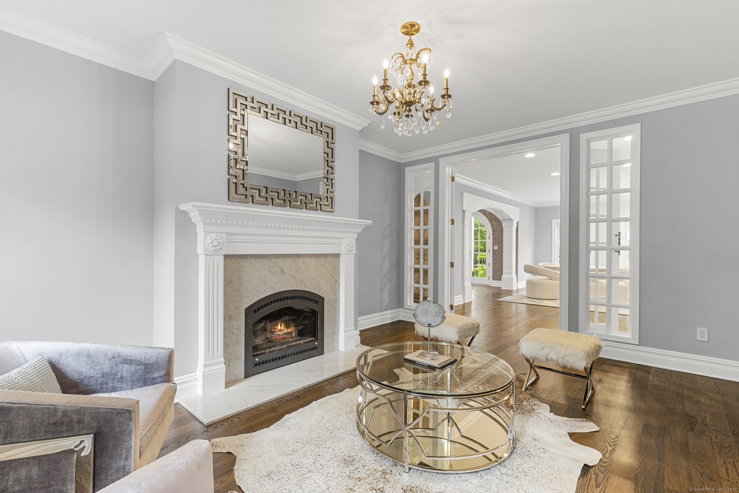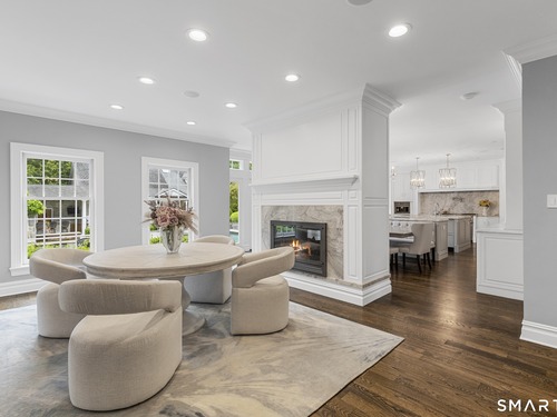 A rare offering in back-country Greenwich, this timeless estate is set on 3.58 exquisitely landscaped and gated acres, masterfully blending classic architecture with contemporary luxury. Designed for both grand-scale entertaining and intimate everyday living, the residence offers a sun-filled interior with soaring ceilings, custom millwork, and modern, bespoke finishes throughout. The grand foyer of this center hall colonial sets the tone for elegant, refined living. The gourmet marble kitchen opens to a multi-exposure family room with sweeping views of the manicured yard, pool, and fully equipped outdoor kitchen. The grounds are equally captivating, with a tranquil koi pond enhancing the natural beauty of the landscape. The luxurious primary suite with sitting area, spa-inspired bath, and three walk-in closets is among five second-level bedroom suites, each offering exceptional privacy and comfort. A versatile second-level suite with private entrance currently functions as a private gym but can effortlessly serve as an au pair suite or guest quarters. The thoughtfully executed lower level is fit with a theater, bar, wine cellar, and recreation spaces. The pool house extends the living experience with two additional bedrooms and two full baths-set amidst expansive patios and a lush, tree-lined lawn. Located just minutes from town, schools, and 45 minutes to Manhattan, this meticulously designed compound offers a rare blend of serenity, sophistication, and convenience.