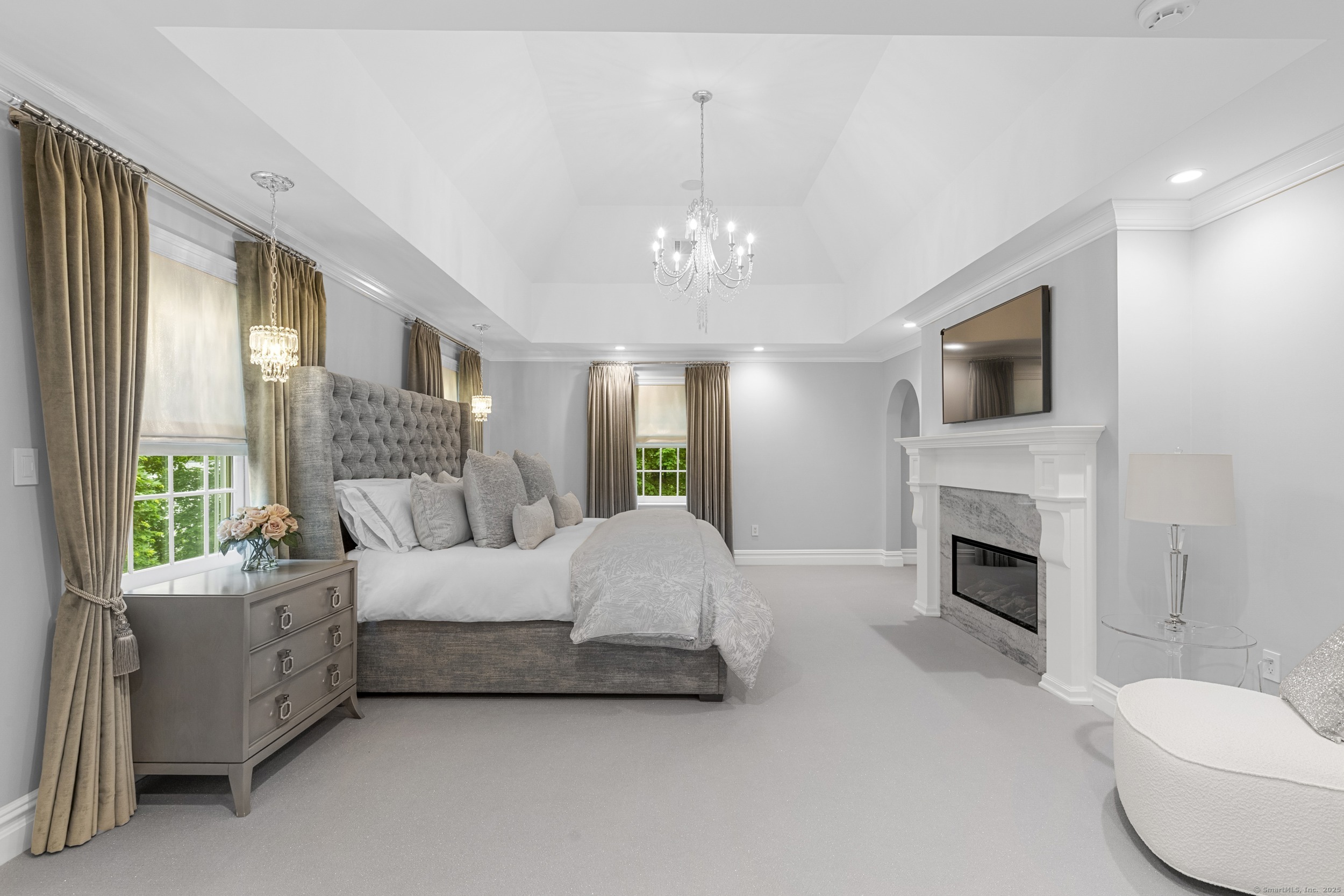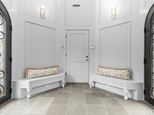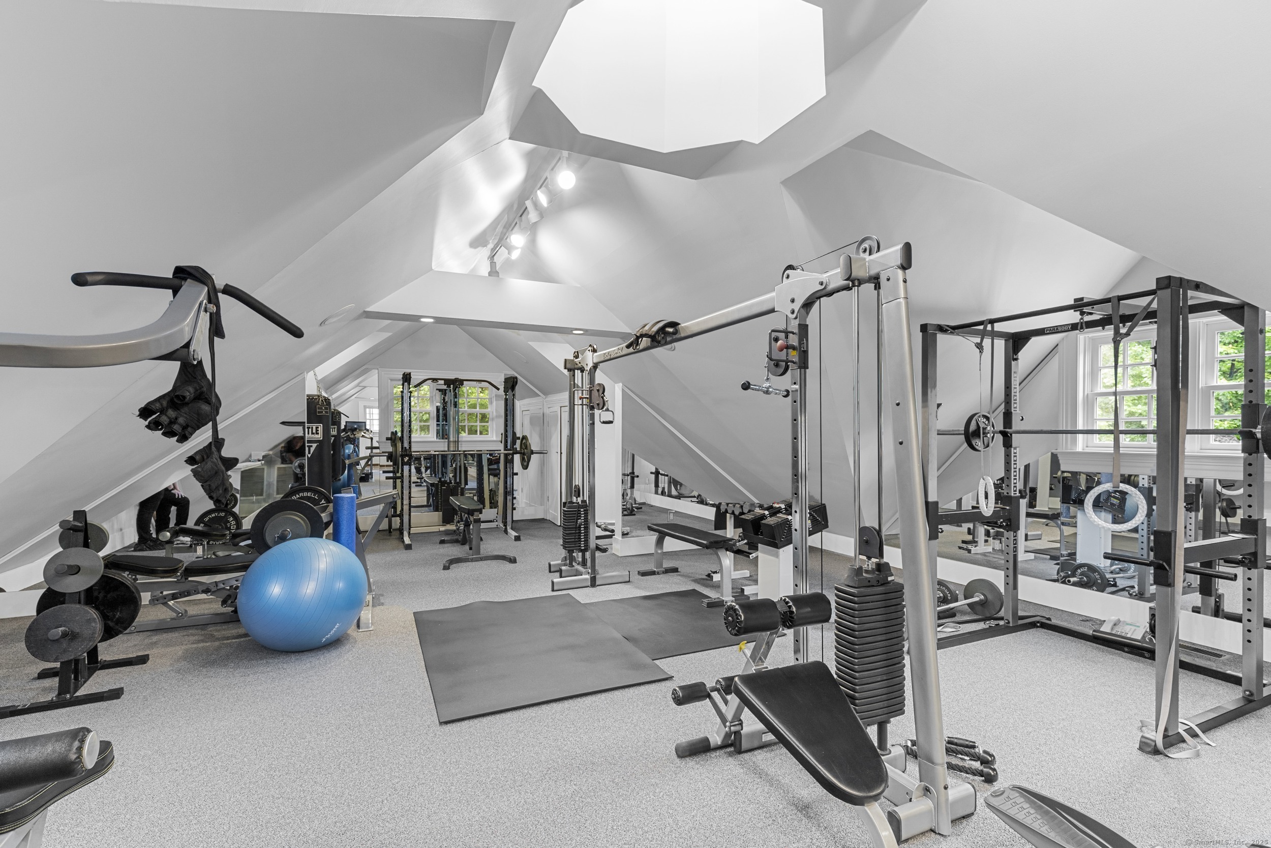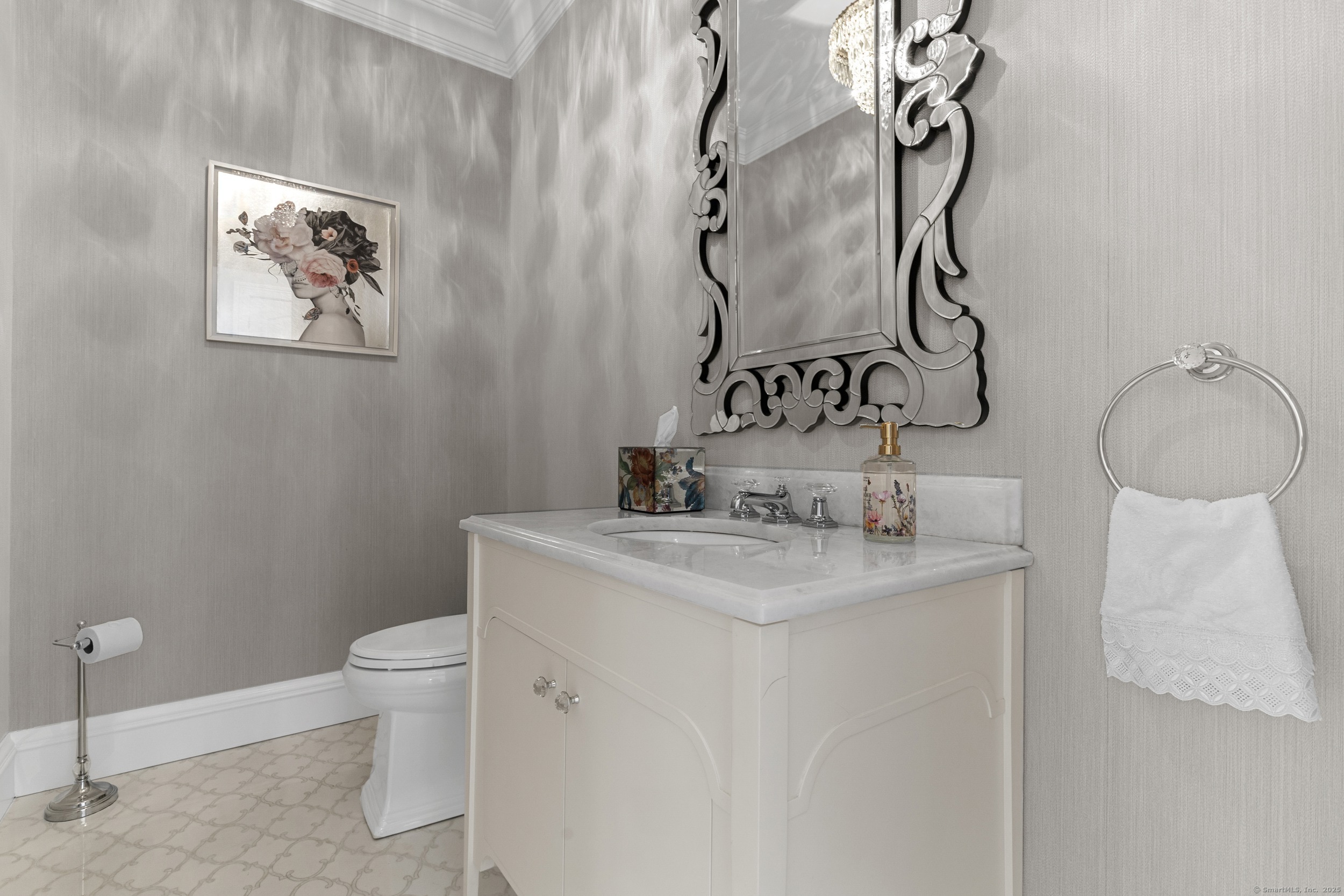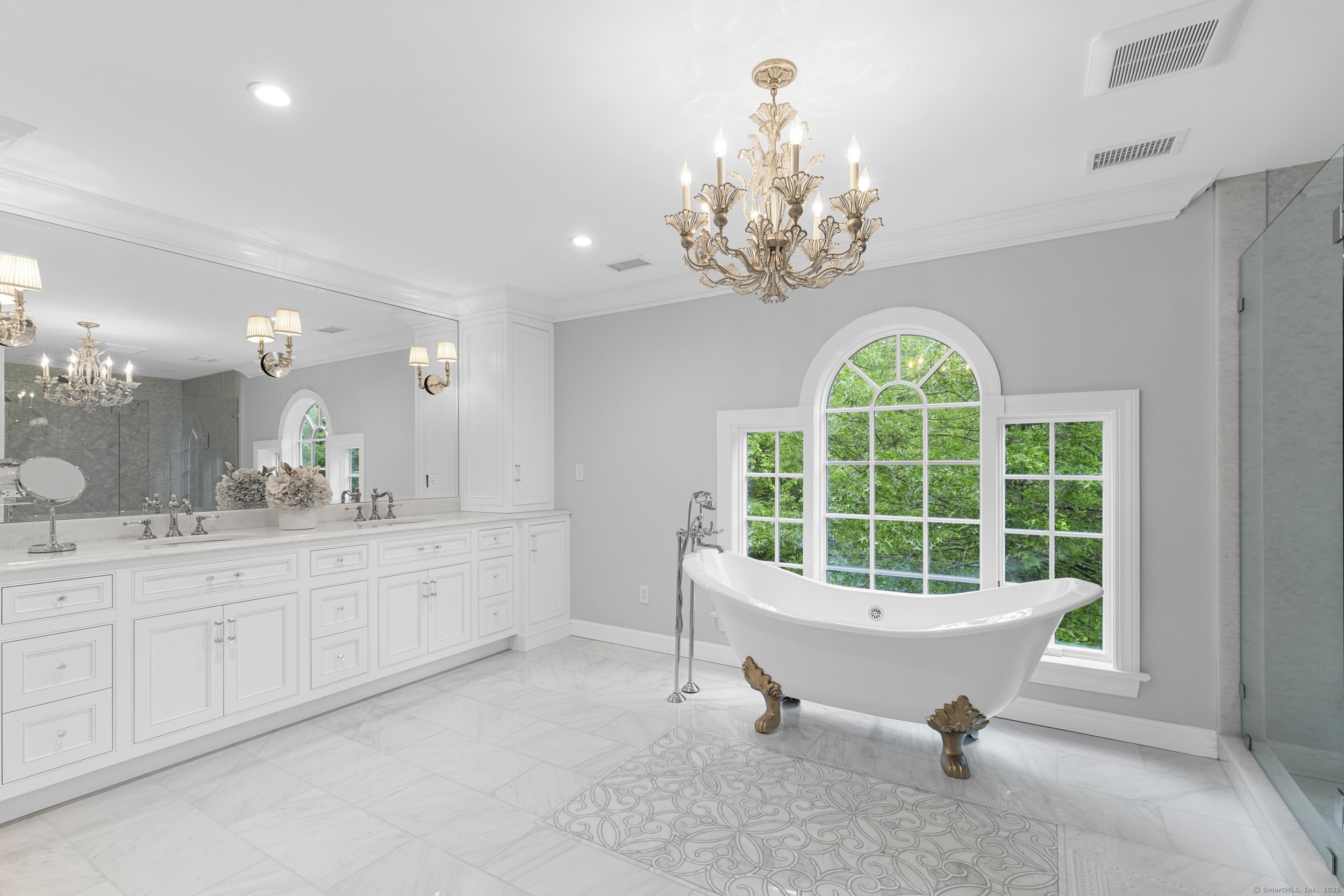 A rare offering in back-country Greenwich, this timeless estate is set on 3.58 exquisitely landscaped and gated acres, masterfully blending classic architecture with contemporary luxury. Designed for both grand-scale entertaining and intimate everyday living, the residence offers a sun-filled interior with soaring ceilings, custom millwork, and modern, bespoke finishes throughout. The grand foyer of this center hall colonial sets the tone for elegant, refined living. The gourmet marble kitchen opens to a multi-exposure family room with sweeping views of the manicured yard, pool, and fully equipped outdoor kitchen. The grounds are equally captivating, with a tranquil koi pond enhancing the natural beauty of the landscape. The luxurious primary suite with sitting area, spa-inspired bath, and three walk-in closets is among five second-level bedroom suites, each offering exceptional privacy and comfort. A versatile second-level suite with private entrance currently functions as a private gym but can effortlessly serve as an au pair suite or guest quarters. The thoughtfully executed lower level is fit with a theater, bar, wine cellar, and recreation spaces. The pool house extends the living experience with two additional bedrooms and two full baths-set amidst expansive patios and a lush, tree-lined lawn. Located just minutes from town, schools, and 45 minutes to Manhattan, this meticulously designed compound offers a rare blend of serenity, sophistication, and convenience.