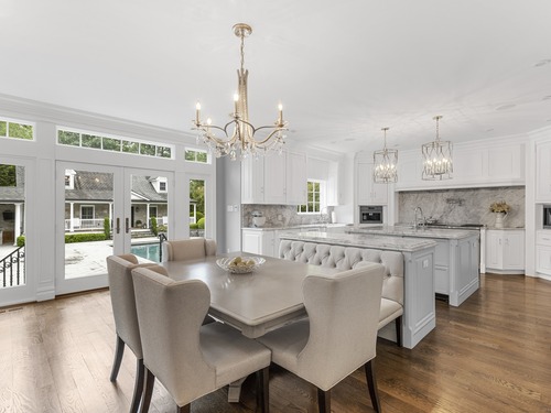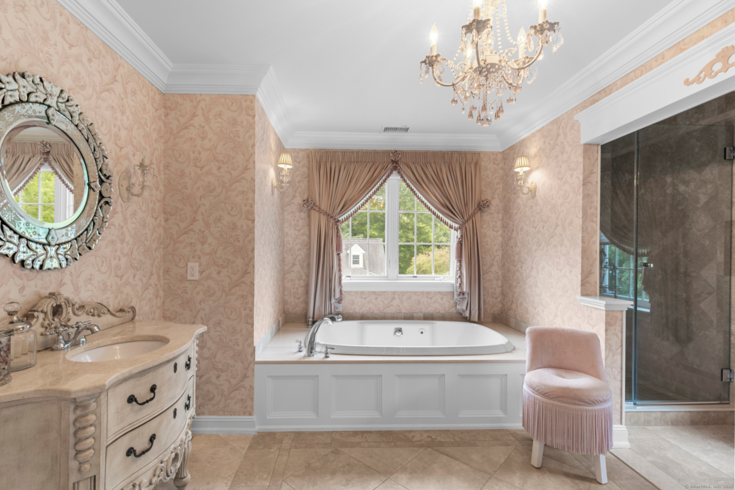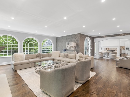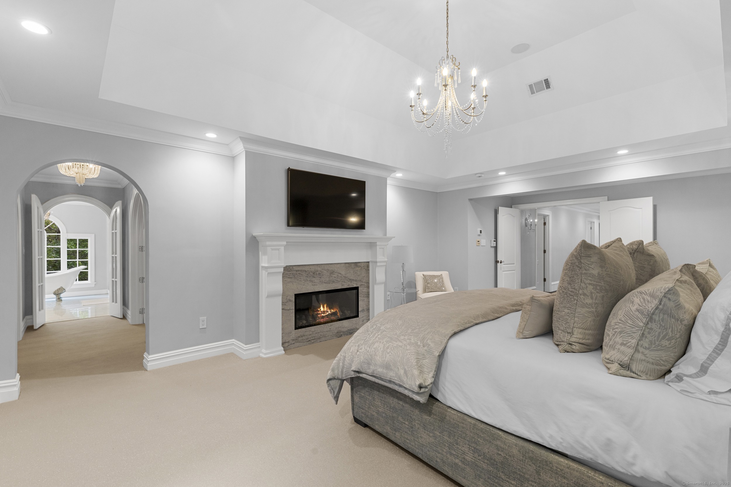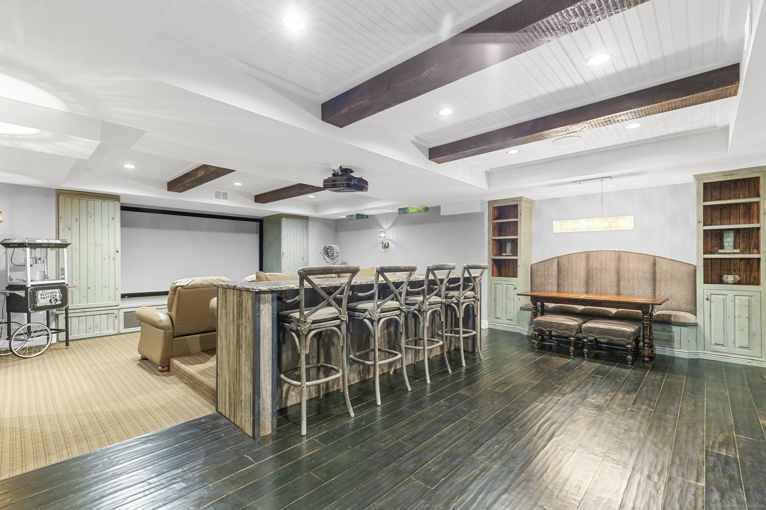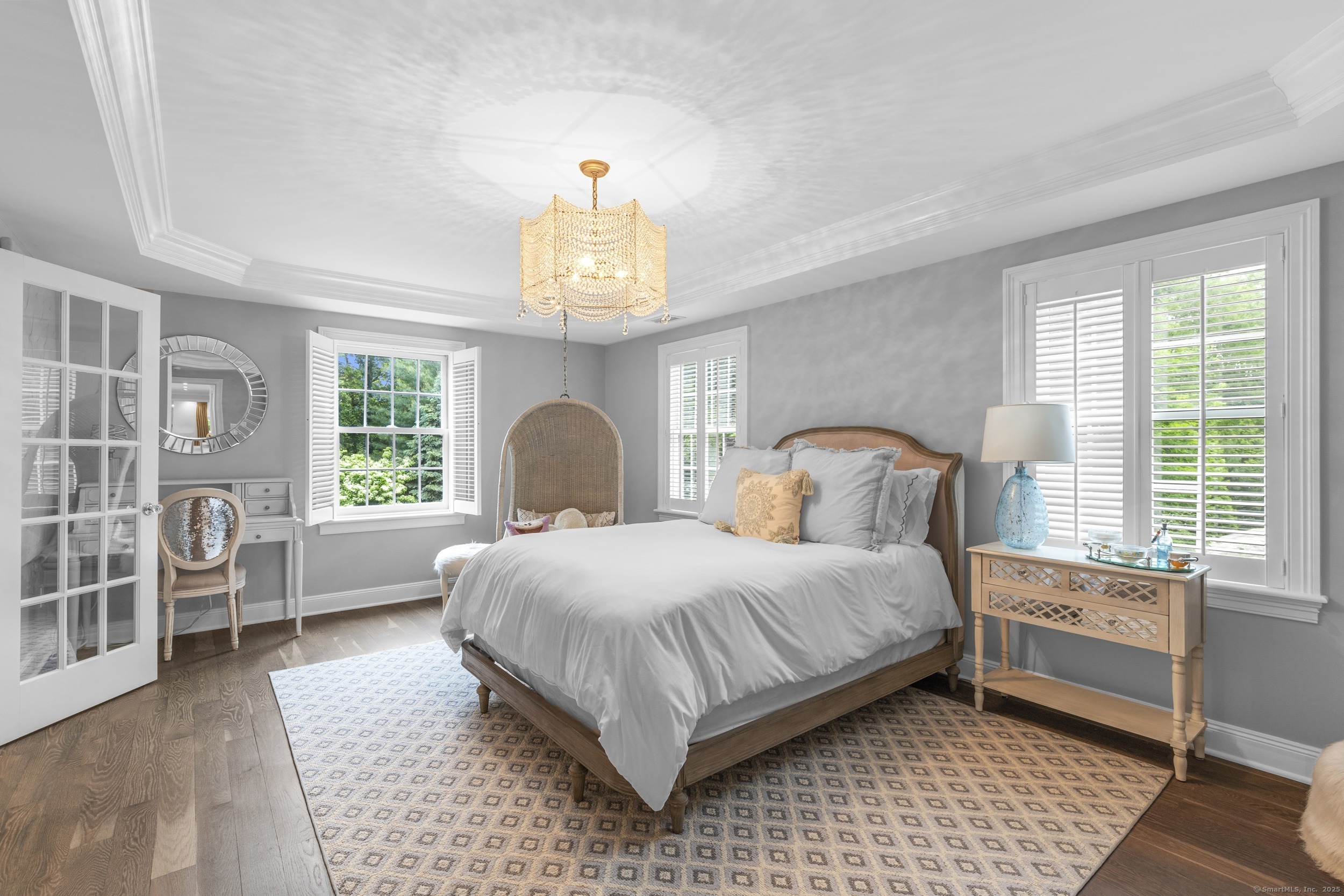A rare offering in back-country Greenwich, this timeless estate is set on 3.58 exquisitely landscaped and gated acres, masterfully blending classic architecture with contemporary luxury. Designed for both grand-scale entertaining and intimate everyday living, the residence offers a sun-filled interior with soaring ceilings, custom millwork, and modern, bespoke finishes throughout. The grand foyer of this center hall colonial sets the tone for elegant, refined living. The gourmet marble kitchen opens to a multi-exposure family room with sweeping views of the manicured yard, pool, and fully equipped outdoor kitchen. The grounds are equally captivating, with a tranquil koi pond enhancing the natural beauty of the landscape. The luxurious primary suite with sitting area, spa-inspired bath, and three walk-in closets is among five second-level bedroom suites, each offering exceptional privacy and comfort. A versatile second-level suite with private entrance currently functions as a private gym but can effortlessly serve as an au pair suite or guest quarters. The thoughtfully executed lower level is fit with a theater, bar, wine cellar, and recreation spaces. The pool house extends the living experience with two additional bedrooms and two full baths-set amidst expansive patios and a lush, tree-lined lawn. Located just minutes from town, schools, and 45 minutes to Manhattan, this meticulously designed compound offers a rare blend of serenity, sophistication, and convenience.