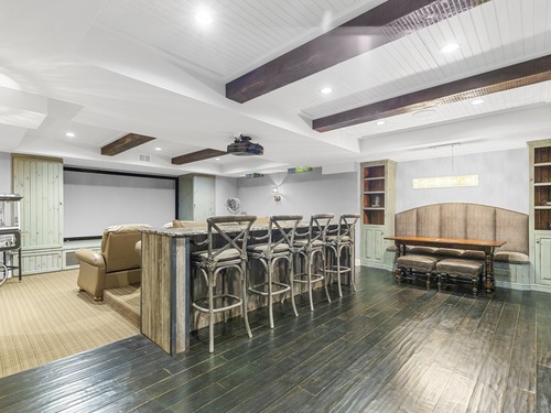 9 ft+ Ceilings, Built-Ins, Wet Bar, Fireplace, Island, Hardwood Floor