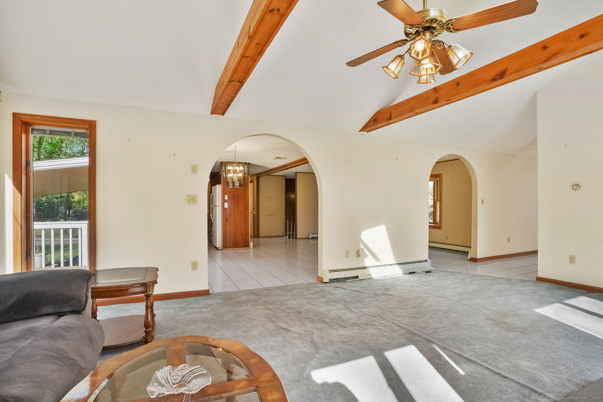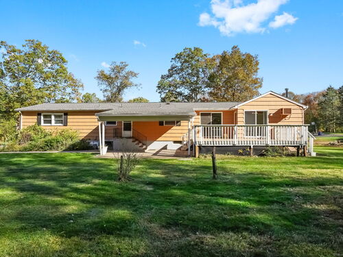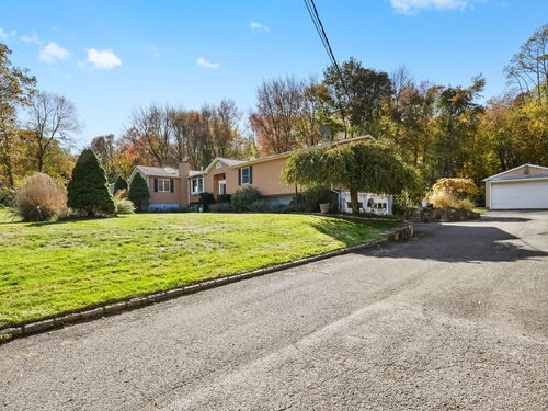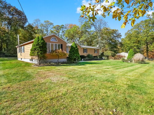 This custom-built RR, constructed by the original owners in 1971, is being offered for sale for the 1st time. Loc in one of Trumbull's most desirable neighborhoods-the Tashua section-close to schools, parks, shopping, restaurants, highways, & the Tashua Knolls Golf Course & Rec Center. The main level offers 7 rms, 3 bdrms, & 2 full baths w/ an open & flexible layout. A later addition expanded the living space to include a spacious DR & FR, both featuring cathedral ceilings, skylights, & tiled flooring. The FR also includes a SGD leading to an oversized rear deck overlooking a level, wooded, & private lot. This room features wall-to-wall carpeting & a wood-burning stove. The adjoining DR features 2 skylights filling the home w/ natural light. The formal LR at the front of the home features a large bay window & tile flooring. The galley-style kitchen connects to a larger dining area w/ sliders leading to the rear deck. All 3 bdrms on the main level are generous in size w/ good closet space, & the primary bdrm includes a full bath. The fin LL offers excellent potential & addl living space, including a kitchen area w/ oven/range & sink, a 1/2 bath, a 2nd wood-burning stove, w/w carpeting, & storage rms. Addl features include C/A, a 2-car under house gar, a det 2-car garage, & a backyard shed. The lot itself is one of the property's standout features. While the home does require updating & attn to deferred maintenance, it presents an outstanding opportunity to personalize.