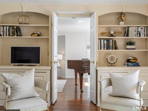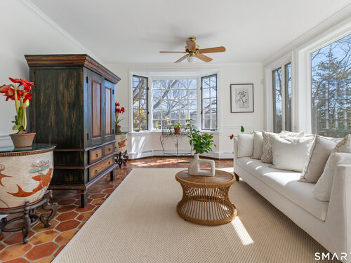 Set atop a hill on one of Nod Hill's most coveted cul-de-sacs, this home is an elegant Connecticut estate that seamlessly blends classic architecture with refined, modern living. Some say the house has a Southern charm, others see it as a quintessential New England residence, but all agree that it is a sanctuary of hospitality and grace. Features include updated kitchen and baths, a cozy office with fireplace and built-ins, large family room, screened porch, bonus/playroom off the kitchen, and a sunlit garden room adjacent to the brick patio overlooking the level property. Primary BR suite includes full bath, walk-in closet, sitting room and deck. Additional three BR's on 2nd floor (one with brand new deck) and two additional updated baths. Walk your dog with the neighbors, visit nearby Weir Farm for a hike or art-inspiration, enjoy the legendary (and exclusive!) Nod Hill 4th of July Parade. Just 8 minutes from town and Wilton's award winning schools,18 minutes to SoNo train, 13 minutes to Ridgefield and 4 min to the Wilton Riding Club. Majestic and unique, this is one home you don't want to miss.
