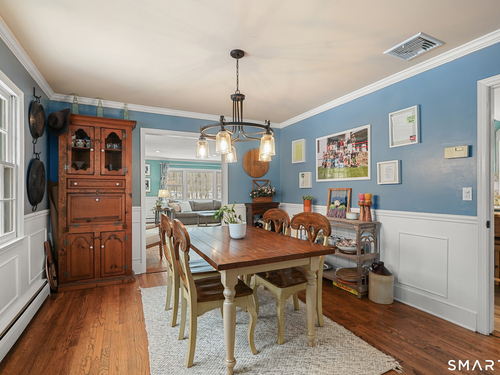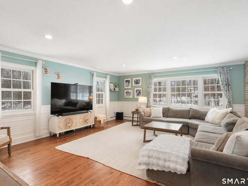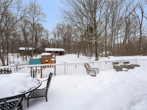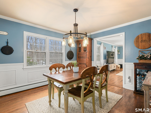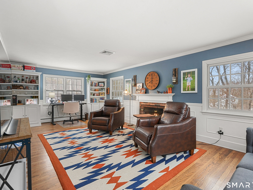 Welcome to 349 Mountain Road, a charming Wilton Colonial set on a private cul-de-sac and over 2 acres of serene grounds. A light-filled floor plan features a butcher block kitchen that flows into a spacious family room with a wood-burning stove. The home offers a formal living room with a wood-burning fireplace, formal dining room, a primary suite with refreshed Carrara marble bath, and three additional bedrooms. A finished lower level adds flexible living space, while outdoor highlights include a vegetable garden and three-stall barn and a newly added patio with firepit and swing. Enjoy easy access to Ridgefield, Georgetown, and Westport-plus Wilton's beloved local coffee shops, dining, and amenities-all within Wilton's top-rated school district.
