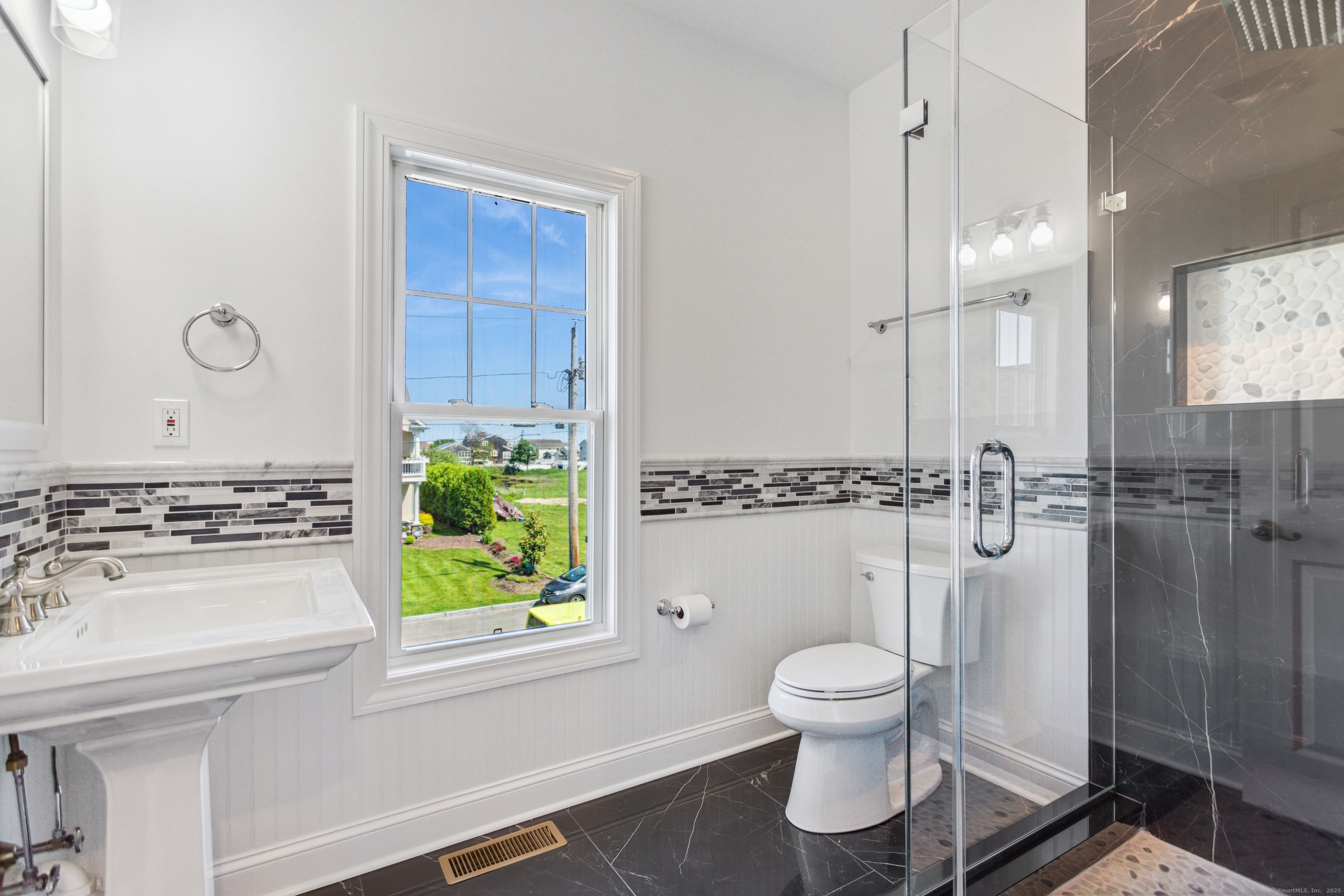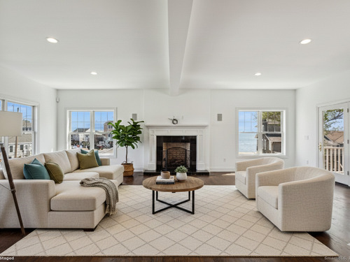 Welcome to Lordship -- a coveted beach community in Stratford. With only steps to the beach and beautiful water views, this home makes for a wonderful lifestyle for its next owner. Completely rebuilt in 2009 and with more recent upgrades and enhancements, this home feels like BRAND NEW, with high-end finishes and quality craftsmanship throughout the home. Airy and spacious with high ceilings and large windows allows for the natural and bright sunlight to pour in. Offering almost 4000 square feet, this home features 4/5 Bedrooms, 4/1 Bathrooms (all renovated), walk-out Lower Level and open and spacious floor plan on main level. The three levels of living feature hardwood flooring throughout, new HVAC (furnace and hot water heater), central air, new roof, new siding and more......! The walk-out finished Lower Level offers a Full Bath, Laundry area and ample storage/closet space. Possible 5th Bedroom opportunity? The Main Level features an open floor plan, blending the Living Room and Kitchen area. Adjacent to the Kitchen is a dedicated Dining Room and Office/Possible Bedroom/Den. The upper level offers a large Primary Bedroom Suite, including TWO Walk-In-Closets, Large Primary Bath and private access to your own balcony/deck. Two additional bedrooms on the upper level, each with a dedicated walk-in closet and full bathroom. Like new, this Beach area home has it all AND it is only steps to the sand beach! Flood insurance required. Elevation certificate available.