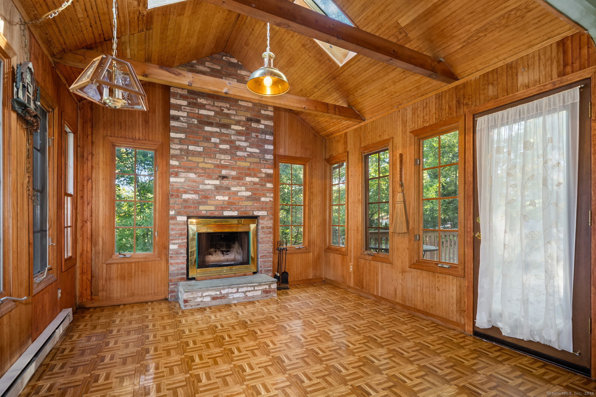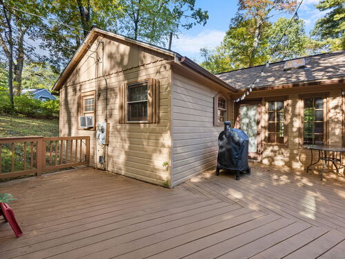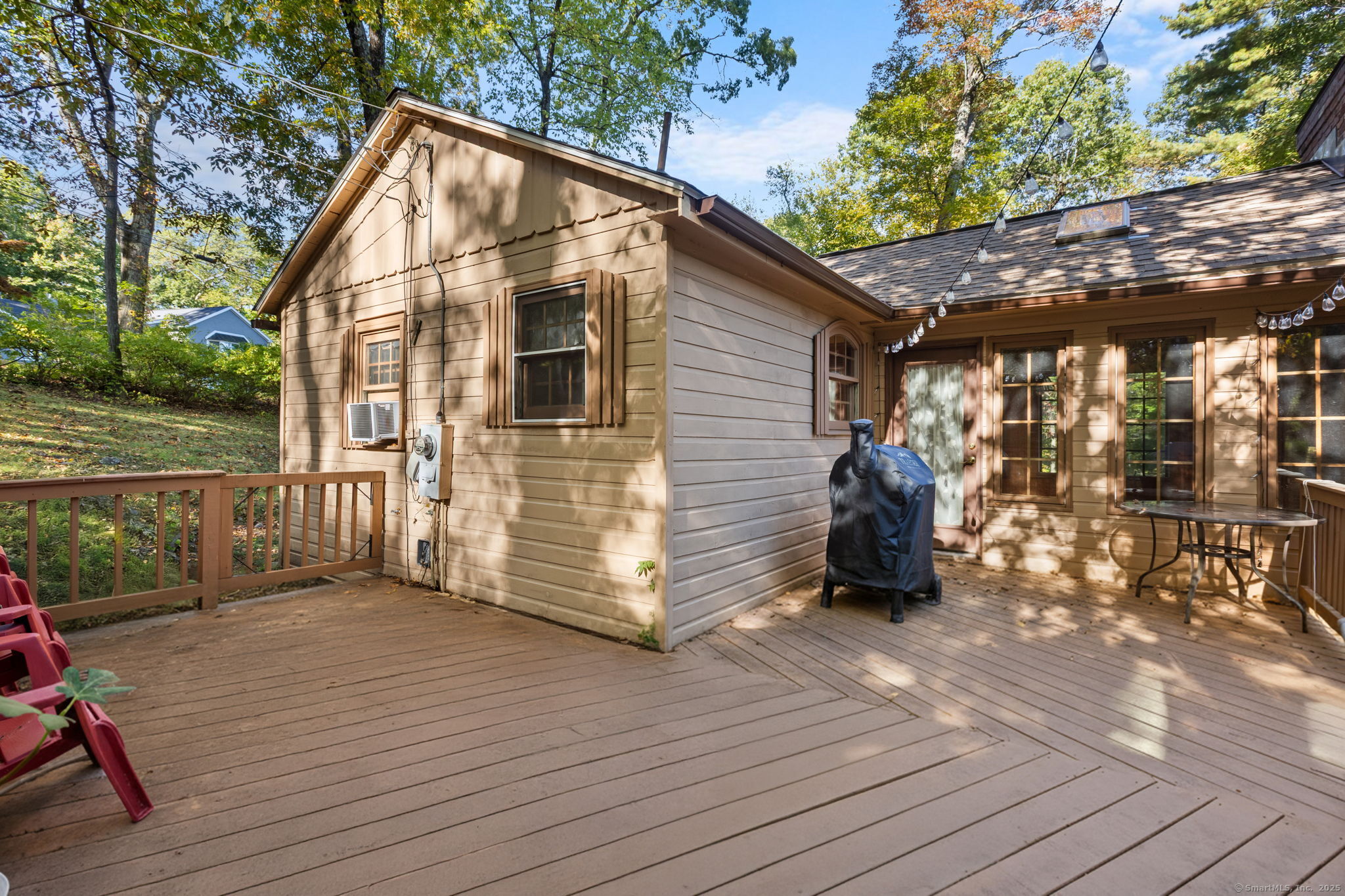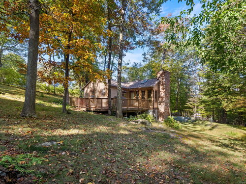 Nestled in the heart of the highly sought-after Candlewood Hill community, this enchanting 1-bedroom, 1-bath cottage offers the perfect combination of rustic charm and peaceful seclusion. Whether you're seeking a quiet weekend escape or a cozy full-time residence, this home provides immediate comfort with the added bonus of expansion potential. Set on a generous, private lot, the home welcomes you into a warm and inviting Great Room, the true centerpiece of the home. A classic wood-burning fireplace creates a cozy focal point, while surrounding windows flood the space with natural light and views of the surrounding landscape. Cathedral ceilings with exposed rustic beams add height and character, while hardwood flooring runs throughout the main living areas, enhancing the home's timeless appeal. Step out from the Great Room onto a spacious deck a perfect retreat for morning coffee, afternoon reading, or hosting friends under the canopy of trees. The expansive yard offers plenty of space for future additions, whether it's a garden, fire pit, or potential home expansion. Located within the Candlewood Hill special tax district, residents benefit from well-maintained roads and community areas, contributing to a beautifully kept and welcoming neighborhood atmosphere. Outdoor enthusiasts will love the close proximity to Squantz Pond, Pootatuck State Park, and Candlewood Lake's town park and public boat launch, all just minutes away. Property being sold As-Is.