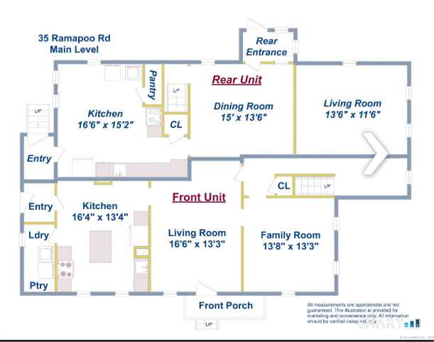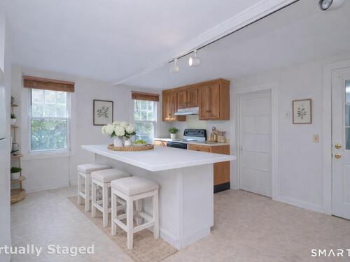 Flexible home in the heart of Ridgefield featuring a separate living space for an in-law unit or potential extra income. Just steps from downtown Ridgefield amenities and schools, this well-maintained home offers a front unit and rear unit with separate entrance, full kitchens, baths, and laundry. The rooms are large, easily updated and great for family gatherings. Front unit includes: 3BRs upstairs, 1 oversized bath connected to primary BR (potential to split into 2 baths) and main level laundry room that can be converted to a 1/2 bath. Rear unit includes: 4BR upstairs (one could be a great home office), 1 full bath that can easily be enlarged, eat-in kitchen that has space for a 1/2 bath and newly refinished hardwood floors. The house sits proudly on a corner lot that is flooded with light from the multiple (new) windows on all sides. The basement and attic are full height/walk-out and span the full size of the house. The electric service is separately metered, there are two oil tanks and the home is connected to town water and sewer. Very versatile property with many possibilities, or convert it into a spectacular, in-town dream home. Don't miss out!