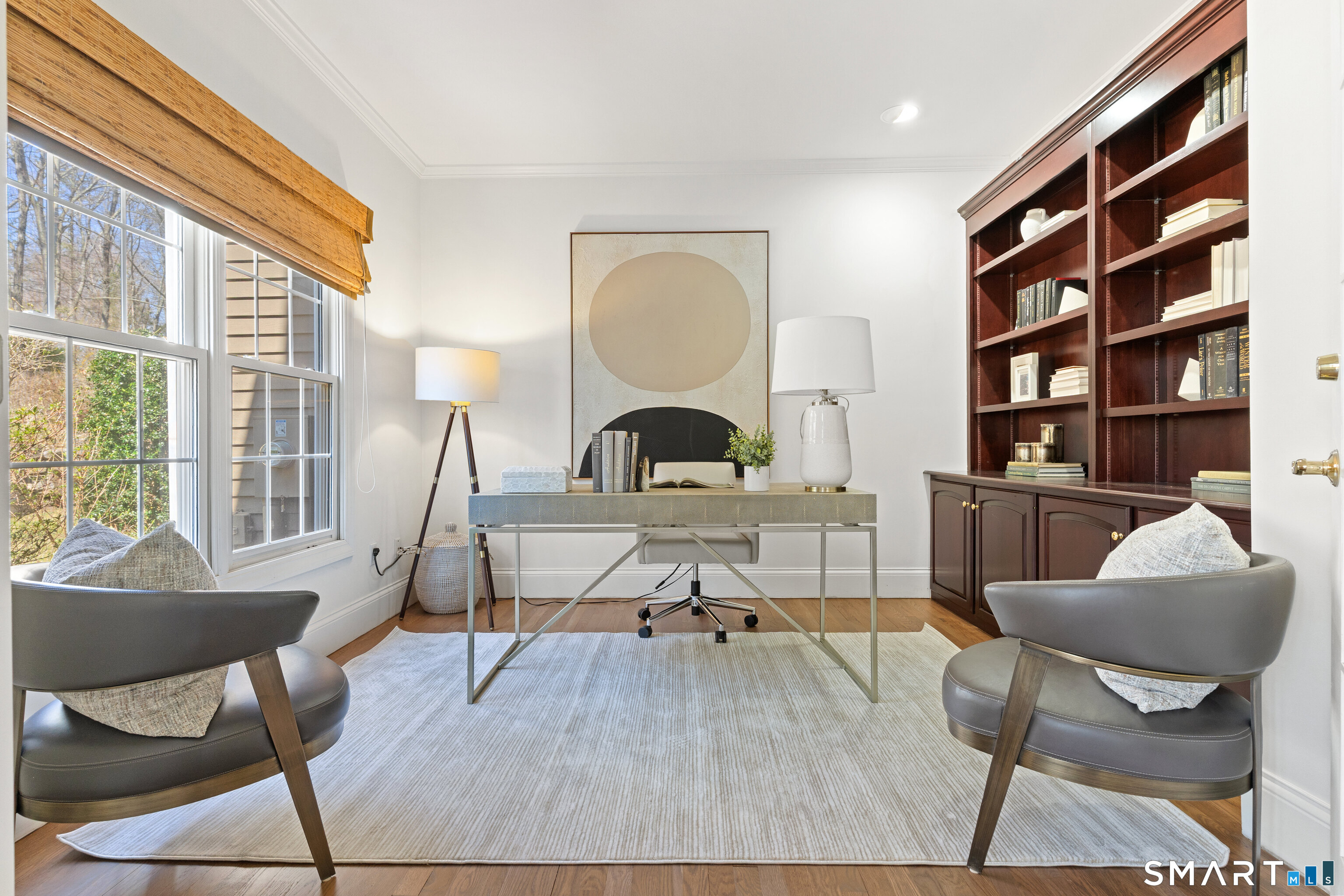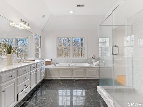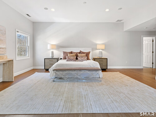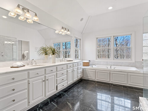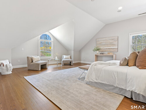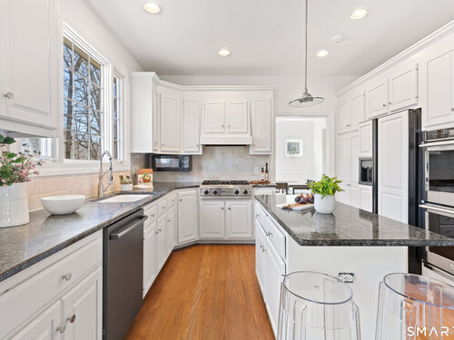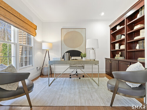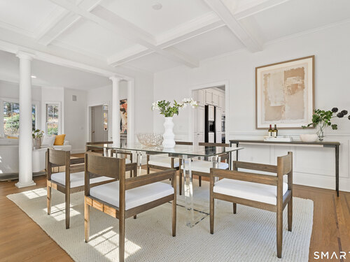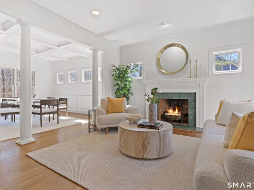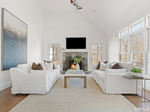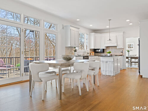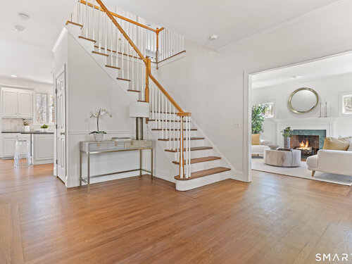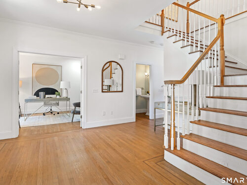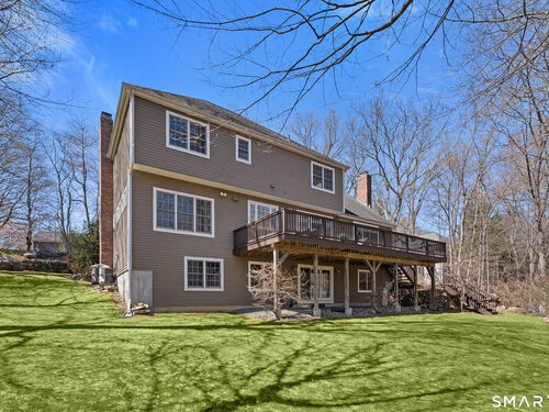 This luxurious 5BR colonial in the desirable Cranbury section, is right on the Wilton border and only 10 minutes to Westport center. A two-story foyer filled with light provides a dramatic entry, and the handsome office makes working from home a pleasure. Architectural details elevate this home with coffered and cathedral ceilings, bay window, and newly refinished hardwood floors. Living room and Family Rooms include wood-burning fireplaces and lots of light, The kitchen includes a walk-in pantry. Upstairs, there is a grand Primary BR suite with separate room for a 2nd office or your dream walk-in closet, a large full bath and walk-in closet/laundry. 3 additional bedrooms and 2 additional full baths upstairs. But there is more--the lower level is a delightful surprise and vast enough for a rec room, exercise room, 2nd family room/kid hangout or playroom and is light and bright thanks to ample windows and sliders. A 5th bedroom and full bath in the lower level offer private guest quarters. But one of the most endearing things about this house is the privacy and sounds of nature when enjoying your time on the deck. This is a home to enjoy and share in so many ways!